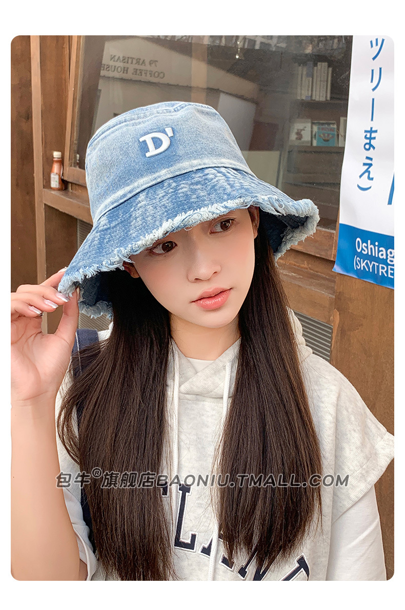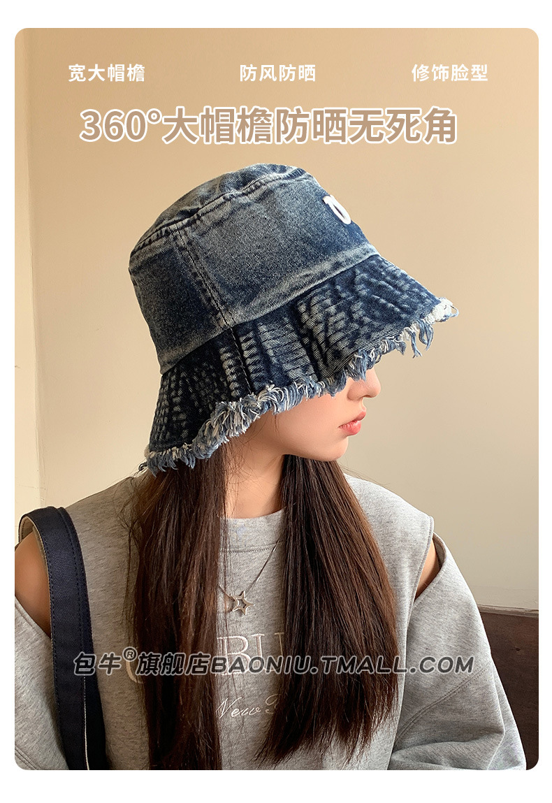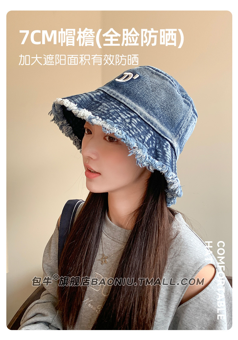 여성 닳은 어부 모자 봄과 여름 모든 어울리는 데님 등산 모자 얼굴 모양의 작은 자외선 보호 2024 새로운 태양 보호 모자스토어 가기