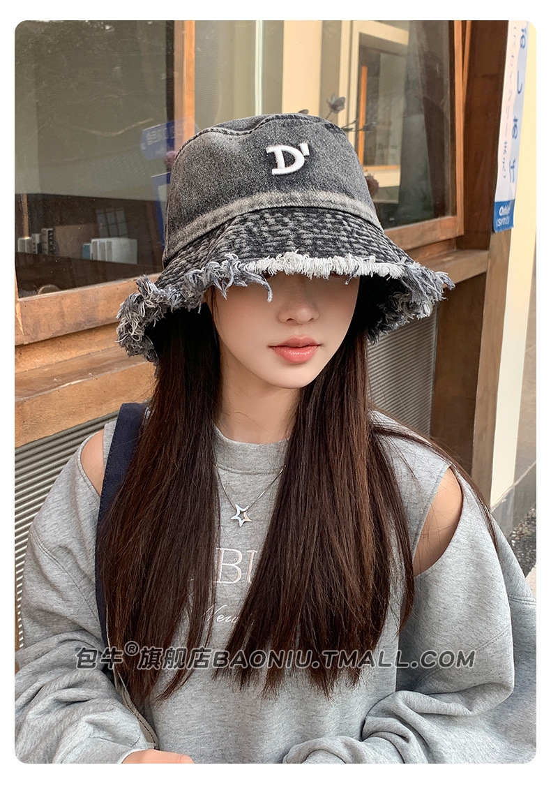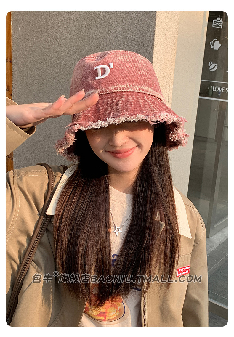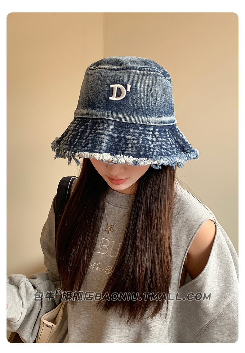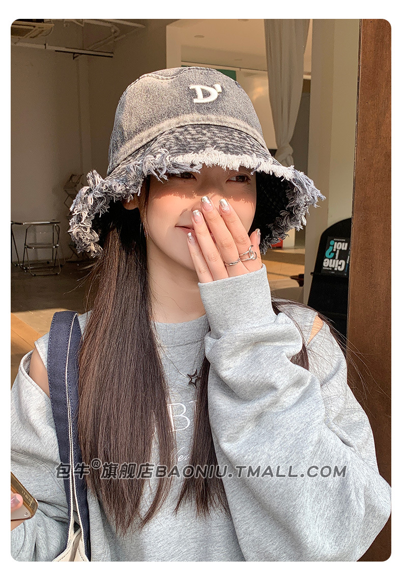 여성 닳은 어부 모자 봄과 여름 모든 어울리는 데님 등산 모자 얼굴 모양의 작은 자외선 보호 2024 새로운 태양 보호 모자스토어 가기