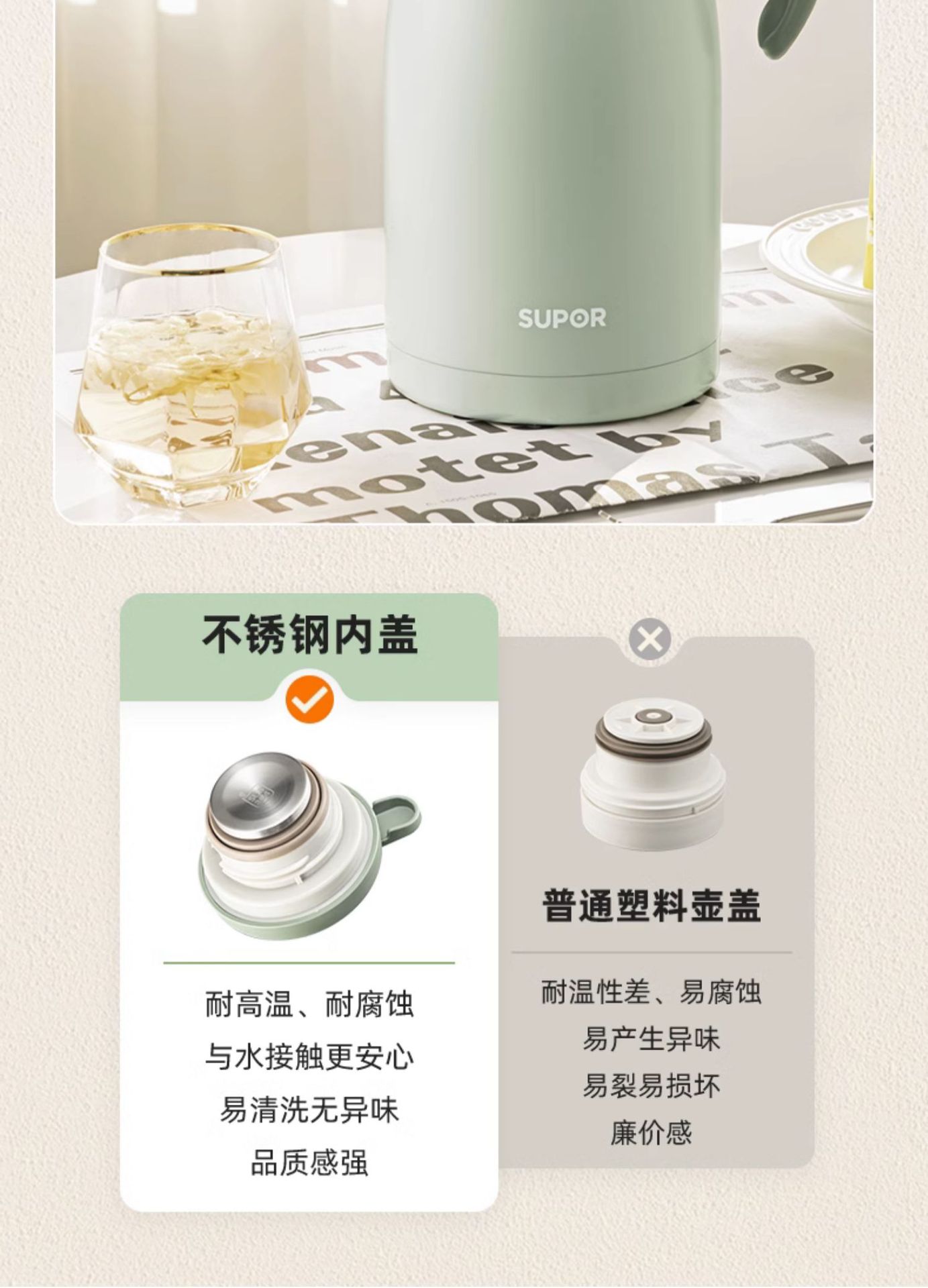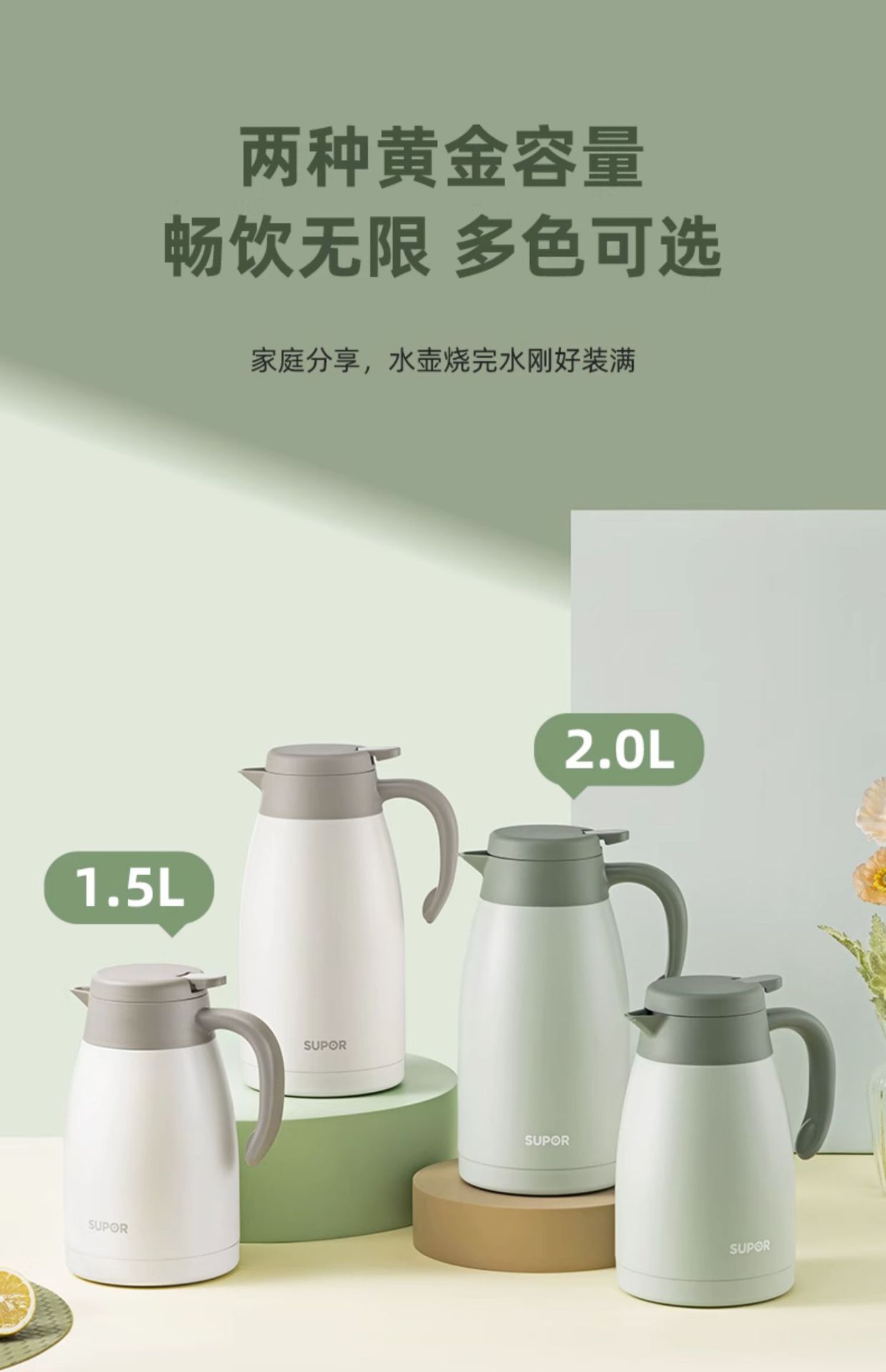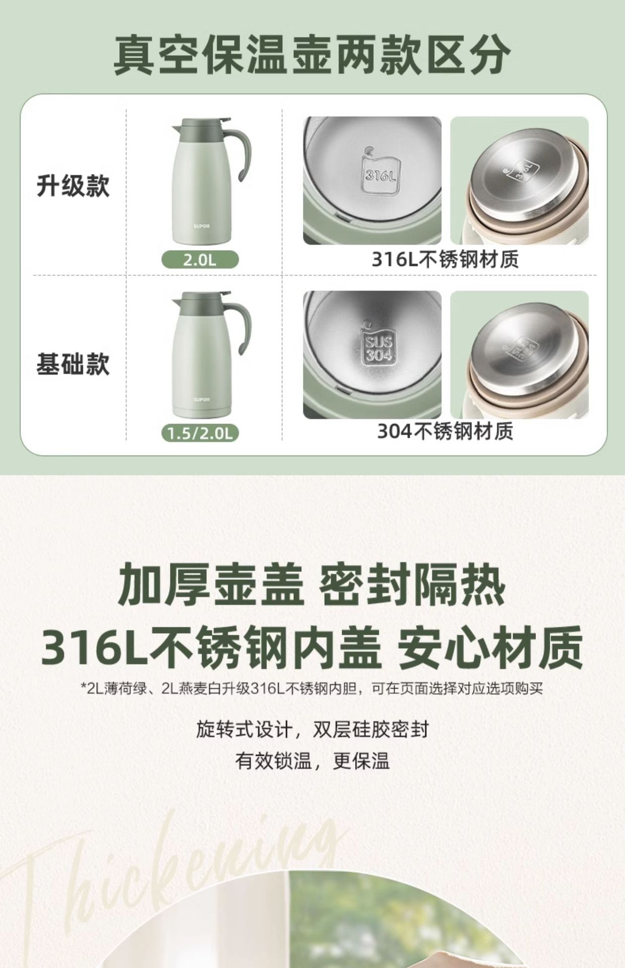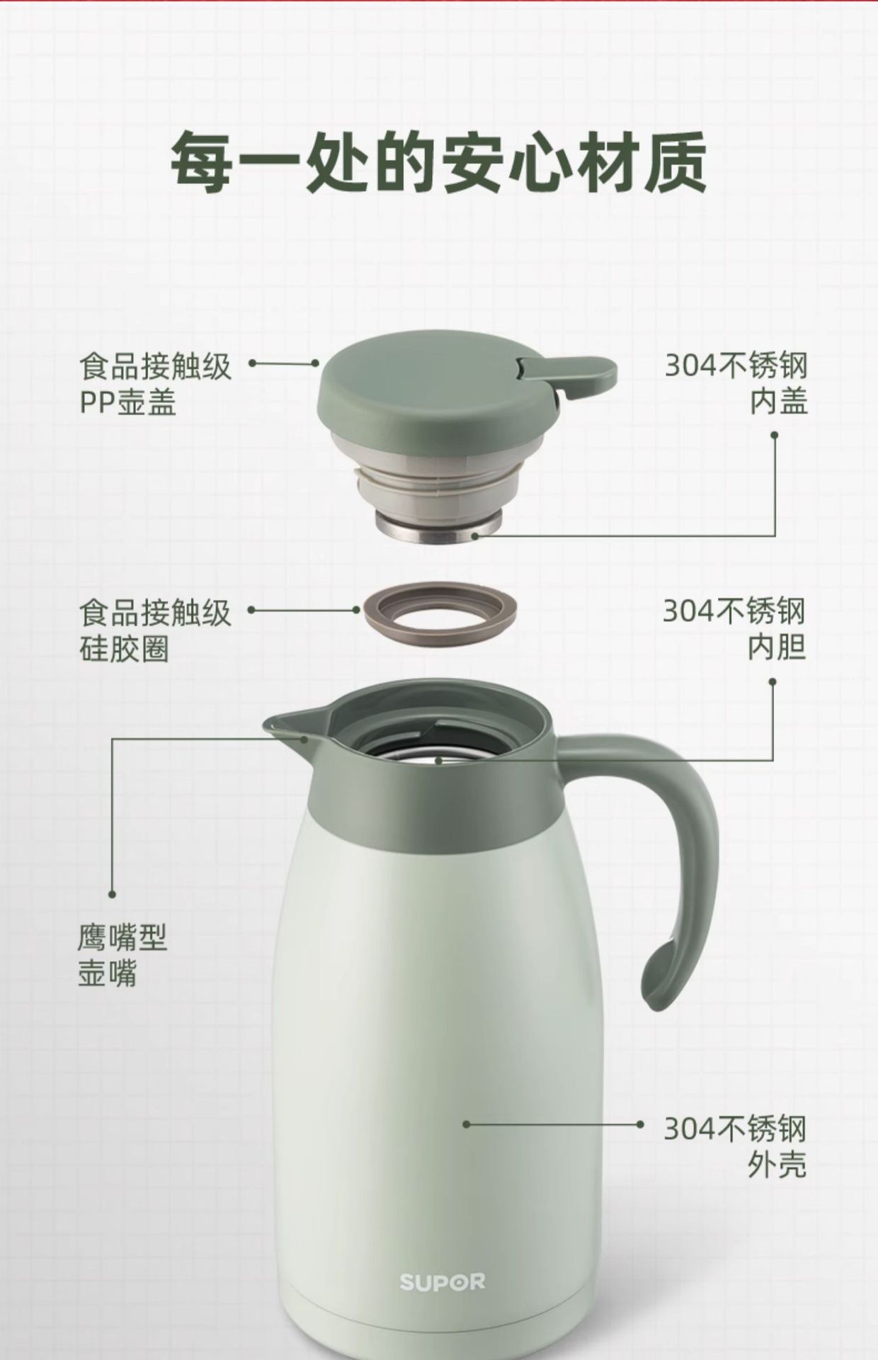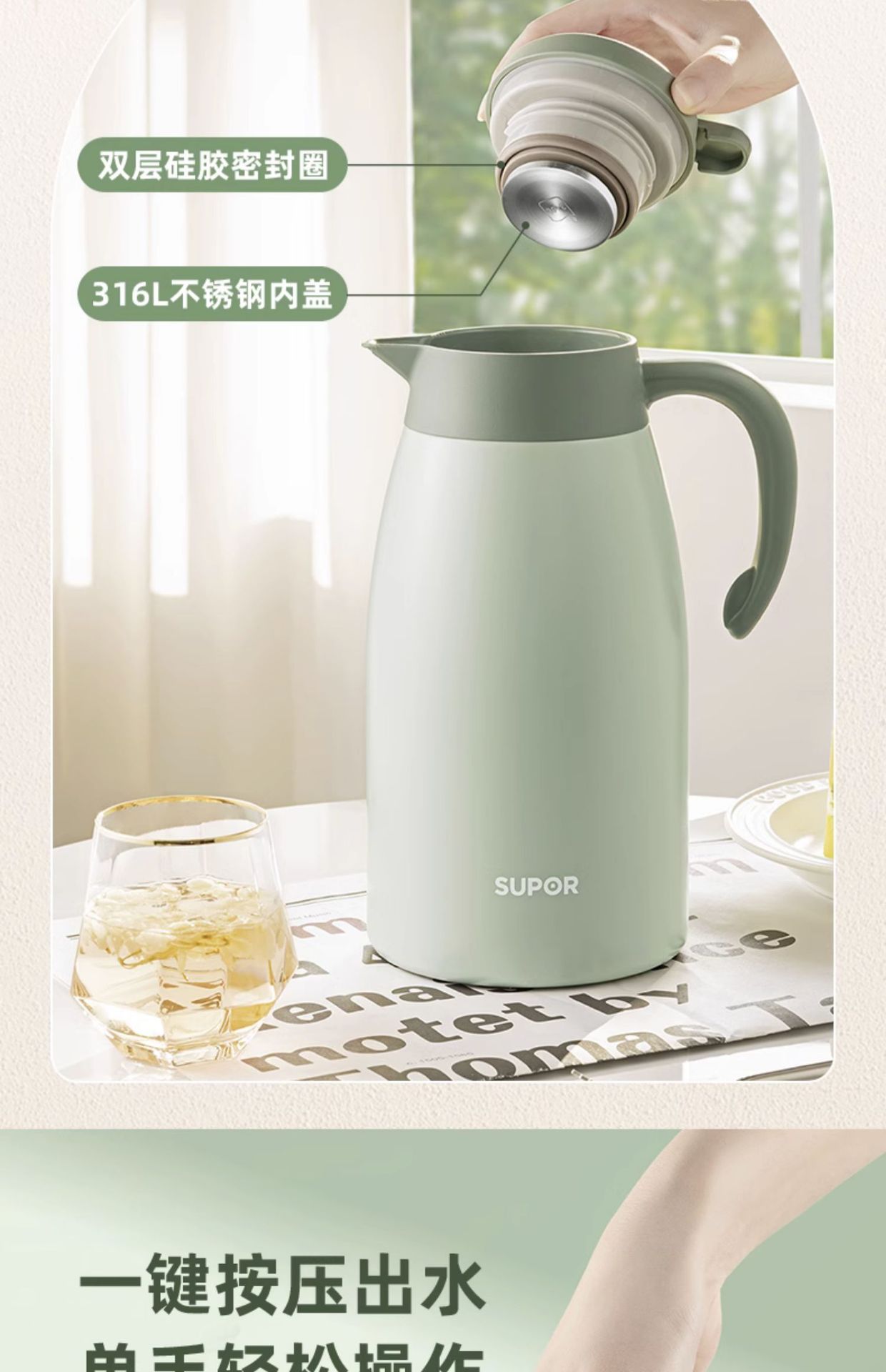 Suppor 가정용 절연 주전자 304/316L 스테인레스 스틸 진공 주전자 보온병 KC20KH50 2L스토어 가기