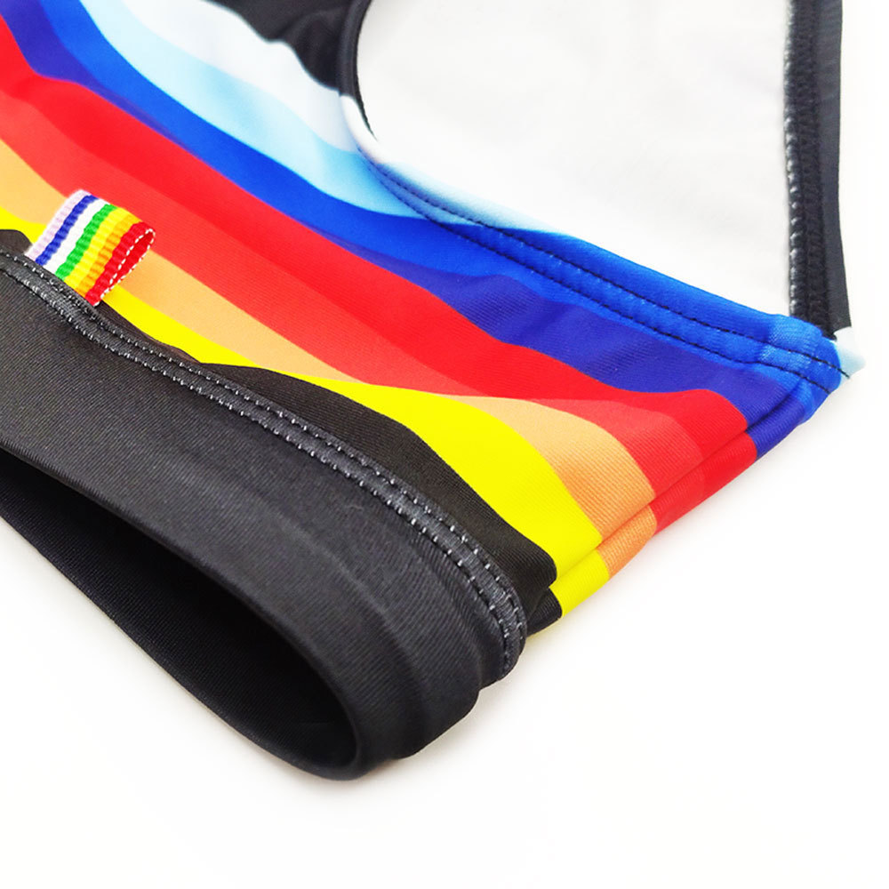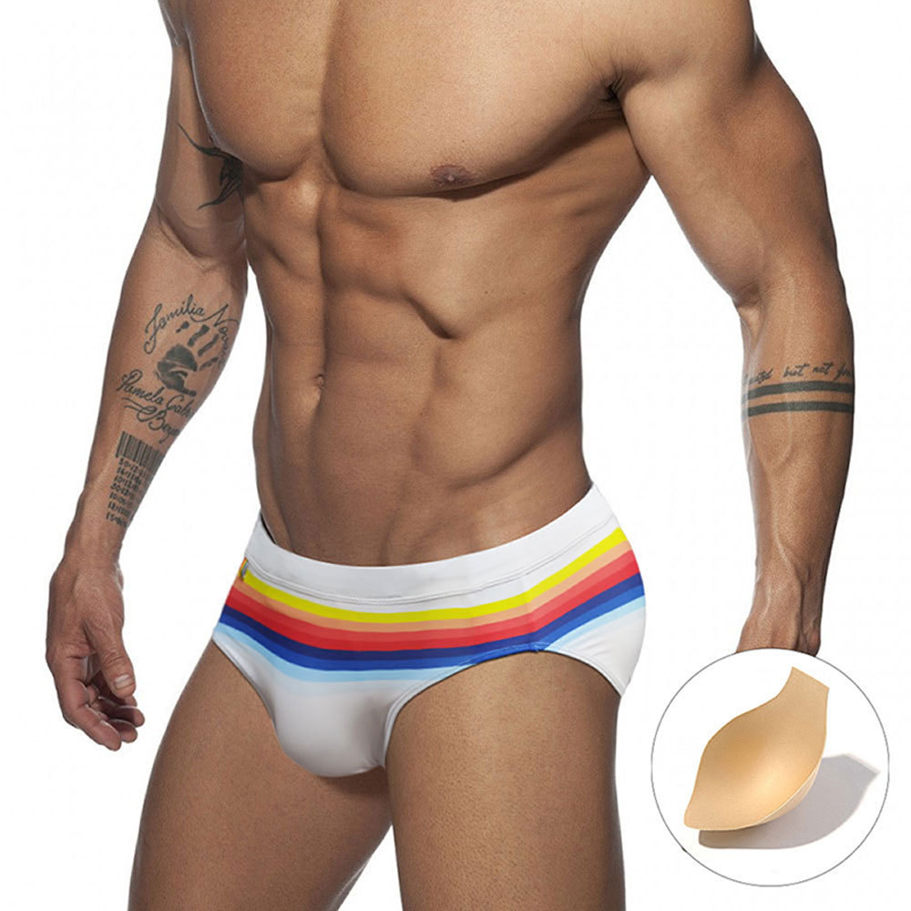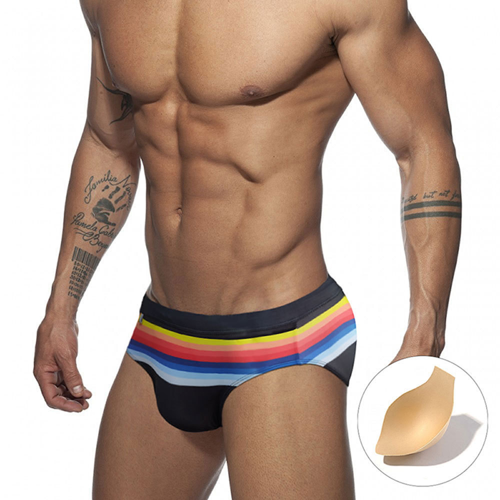 UXH 유럽과 미국의 새로운 패션 남자 섹시한 삼각형 수영 트렁크 컬러 스트라이프 인쇄 컵 입체 수영 트렁크 남성스토어 가기