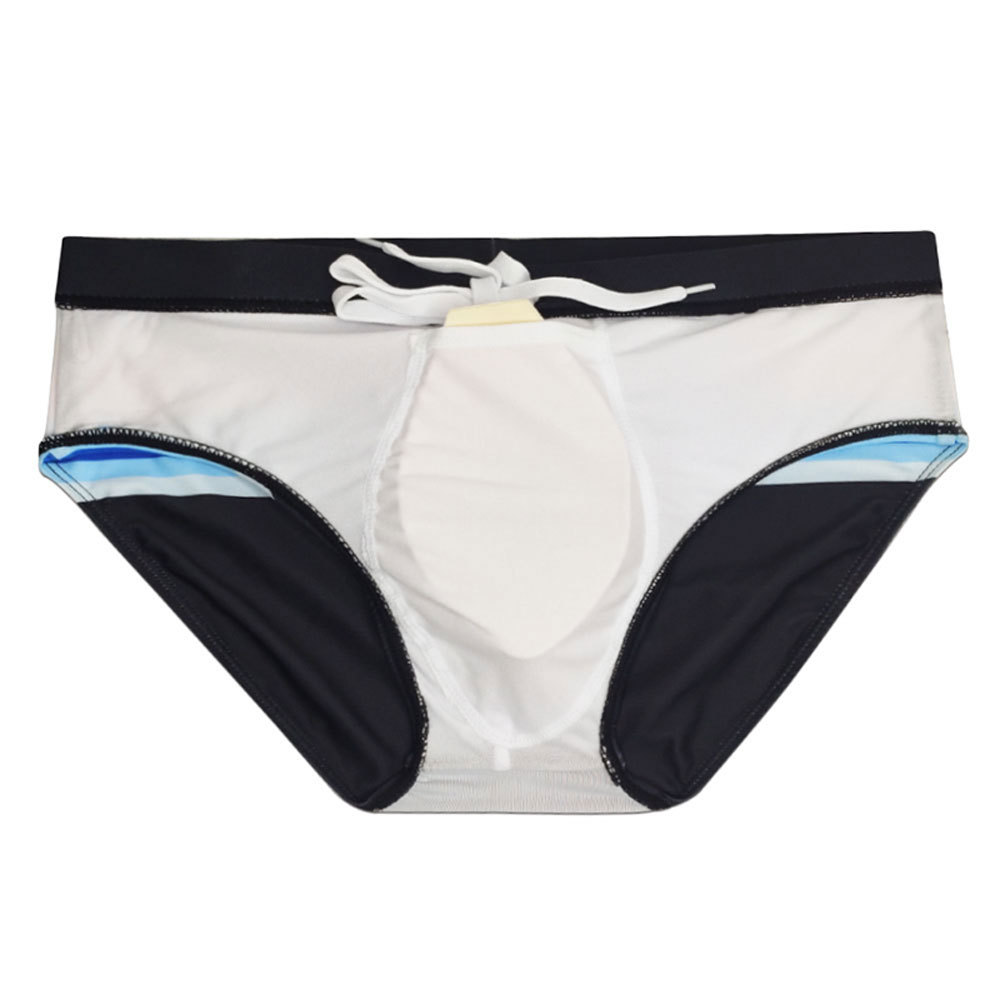 UXH 유럽과 미국의 새로운 패션 남자 섹시한 삼각형 수영 트렁크 컬러 스트라이프 인쇄 컵 입체 수영 트렁크 남성