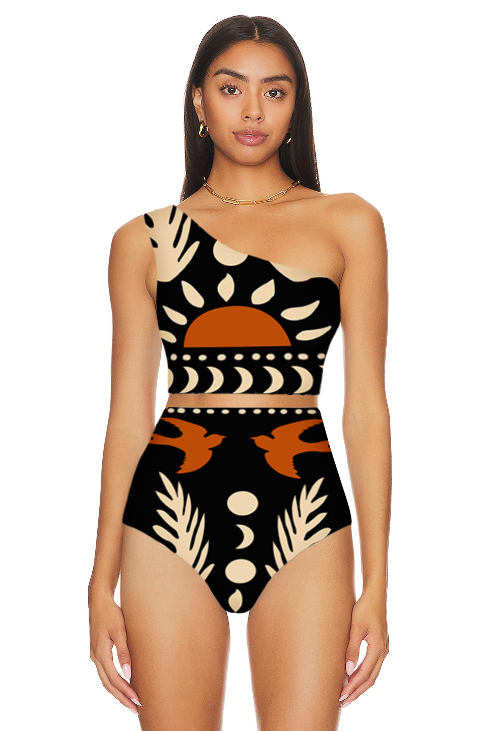 2024 유럽과 미국의 Amazon AliExpress 인기있는 V-넥 민족 스타일 인쇄 속이 빈 원피스 수영복 여성 세트 국경