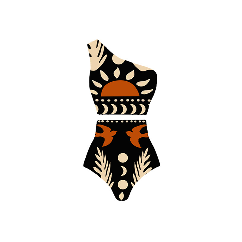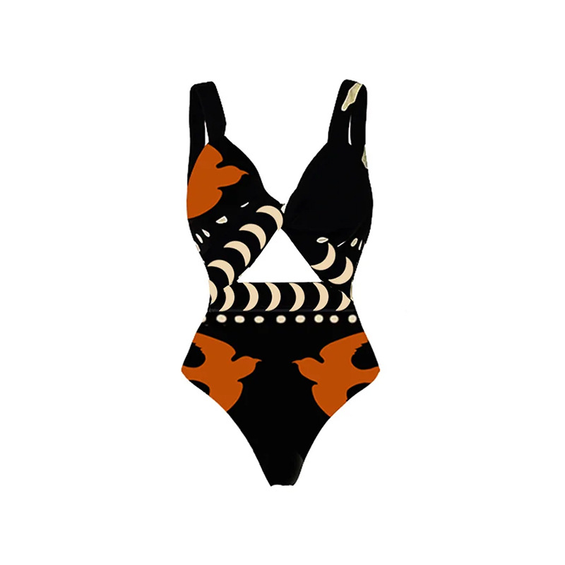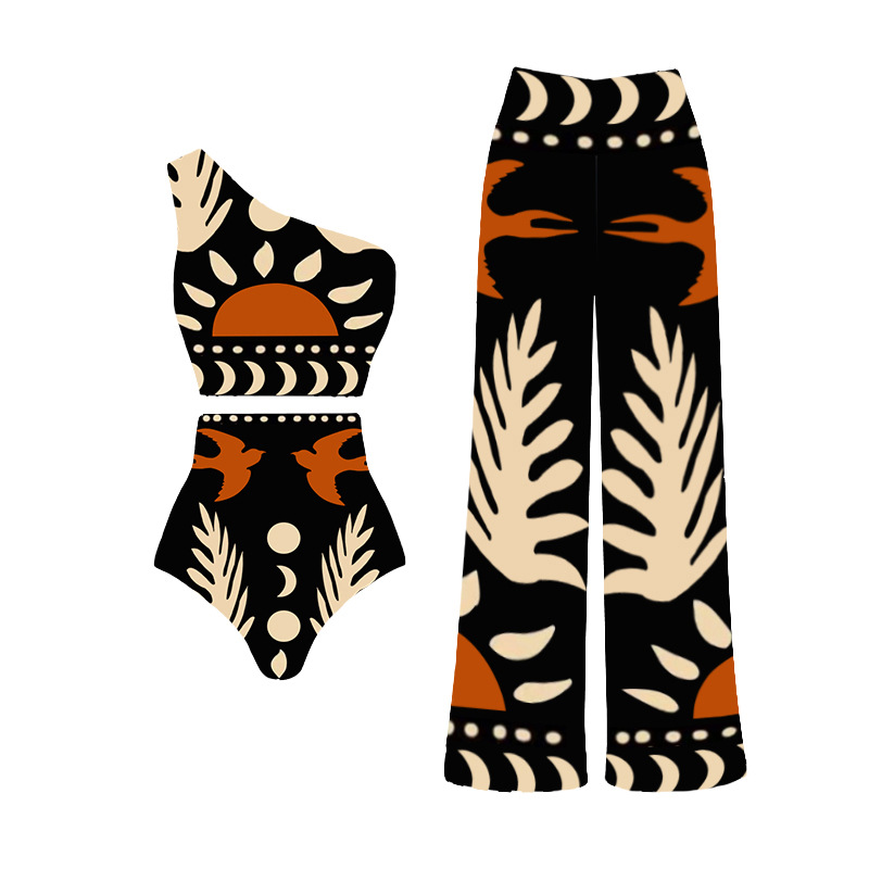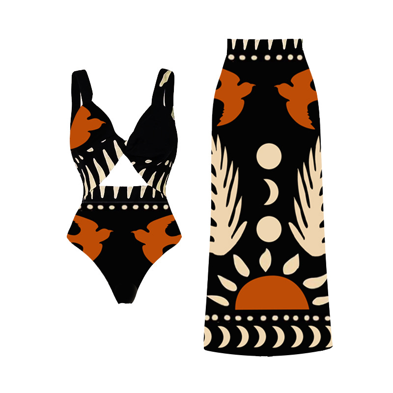2024 유럽과 미국의 Amazon AliExpress 인기있는 V-넥 민족 스타일 인쇄 속이 빈 원피스 수영복 여성 세트 국경스토어 가기