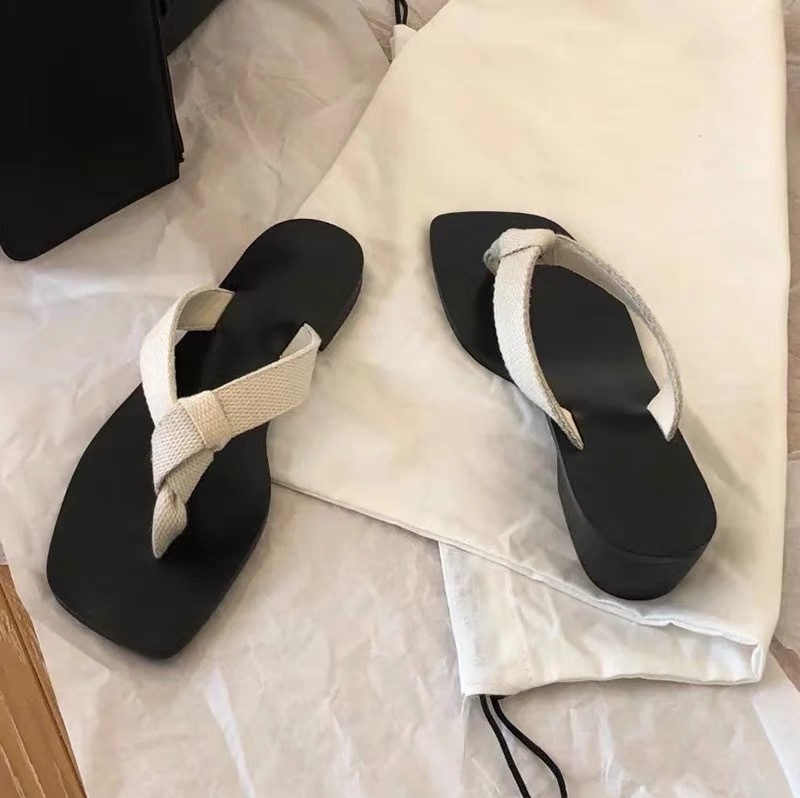 Cowhide Edition ~ 새로운 디자인 센스 대마 로프 플랫 슈즈 플립 플롭 플립 플롭 여성 아우터 홀리데이 비치 슈즈