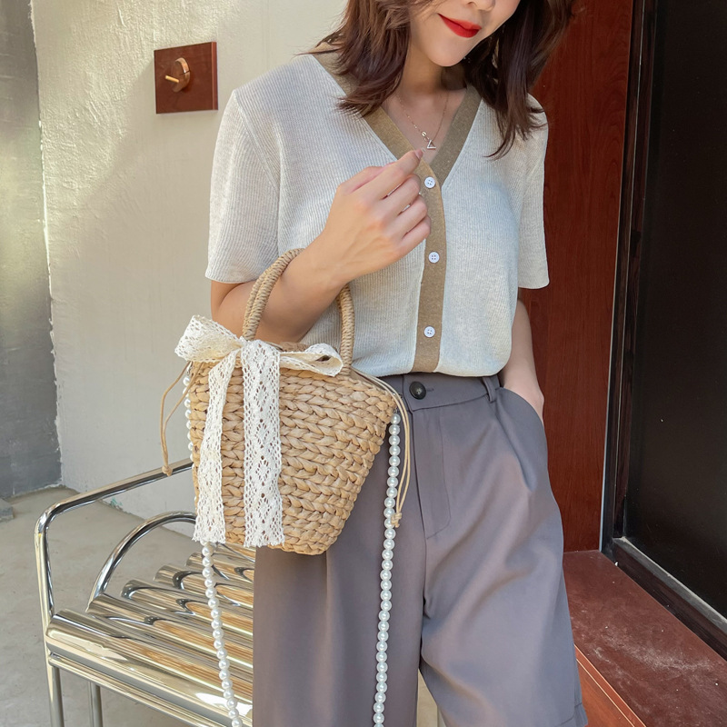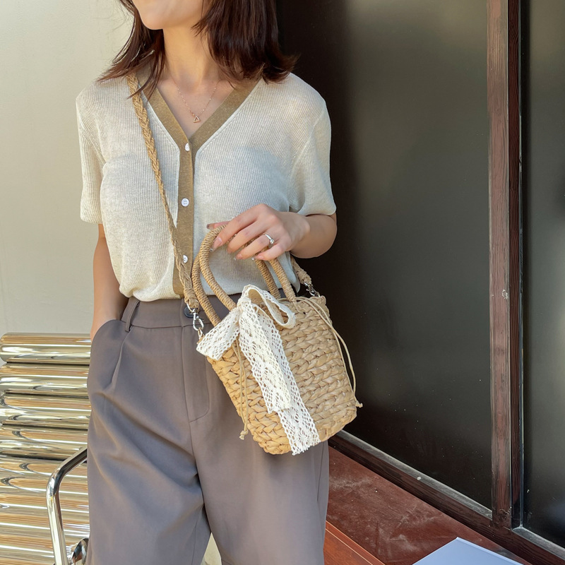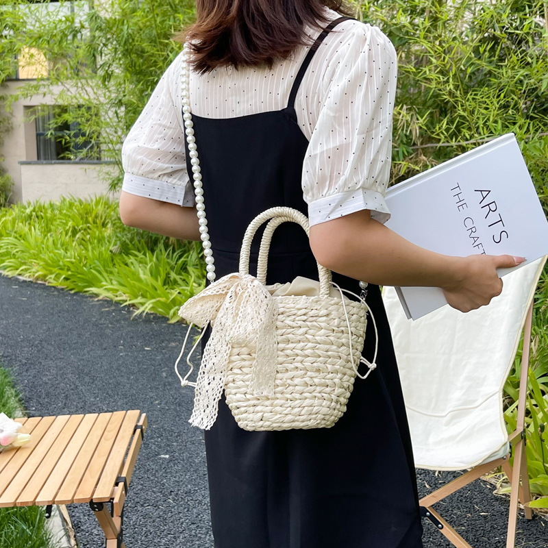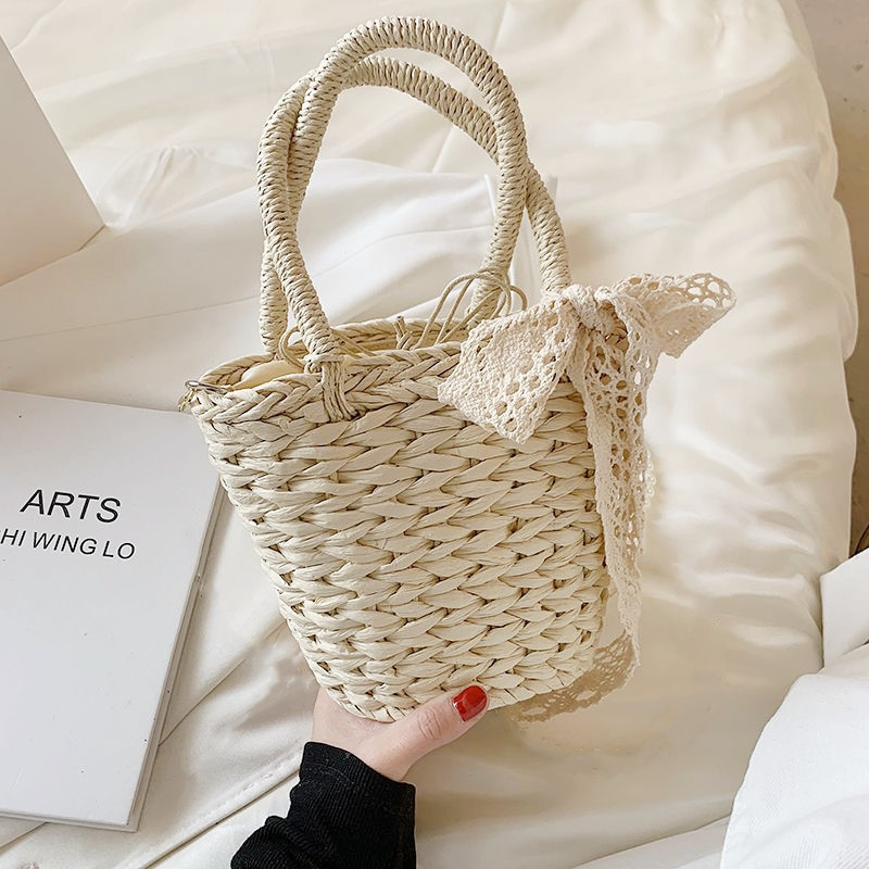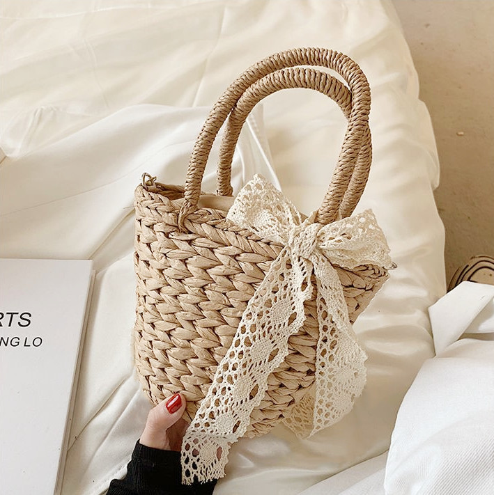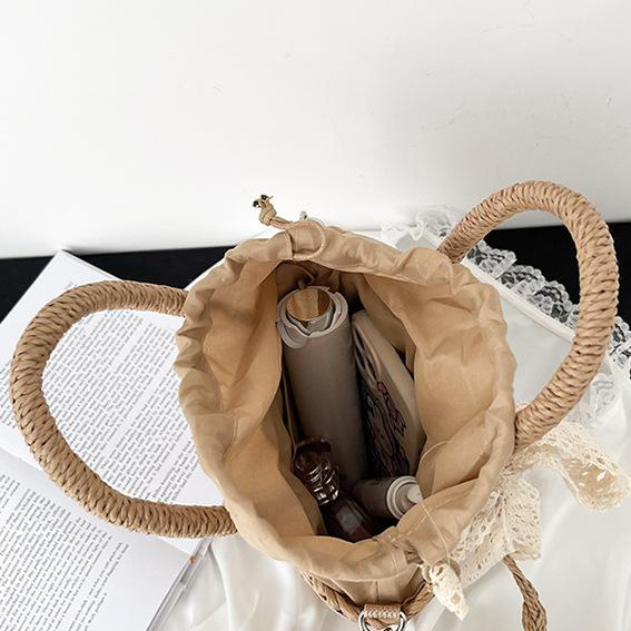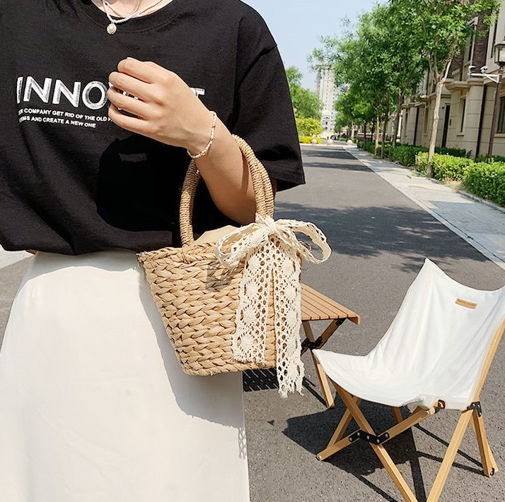 새로운 밀짚 가방 크로스 바디 인터넷 연예인 올 매치 짠 가방 핸드백 레이스 백 비치 휴가 버킷 백 올 매칭스토어 가기
