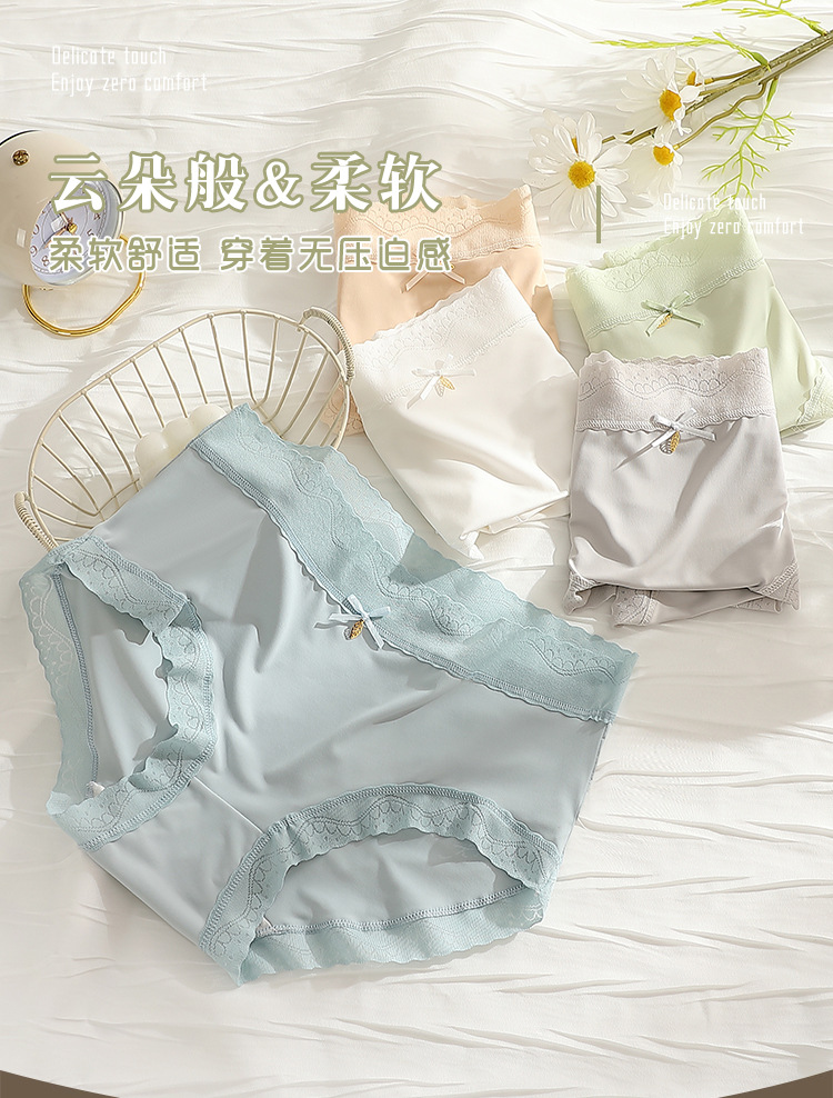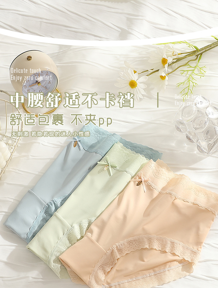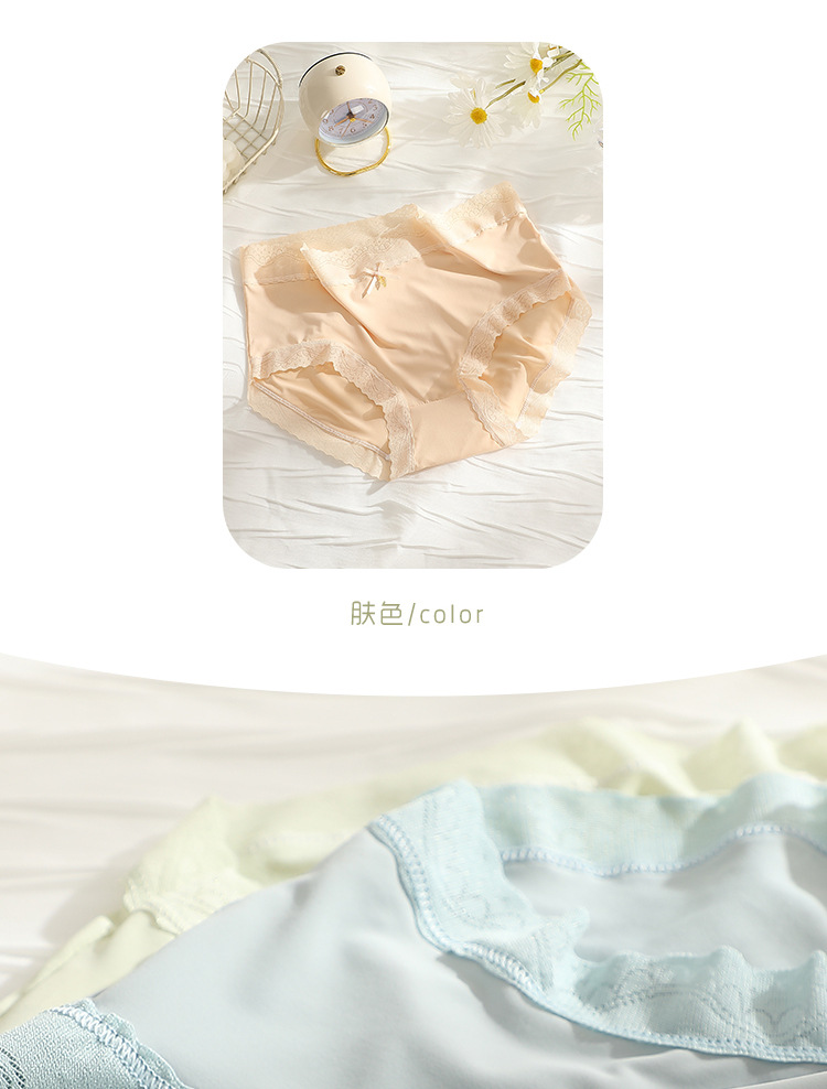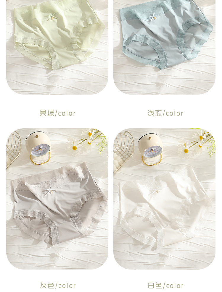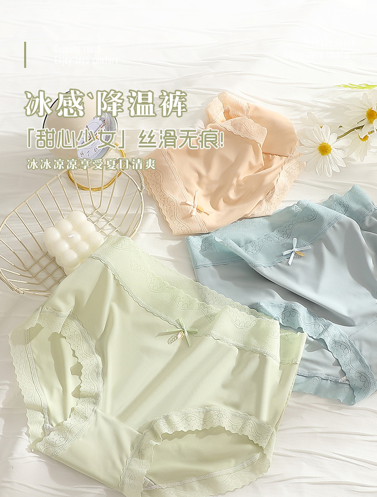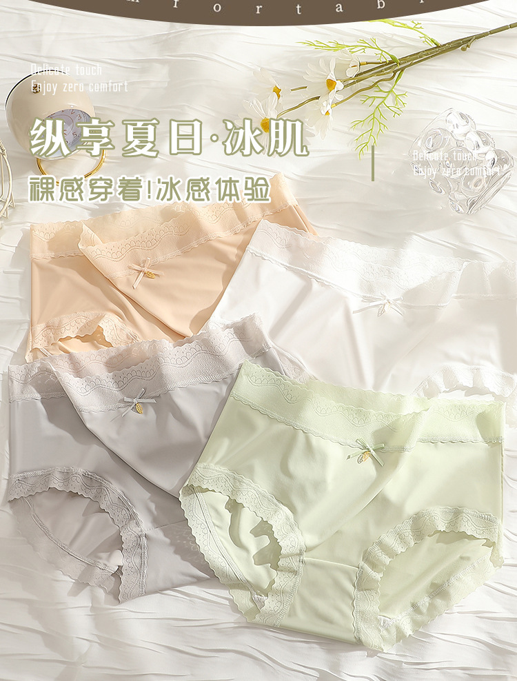 여성용 아이스 실크 팬티, 여름용 무봉제 얇은 팬티, 소녀용 통기성 속건 레이스 삼각팬티스토어 가기