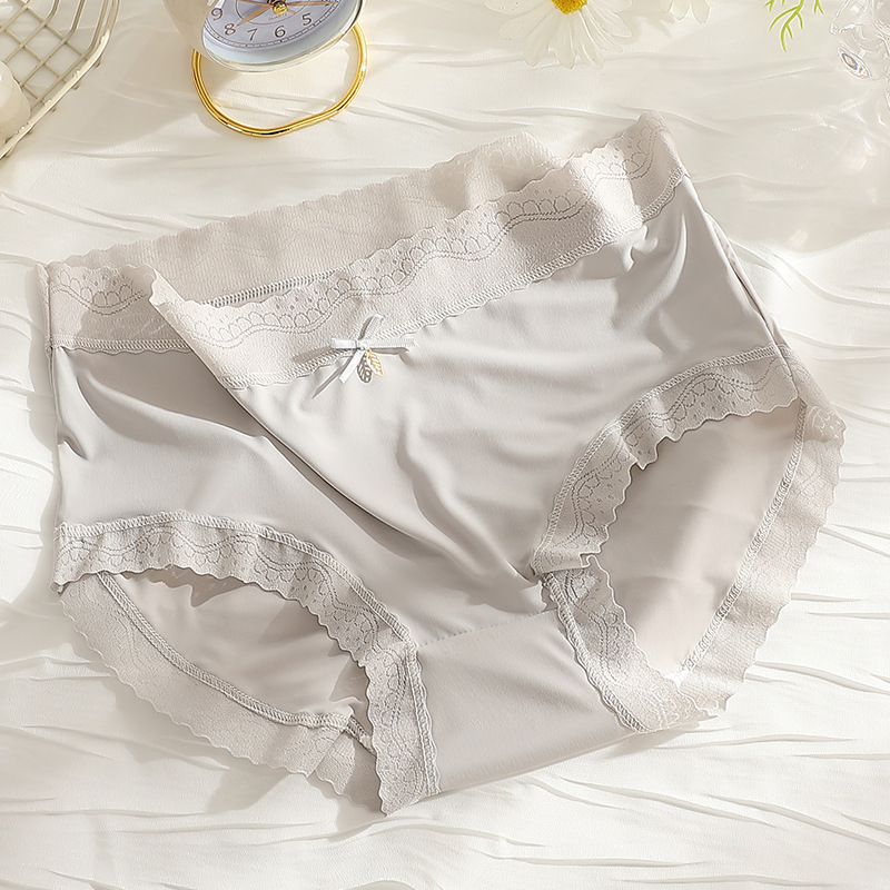 여성용 아이스 실크 팬티, 여름용 무봉제 얇은 팬티, 소녀용 통기성 속건 레이스 삼각팬티