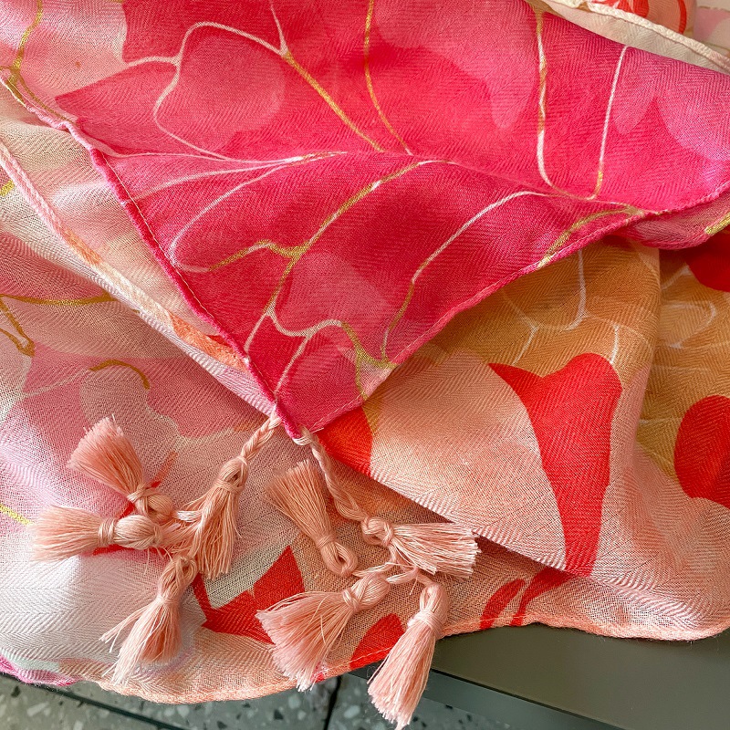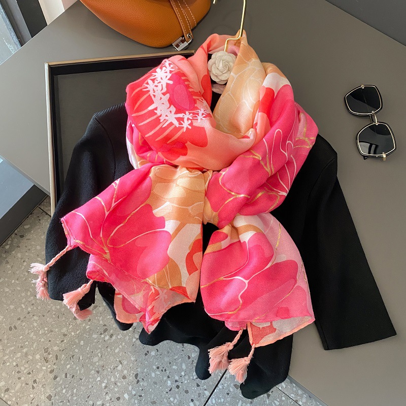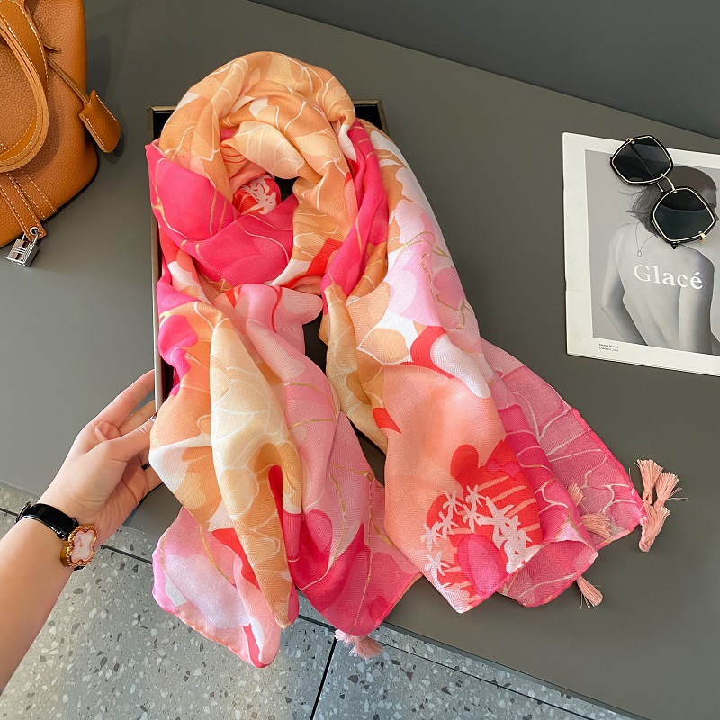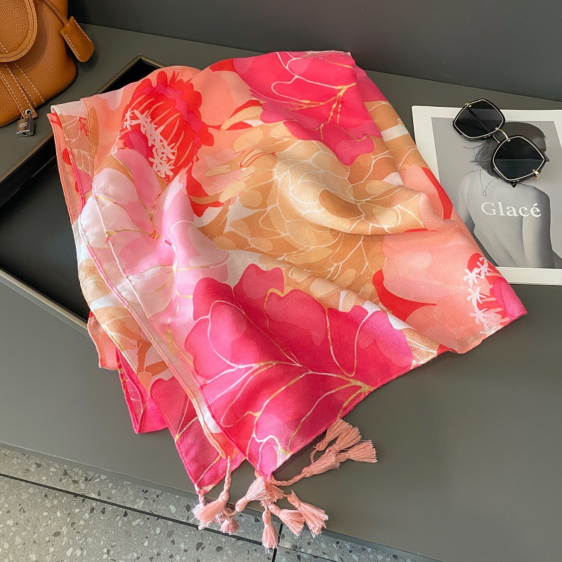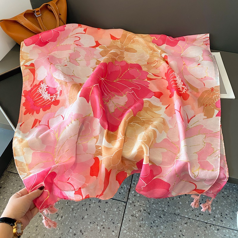 장미 핑크 꽃 스카프 여성의 여름 여행 태양 보호 모든 경기 목도리 봄과 가을 얇은면과 린넨 스카프 이중 사용스토어 가기