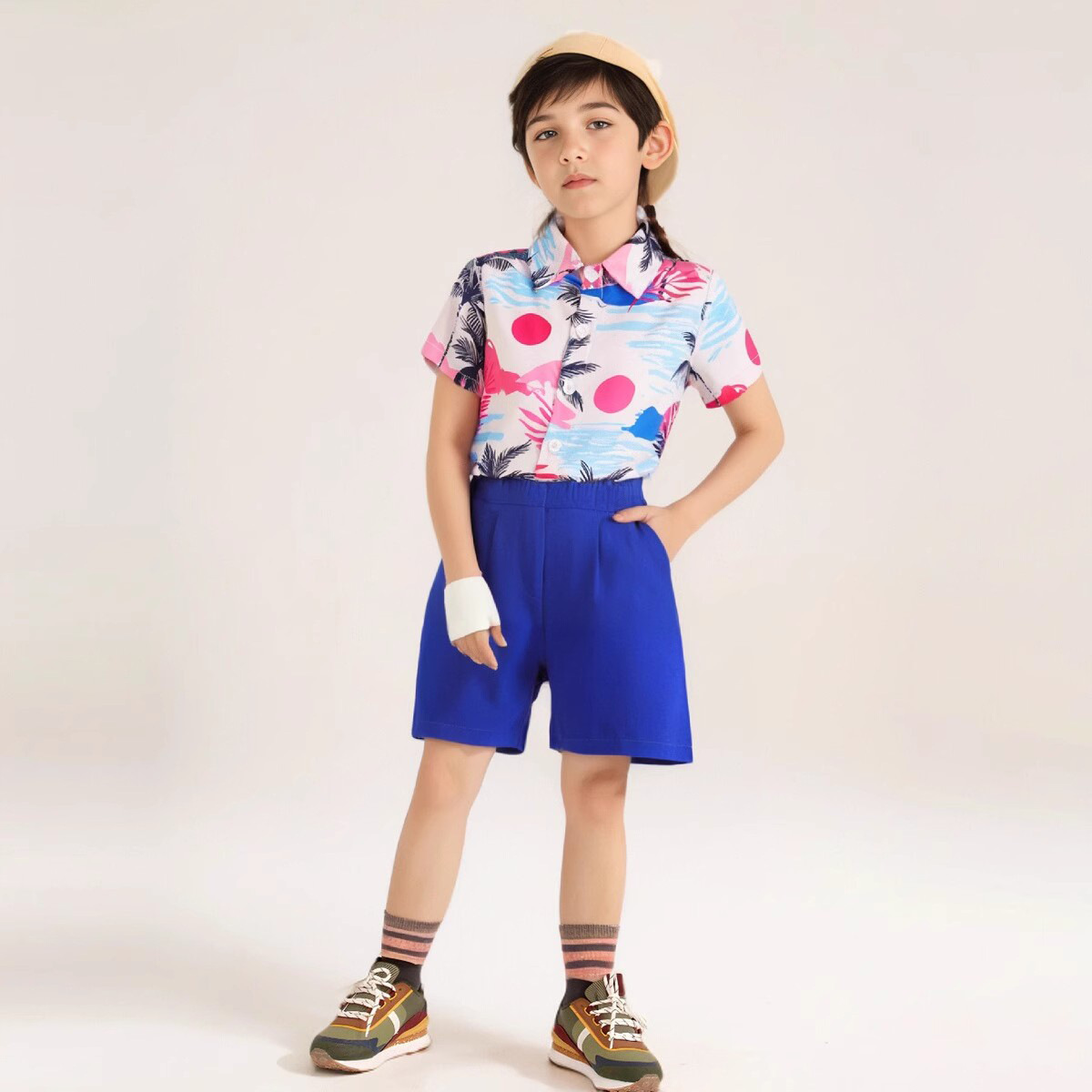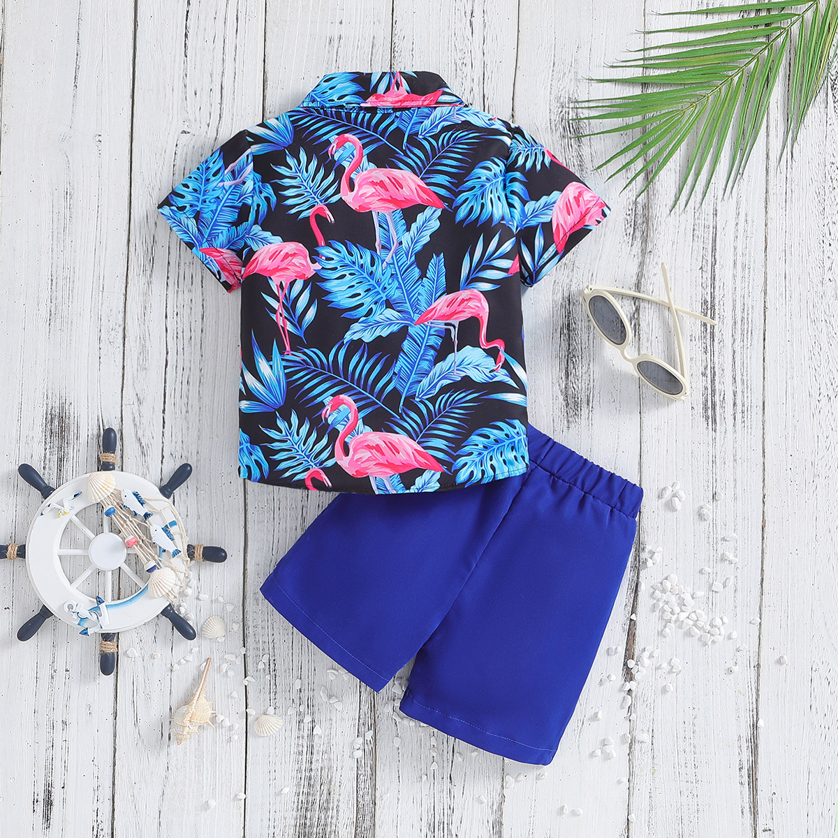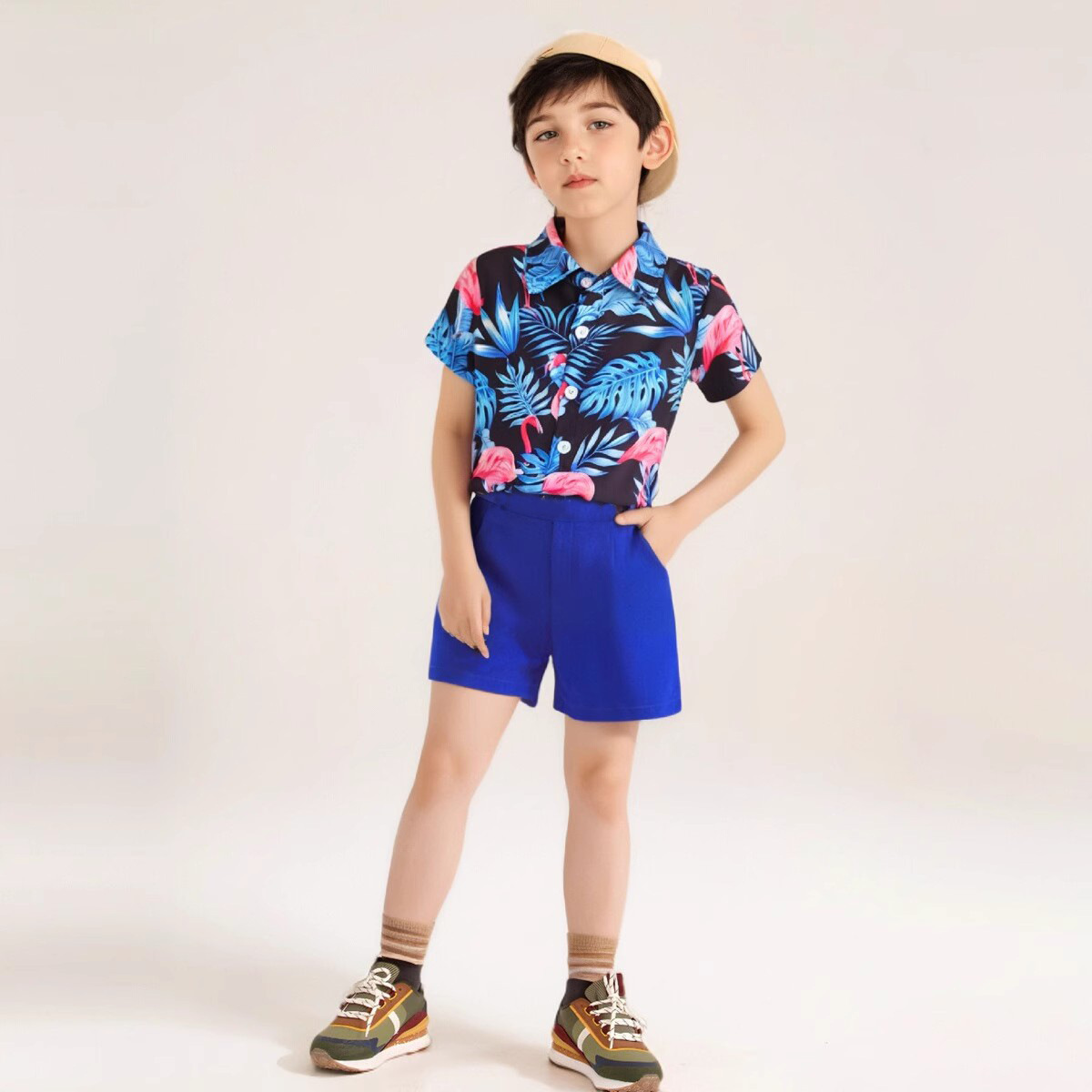 SAMGAMI BABY 아동복 세트 여름 새 소년 반팔 프린트 셔츠 반바지 투피스 세트