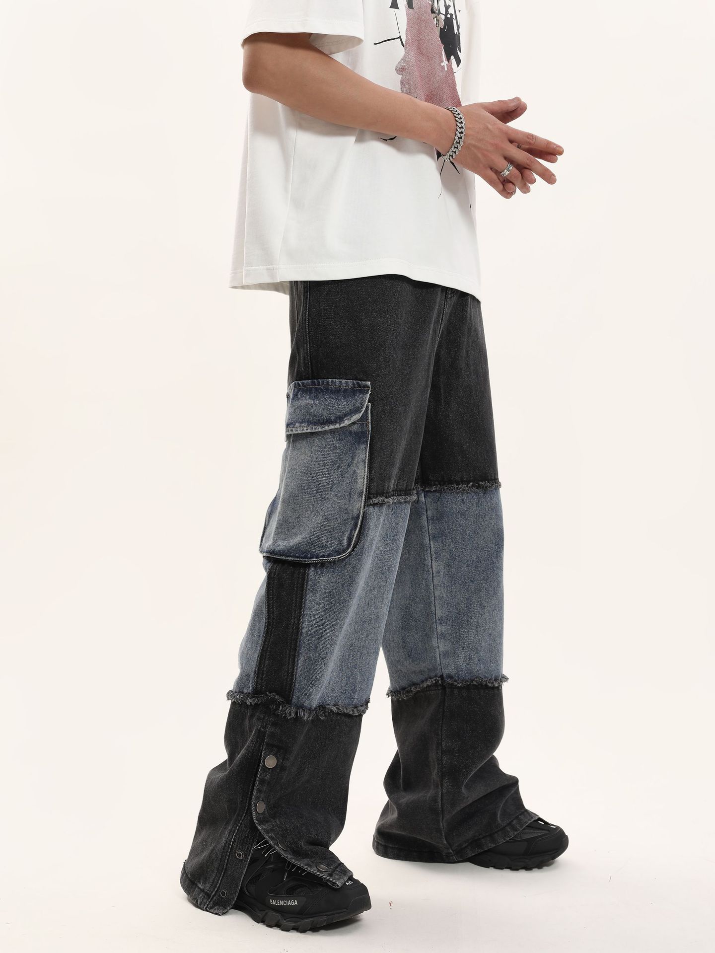 EONMODISH 남성복 | 2024 봄과 여름 새로운 리얼 샷 미국 길거리 세차 데님 바지