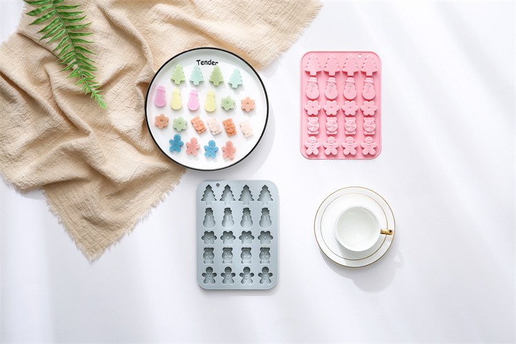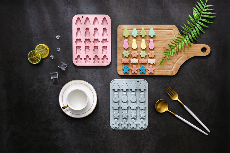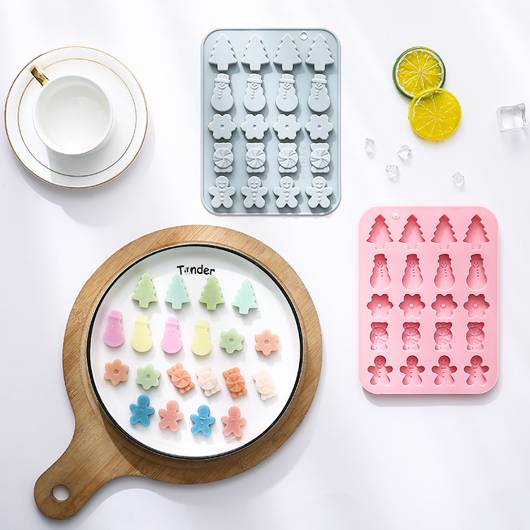 재고 20 크리스마스 테마 모델링 베이킹 도구 휴일 케이크 금형 초콜릿 아이스 트레이 실리콘 금형