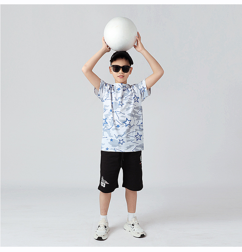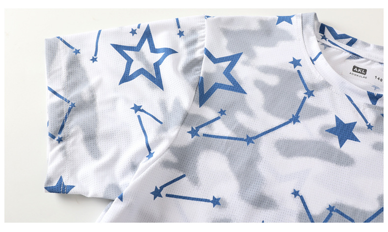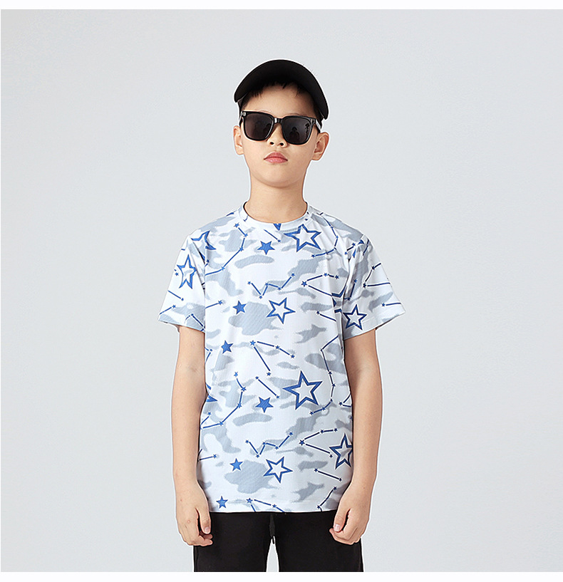 여름 한국 스타일의 새로운 어린이 스포츠 반팔 티셔츠 소년 전체 인쇄 통기성 빠른 건조 셔츠 소녀 반팔 도매