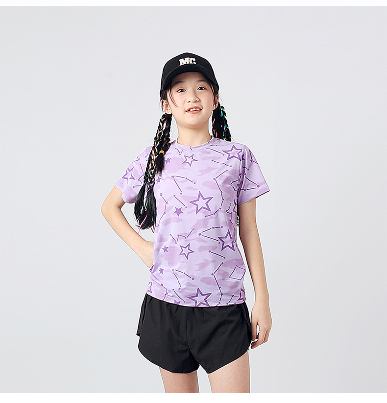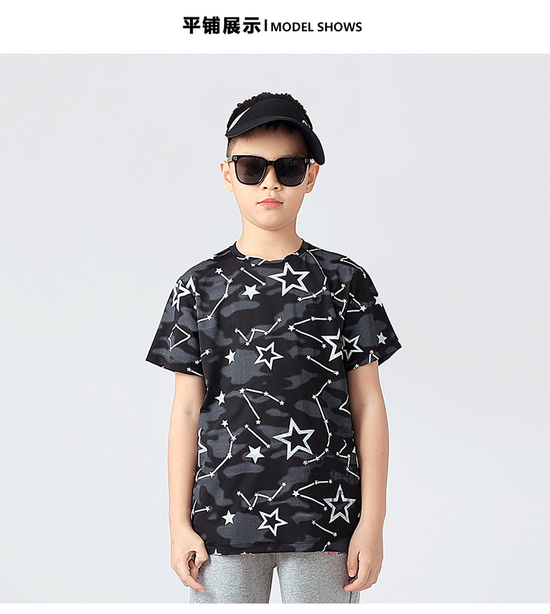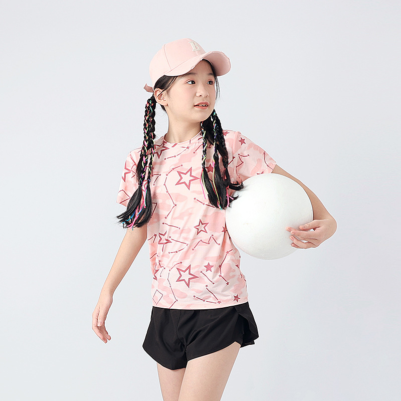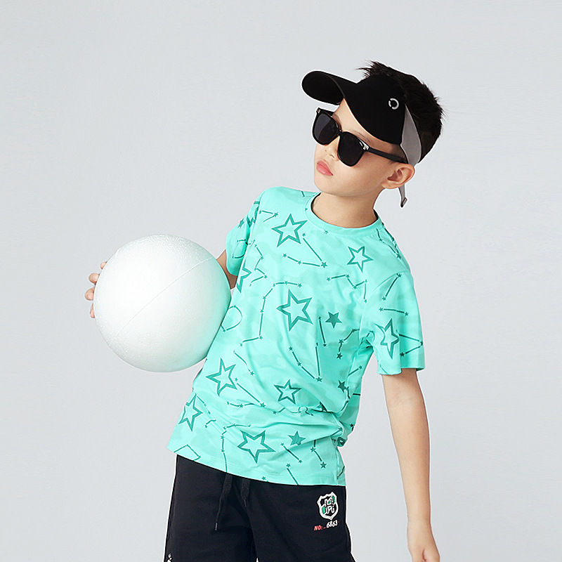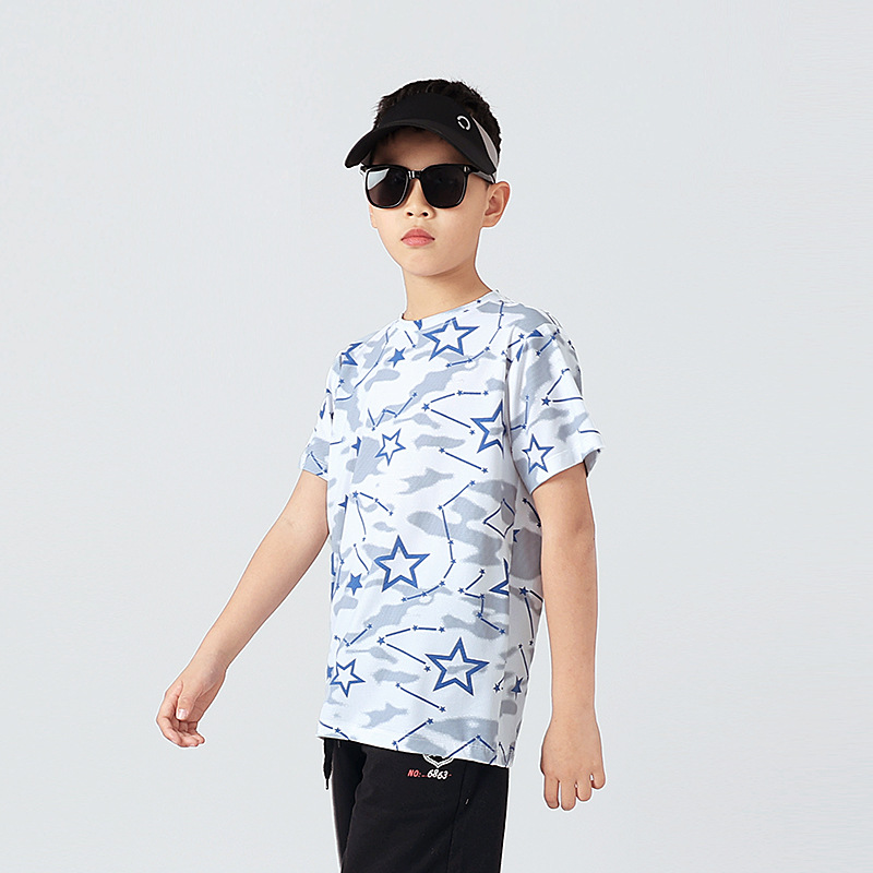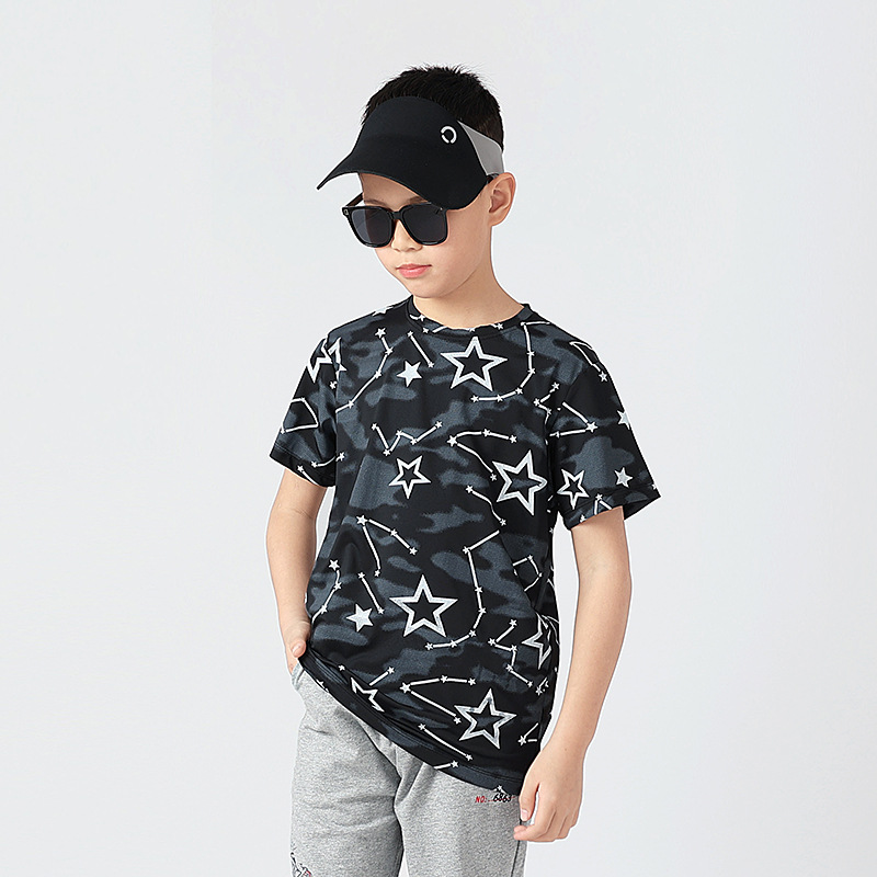 여름 한국 스타일의 새로운 어린이 스포츠 반팔 티셔츠 소년 전체 인쇄 통기성 빠른 건조 셔츠 소녀 반팔 도매스토어 가기