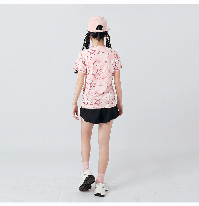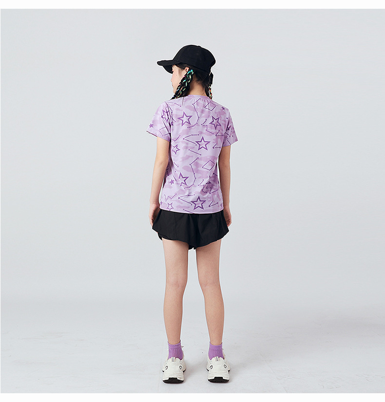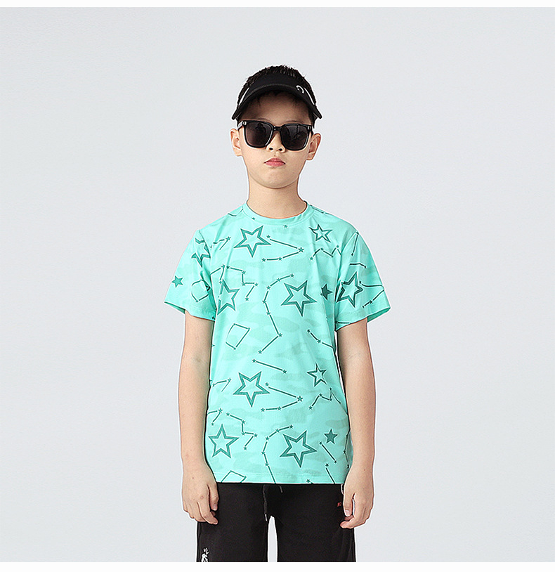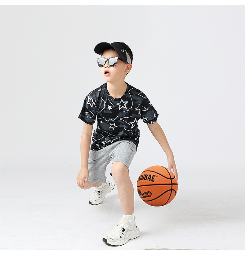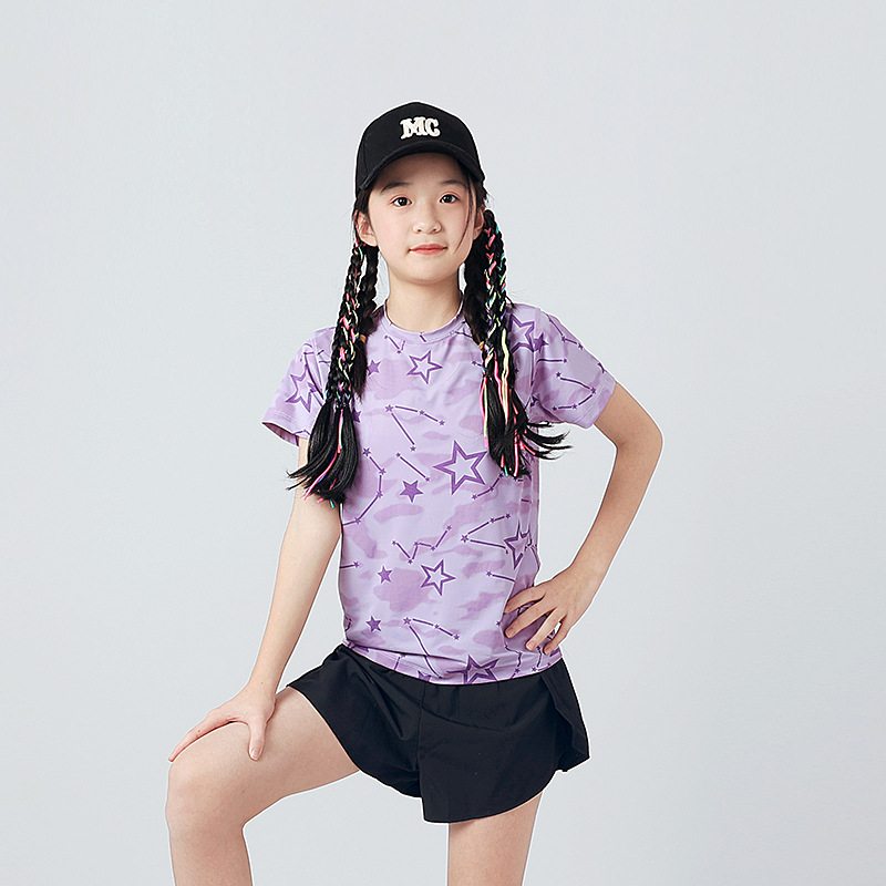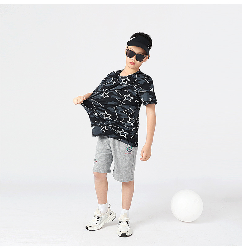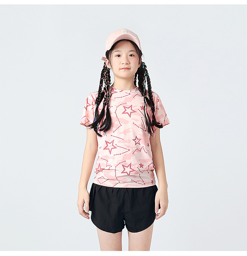 여름 한국 스타일의 새로운 어린이 스포츠 반팔 티셔츠 소년 전체 인쇄 통기성 빠른 건조 셔츠 소녀 반팔 도매스토어 가기