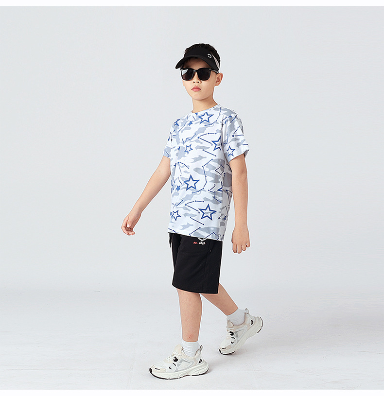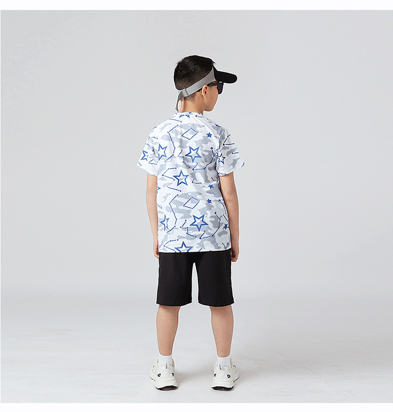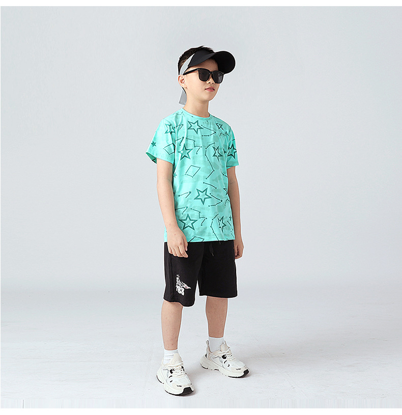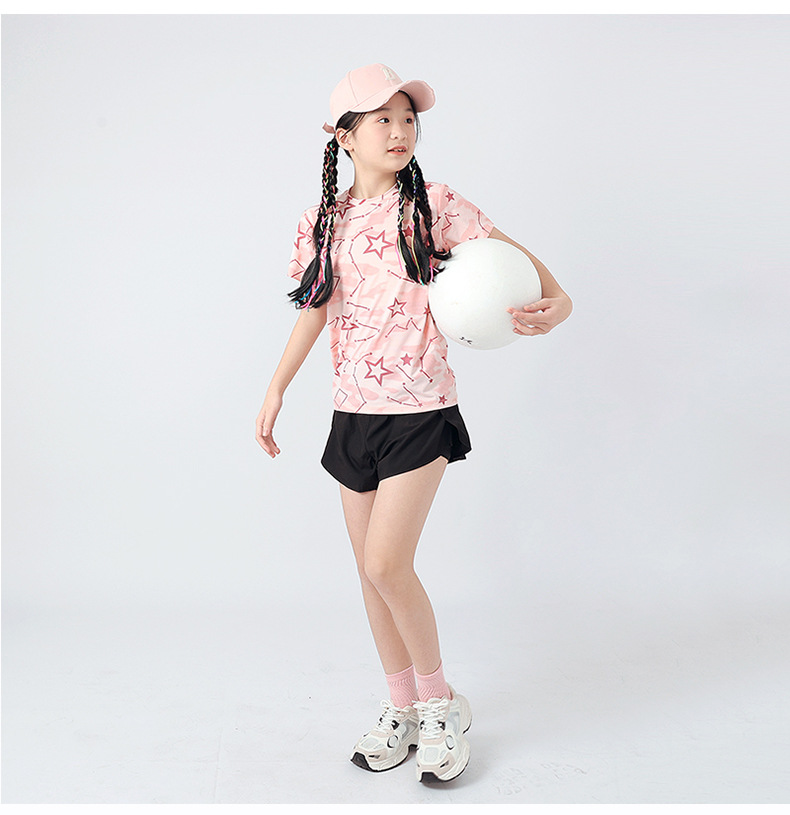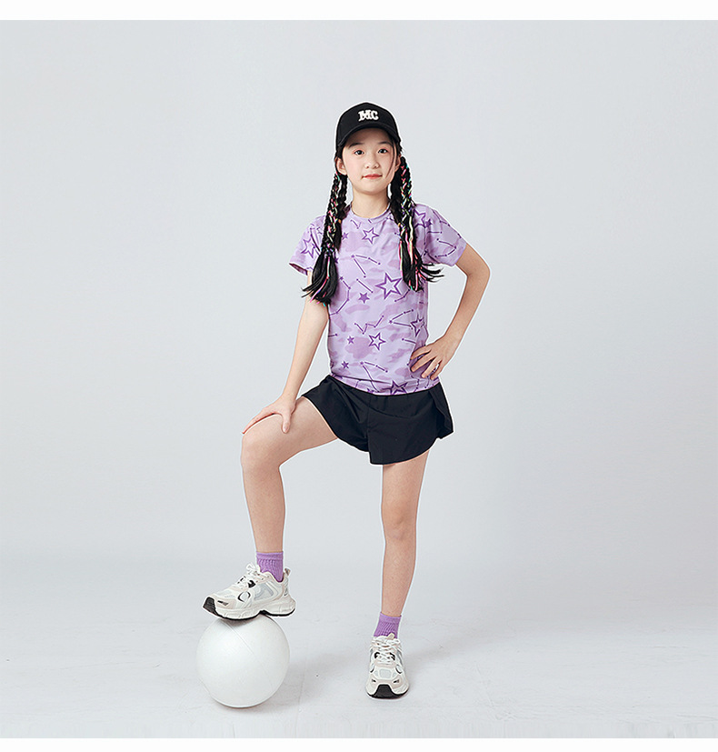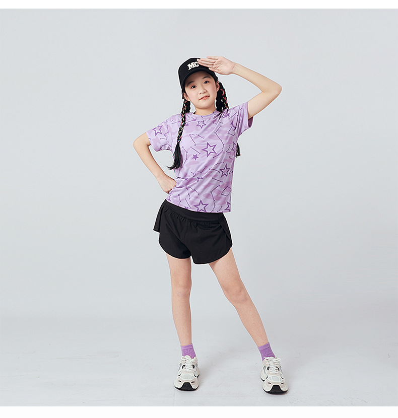 여름 한국 스타일의 새로운 어린이 스포츠 반팔 티셔츠 소년 전체 인쇄 통기성 빠른 건조 셔츠 소녀 반팔 도매스토어 가기