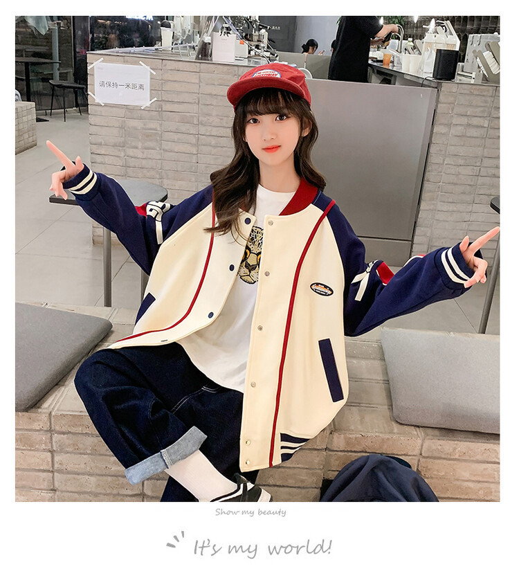 소녀 자켓 봄과 가을 2024 새로운 서양식 소녀 캐주얼 재킷 느슨한 어린이 봄 야구 유니폼스토어 가기