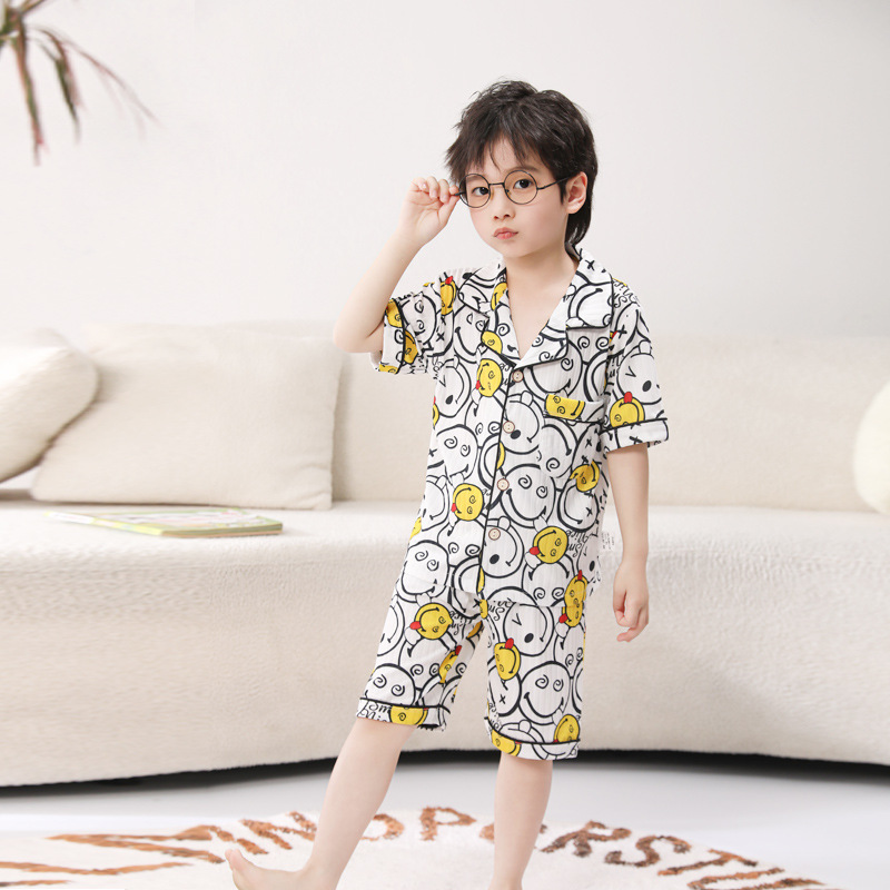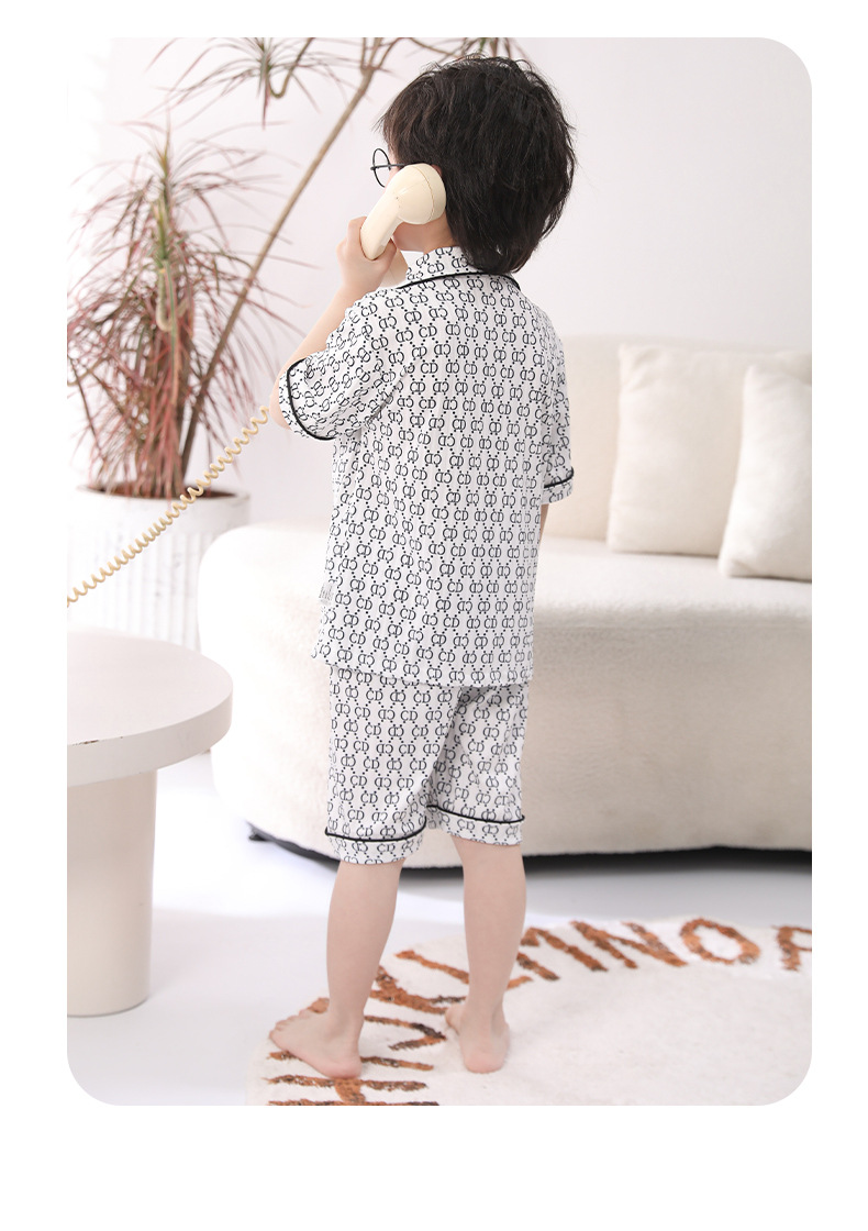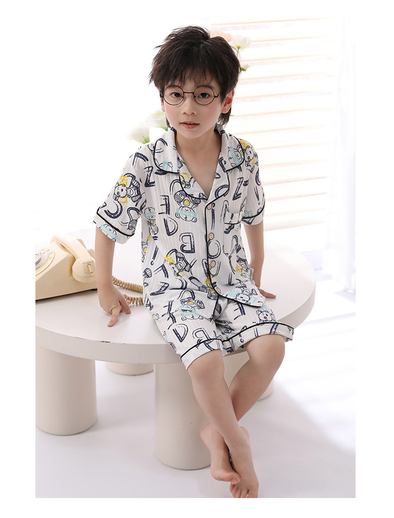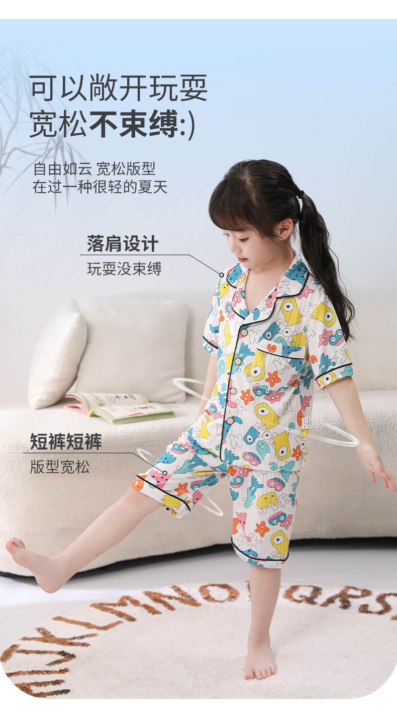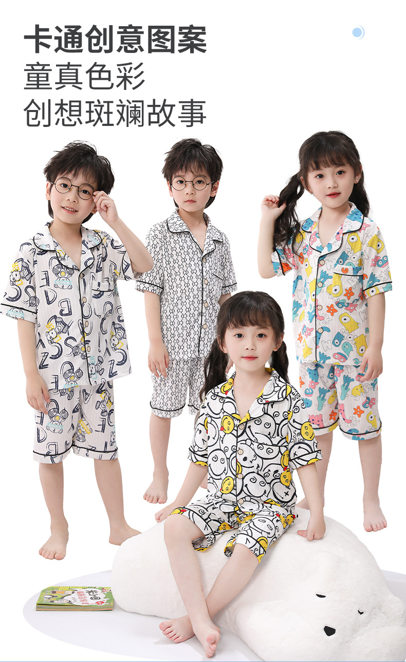 옷깃 어린이 가정복 세트 여름 새로운 중형 및 대형 어린이 에어컨 옷 소년 소녀 반팔 반바지 서양식 잠옷스토어 가기