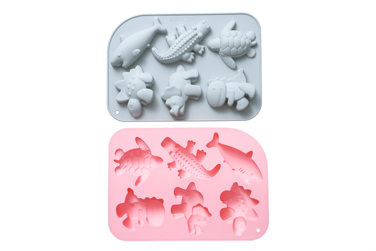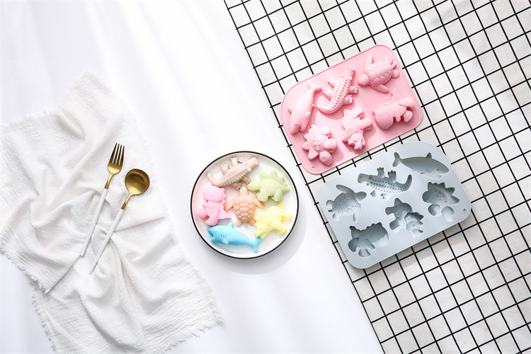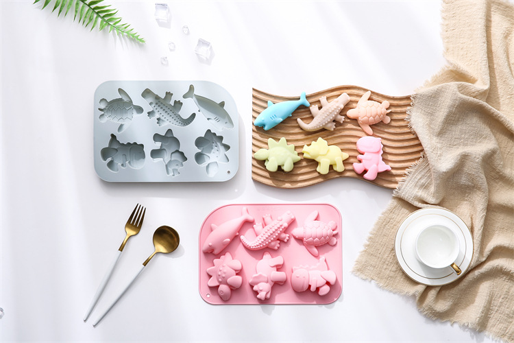 재고 6 조각 공룡 상어 악어 거북이 모양 실리콘 금형 초콜릿 케이크 금형 베이킹 에폭시 금형