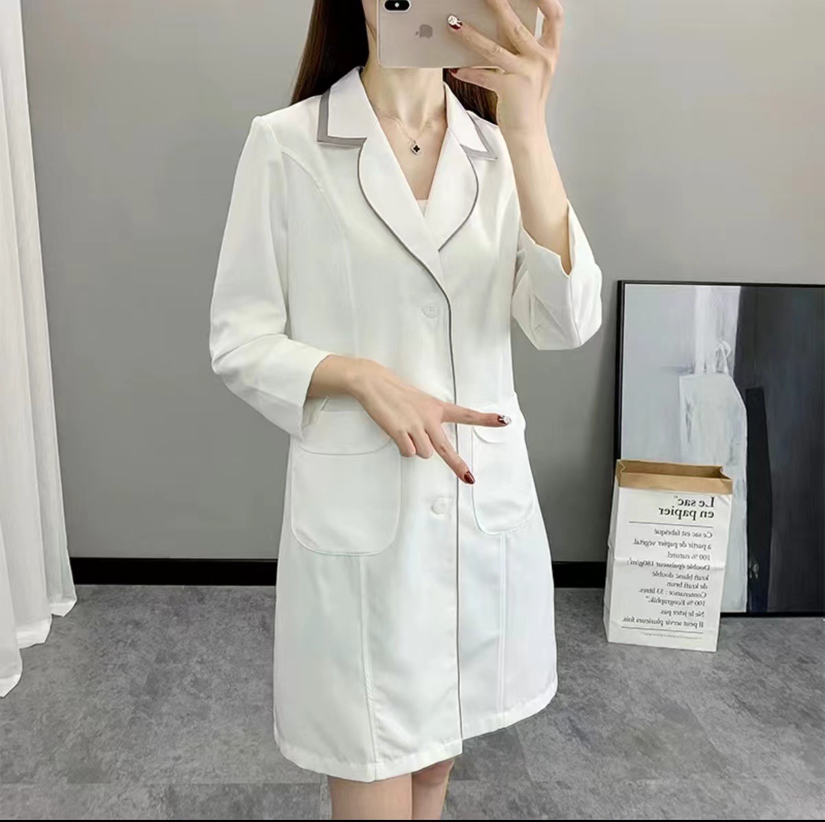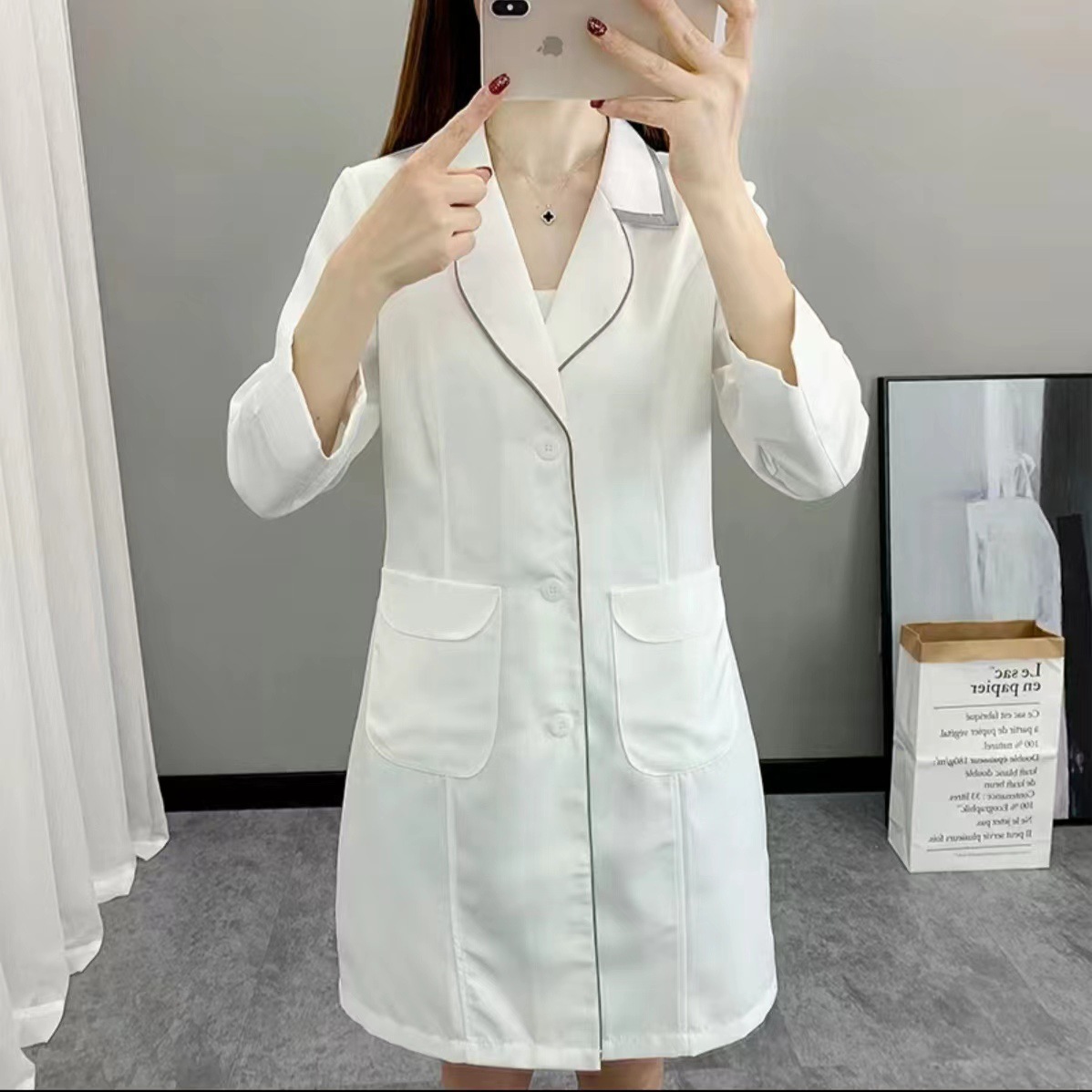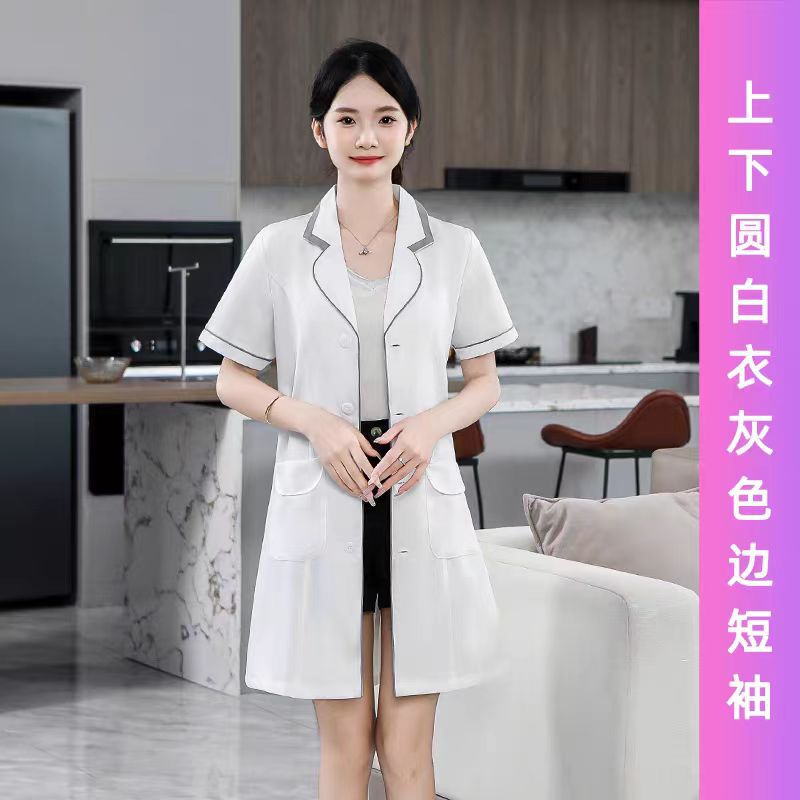 미용실 작업복 유니폼 간호사 옷 미용 발 목욕 감금 흰색 가운 약국 스킨 관리 짧은 소매