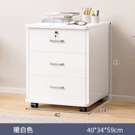 • [자물쇠와 도르래가있는 3 개의 서랍] 따뜻한 흰색 40*34*59cm