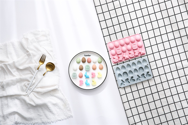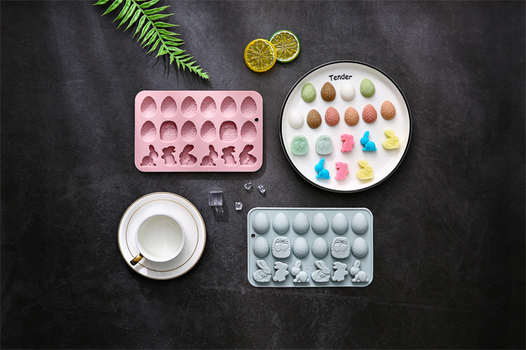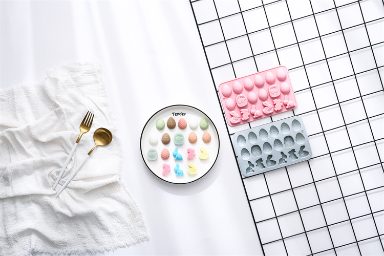 재고 18 심지어 부활절 테마 바구니 다채로운 계란 토끼 모양 실리콘 금형 초콜릿 캔디 케이크 금형스토어 가기