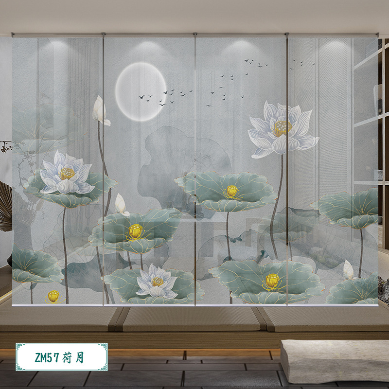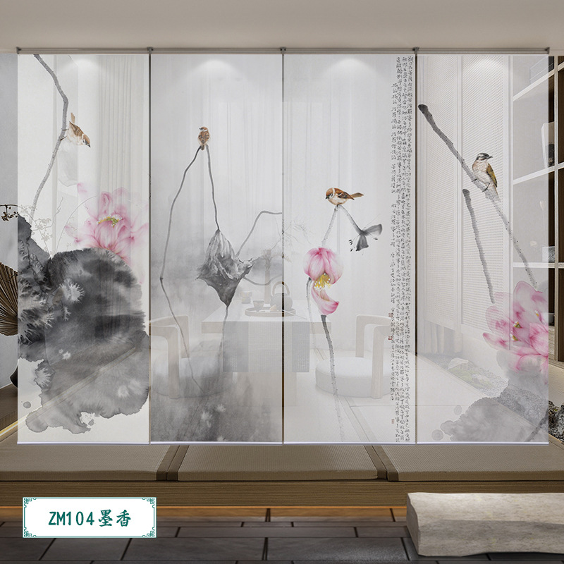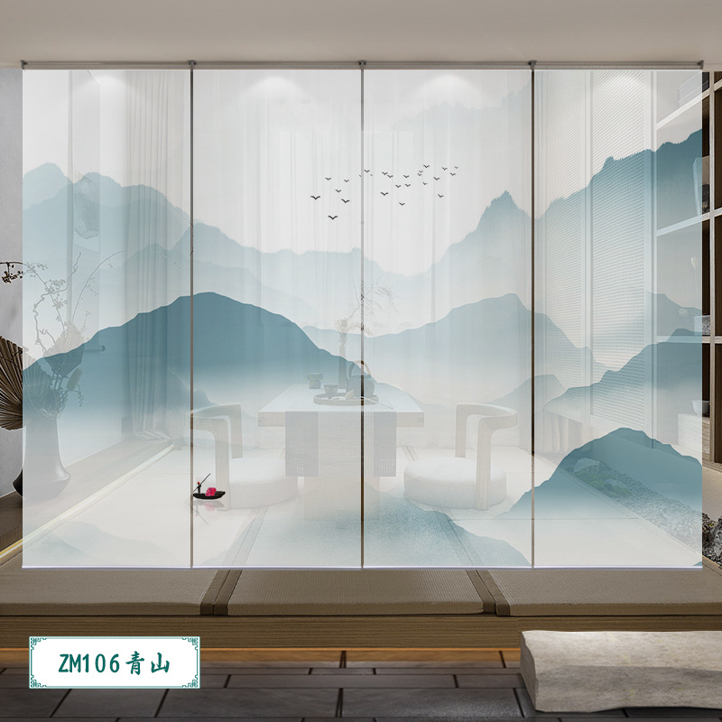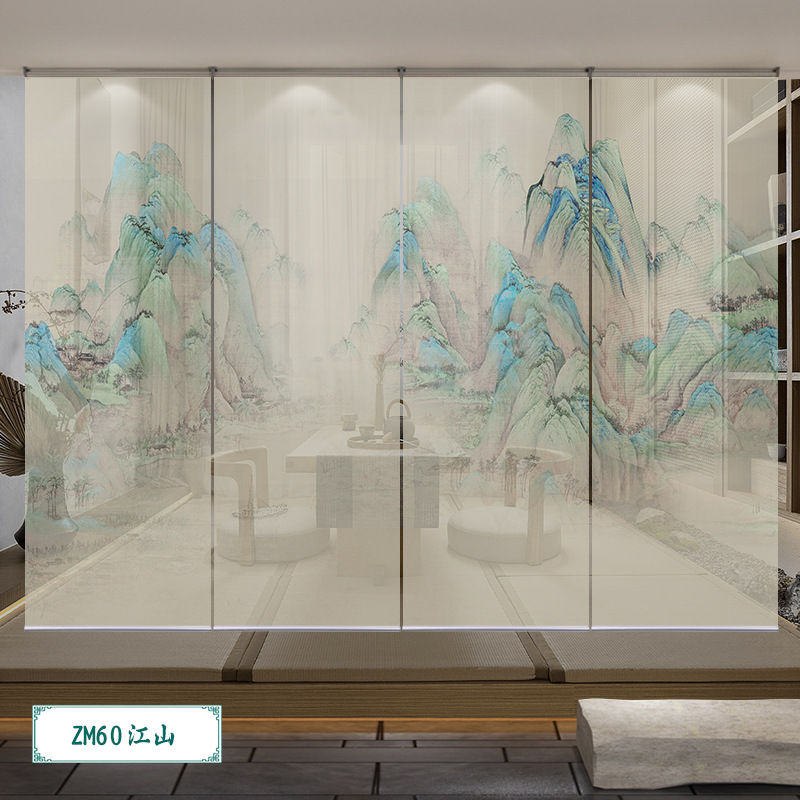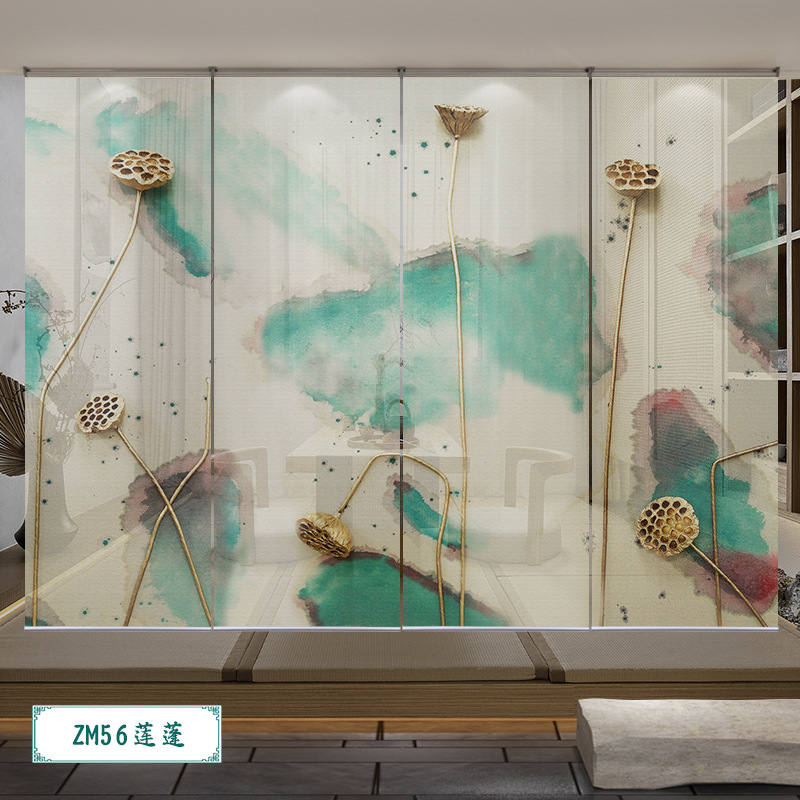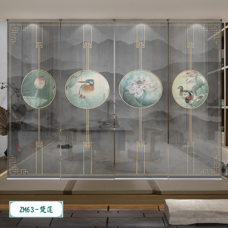 새로운 중국 스타일 파티션 커튼 투명 교수형 커튼 전기 지능형 리프팅 거실 입구 배경 장식 스크린 롤러 커튼 커튼