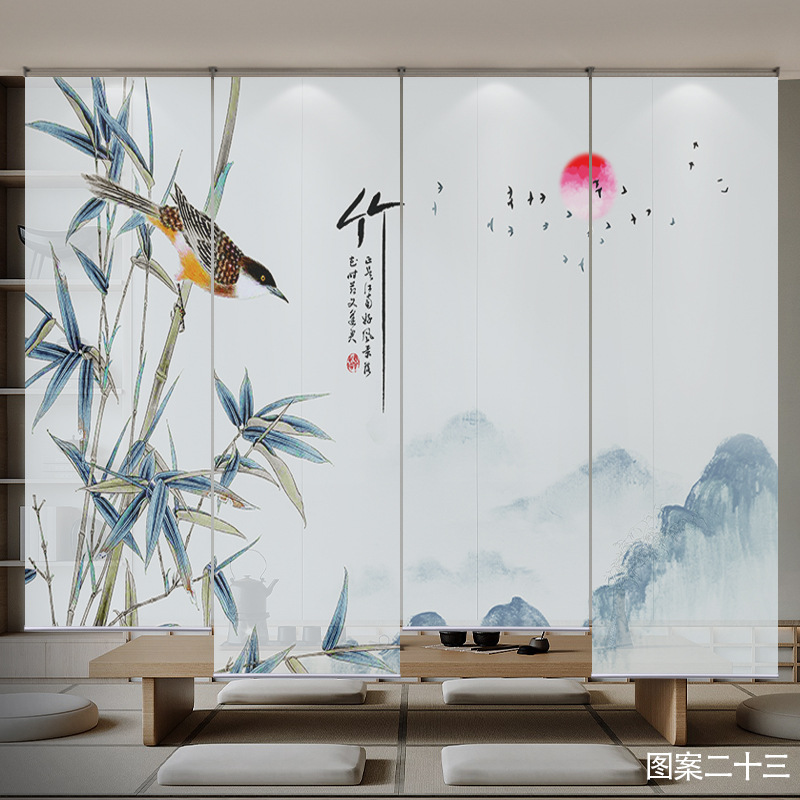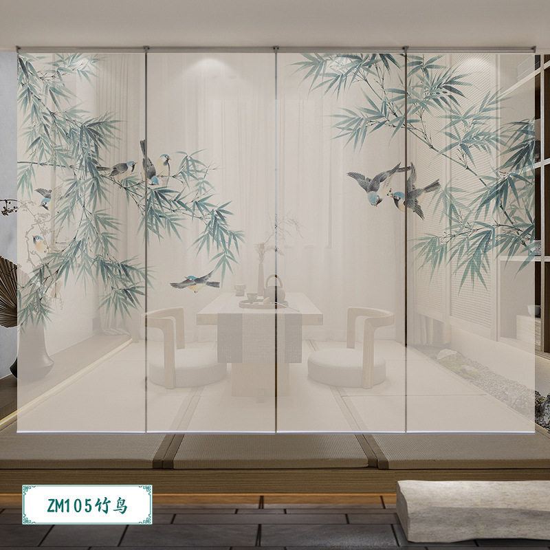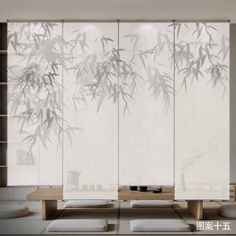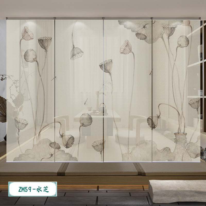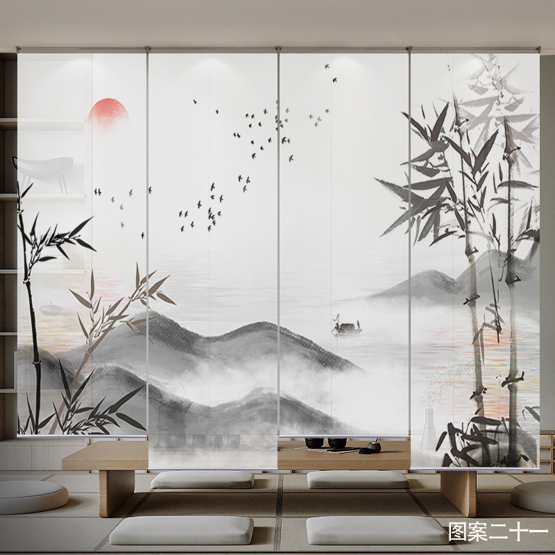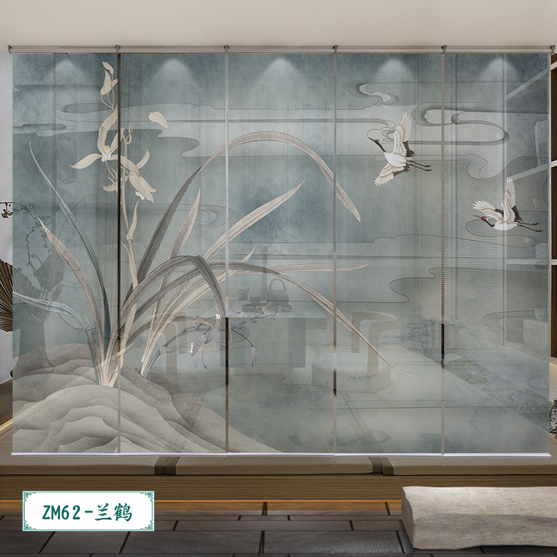 새로운 중국 스타일 파티션 커튼 투명 교수형 커튼 전기 지능형 리프팅 거실 입구 배경 장식 스크린 롤러 커튼 커튼