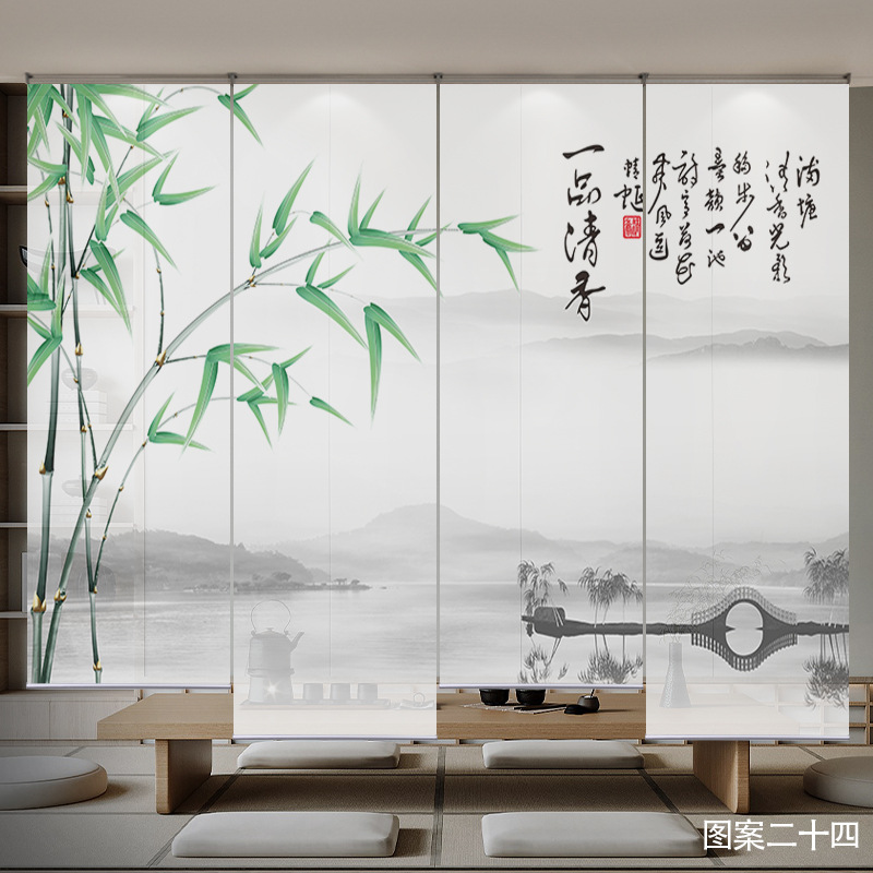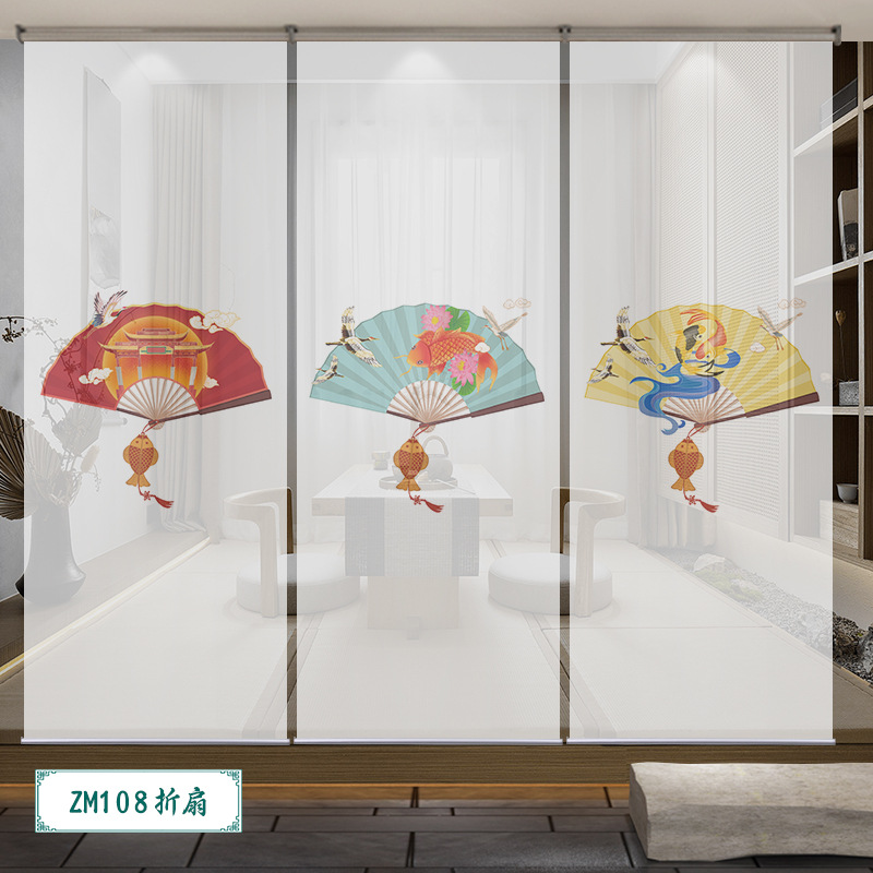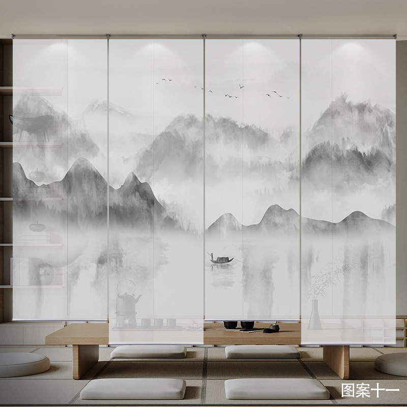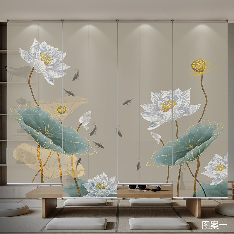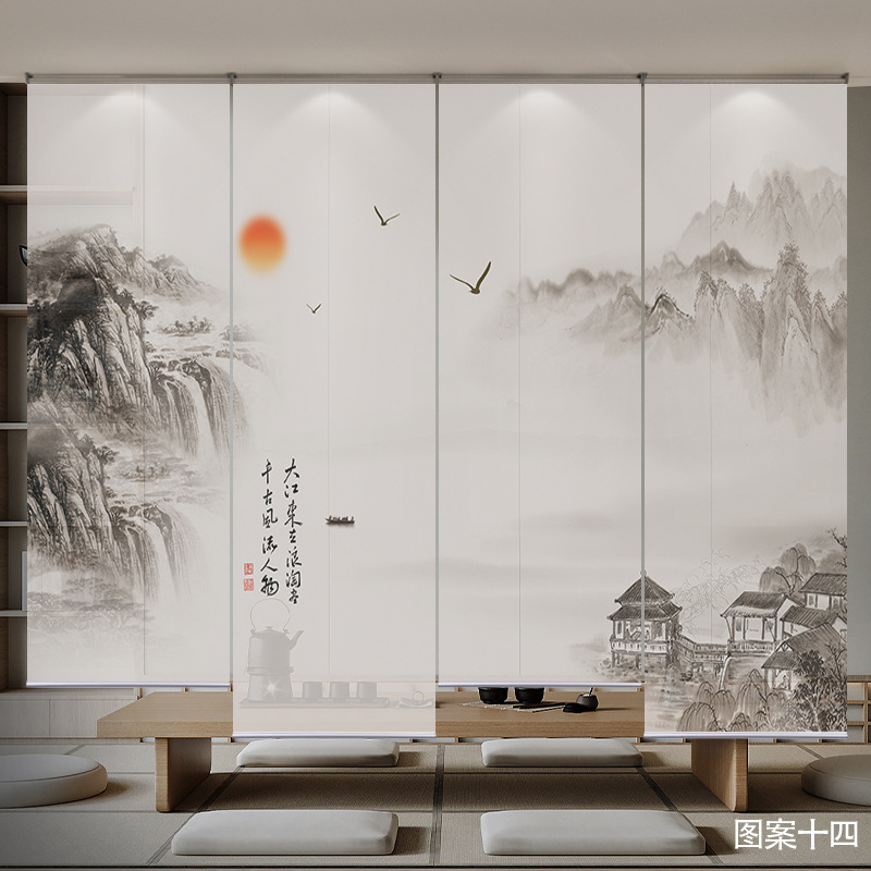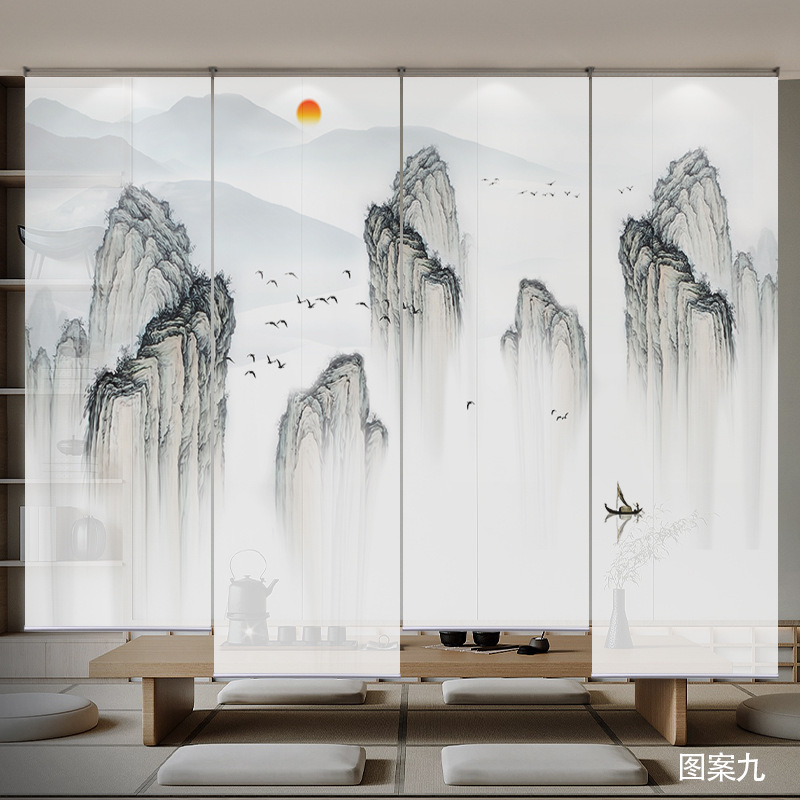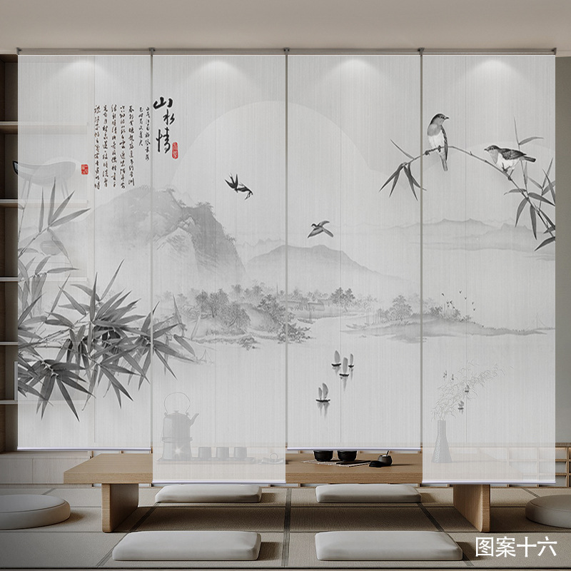새로운 중국 스타일 파티션 커튼 투명 교수형 커튼 전기 지능형 리프팅 거실 입구 배경 장식 스크린 롤러 커튼 커튼스토어 가기