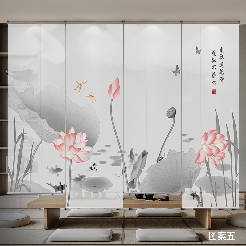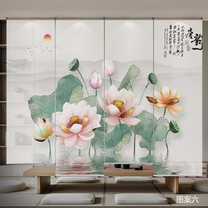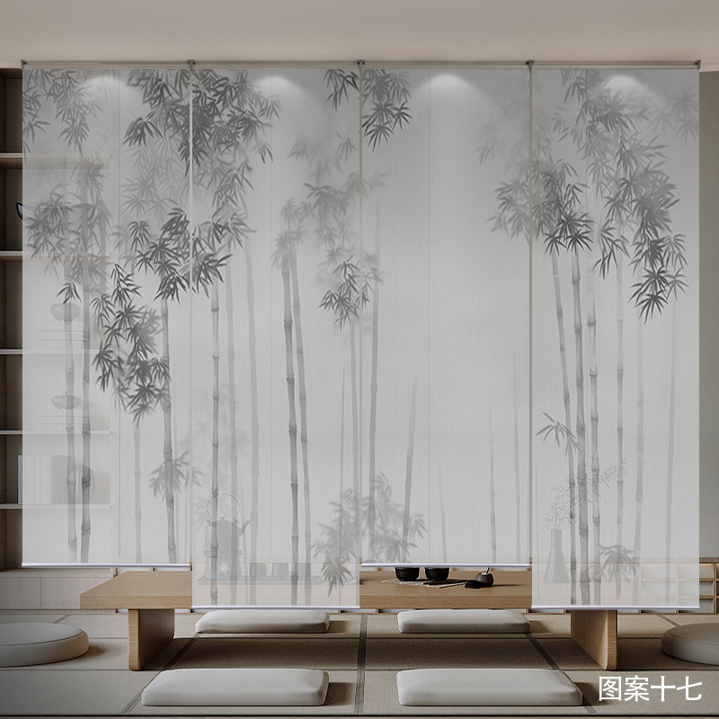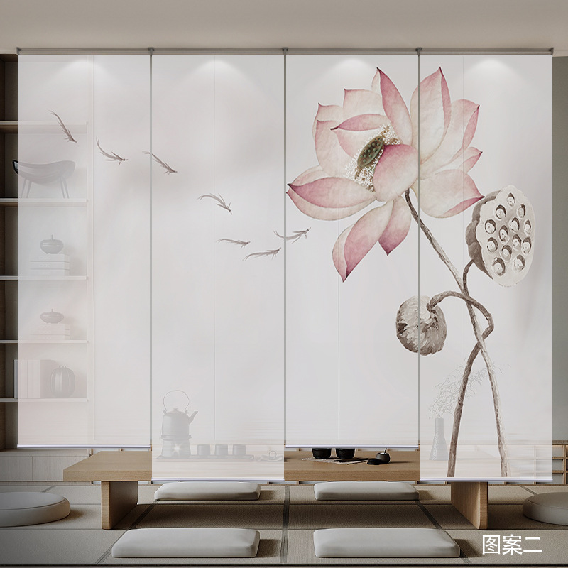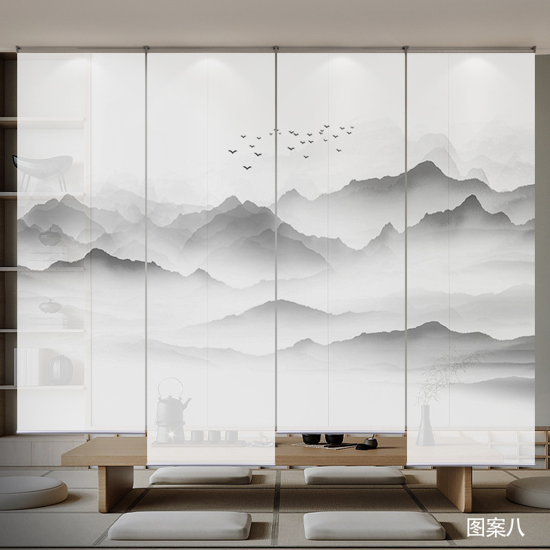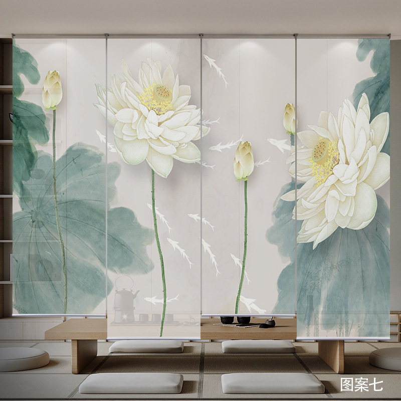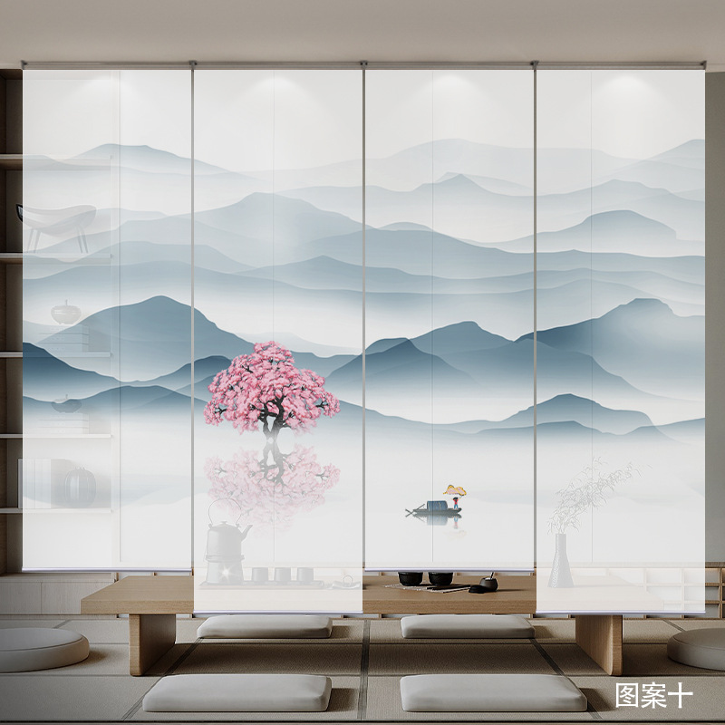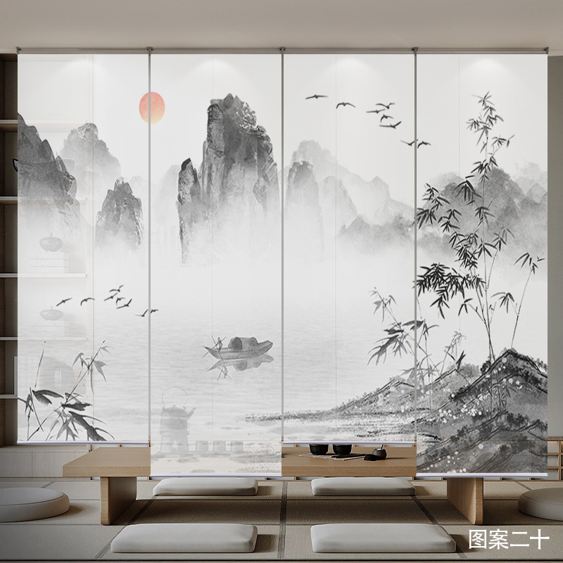 새로운 중국 스타일 파티션 커튼 투명 교수형 커튼 전기 지능형 리프팅 거실 입구 배경 장식 스크린 롤러 커튼 커튼스토어 가기
