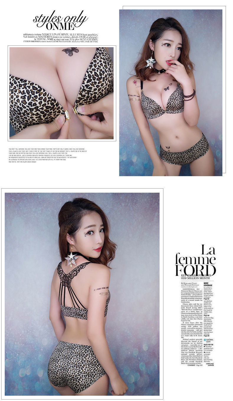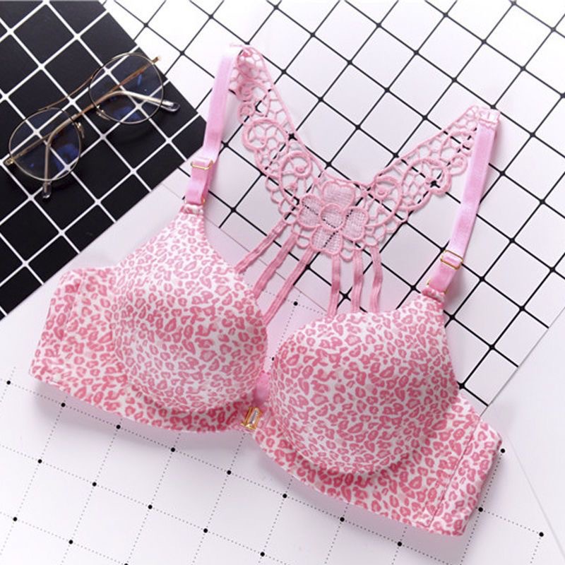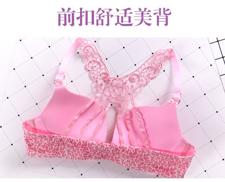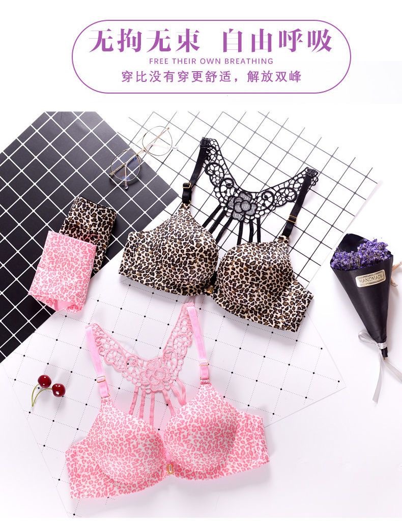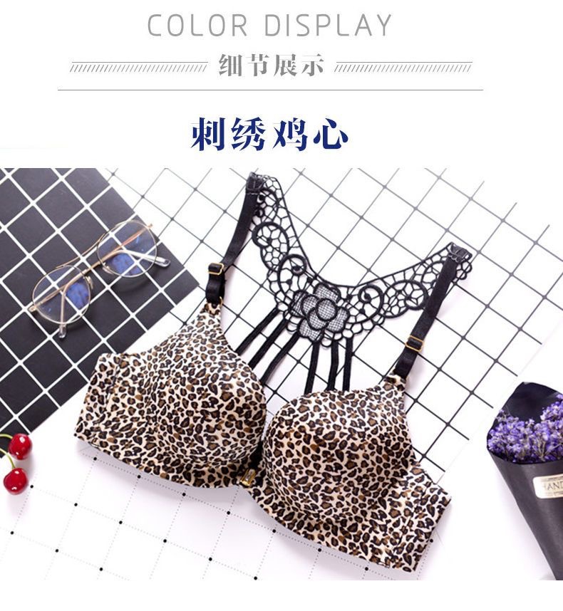 작은 가슴 속옷 여성의 앞 버클 뷰티 백 섹시한 레오파드 무늬 탑 지원 스틸 링 조절 편안한 가슴 브래지어
