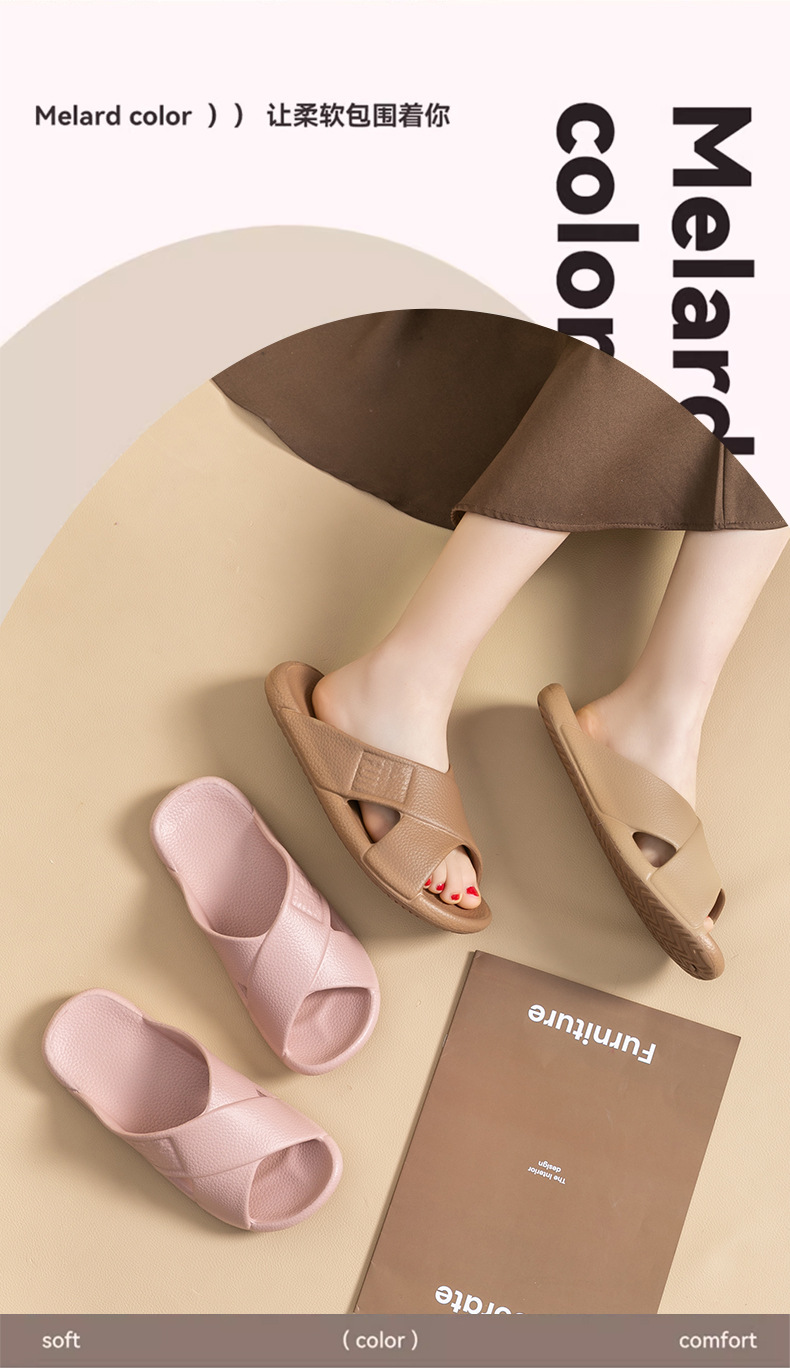 Jiajiale 2024 Maillard 크로스 가죽 패턴 EVA 홈 욕실 실내 목욕 미끄럼 방지 커플 슬리퍼스토어 가기