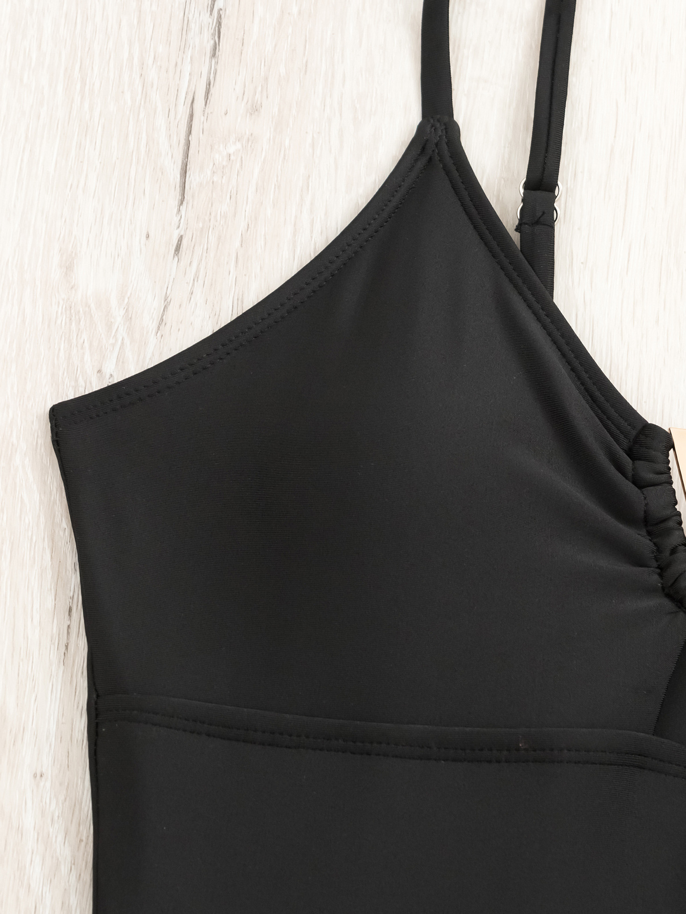 대외 무역 새로운 슬링 원피스 수영복 Купальник 유럽과 미국의 단색 속이 빈 원피스 수영복