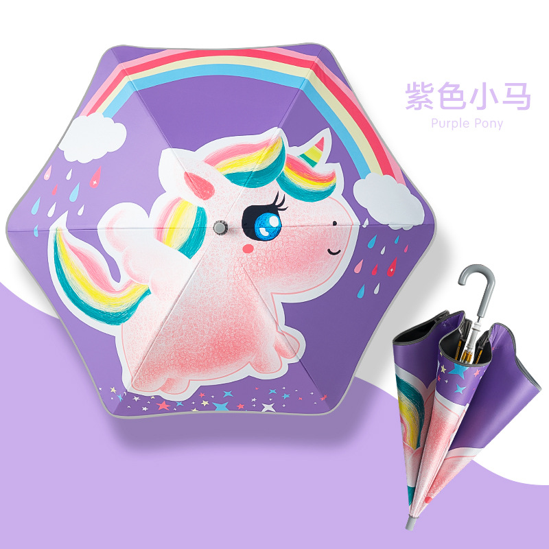 • 어린이 안전 둥근 우산-보라색 조랑말