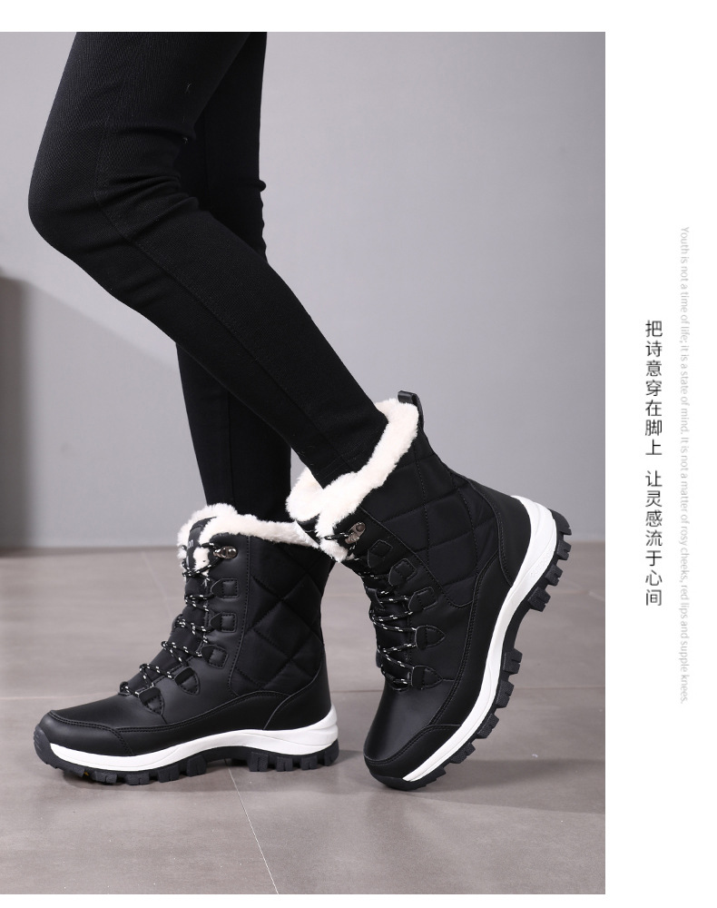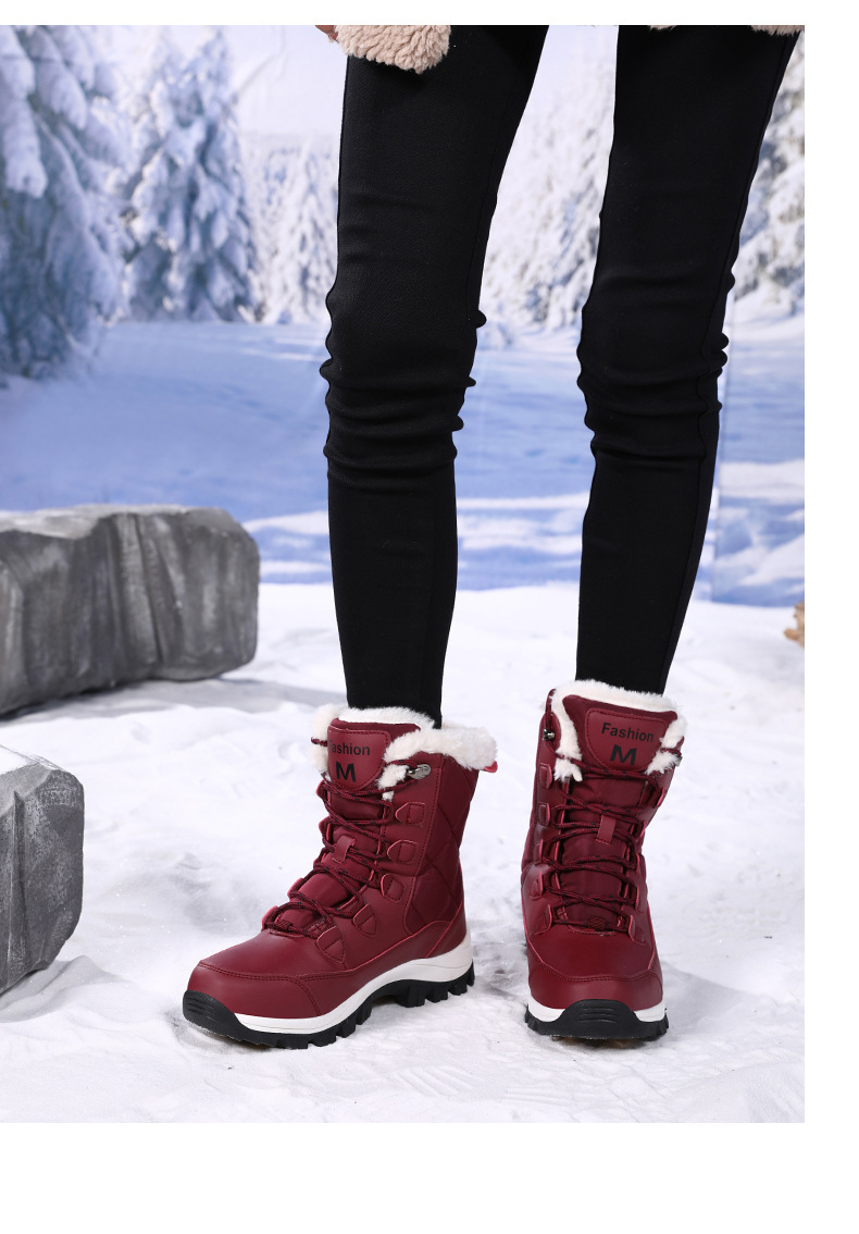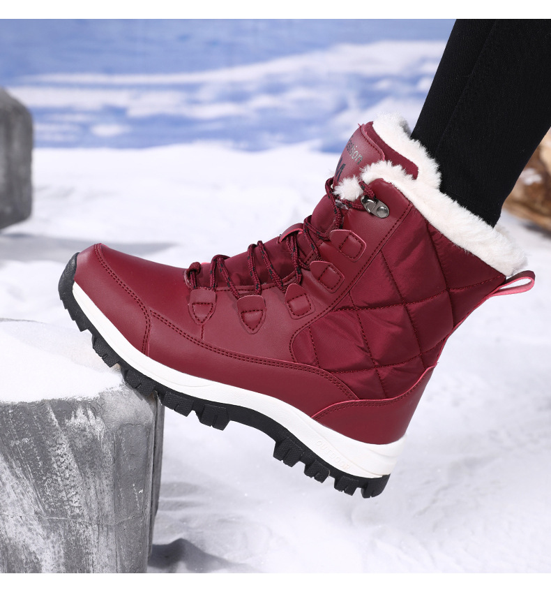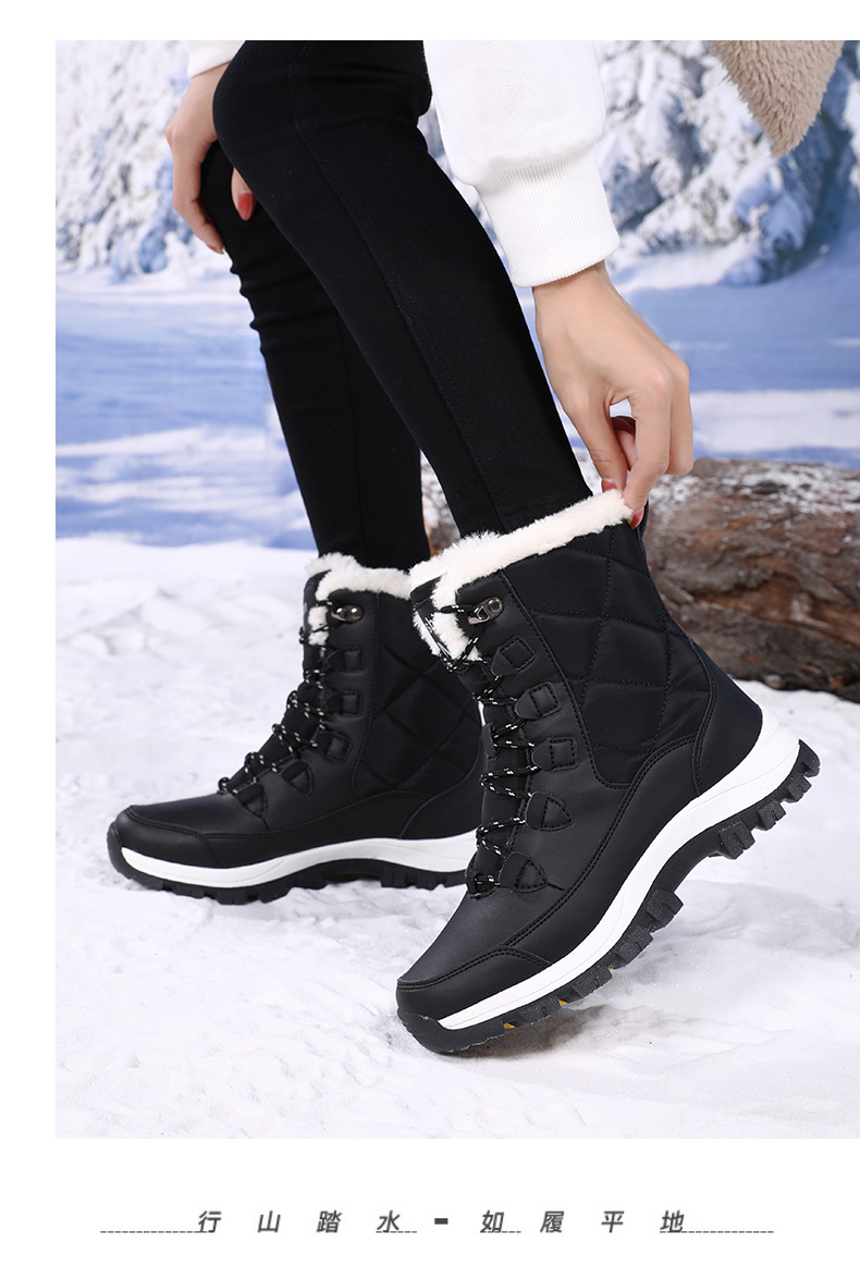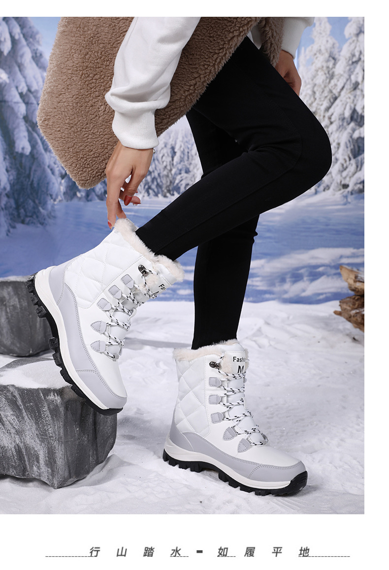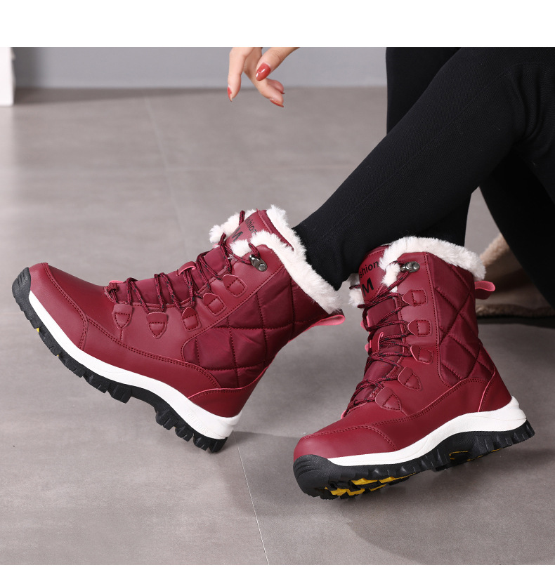 2025 국경 간 새로운 겨울 벨벳 두꺼운 내마모성 야외 하이킹 신발 여성 면화 스노우 부츠 하이 탑 신발 면화스토어 가기