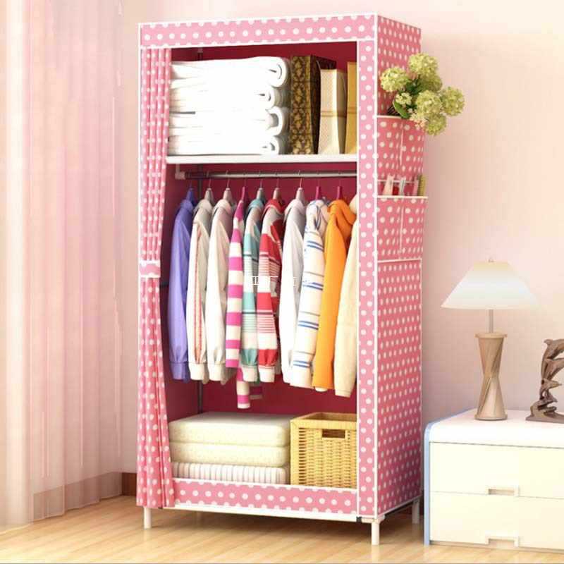 옷장 간단한 천 옷장 스몰 사이즈 기숙사 학생 임대 직물 조립 내각 접히는 단일 저장 교수형 옷장스토어 가기