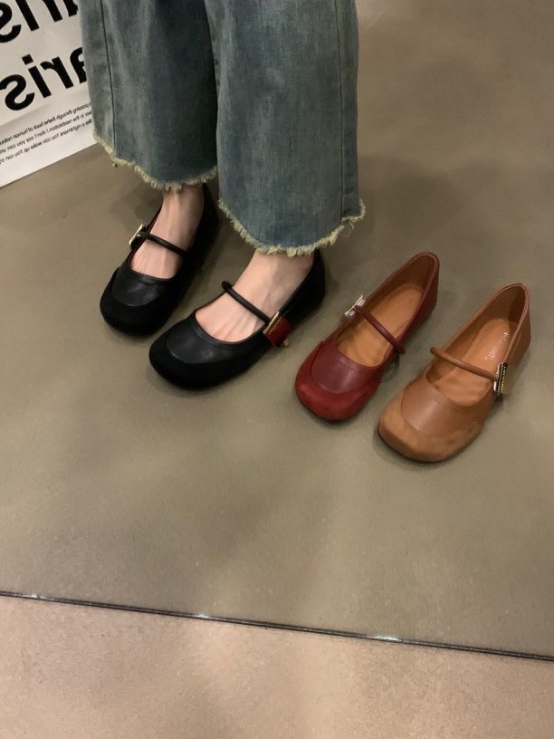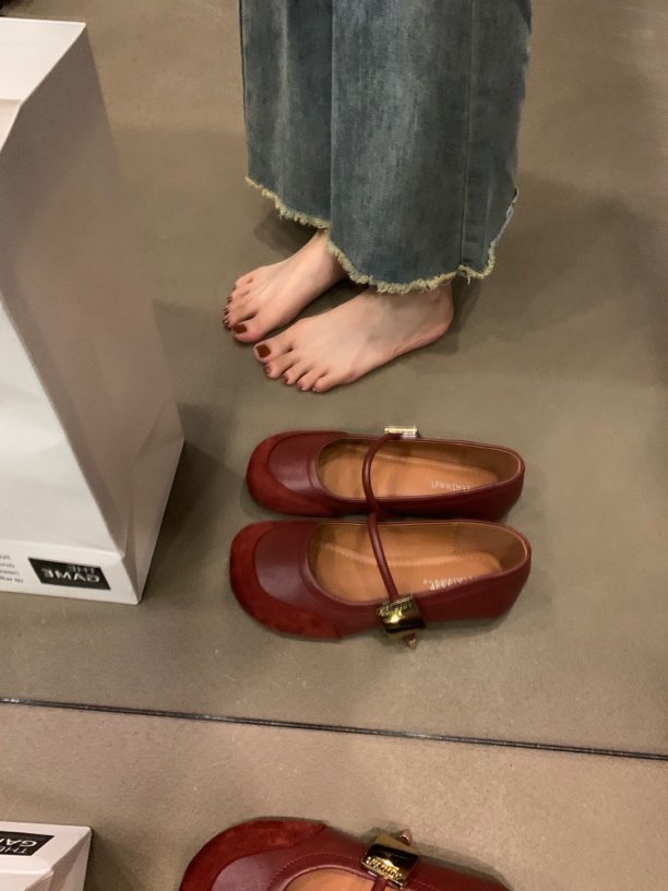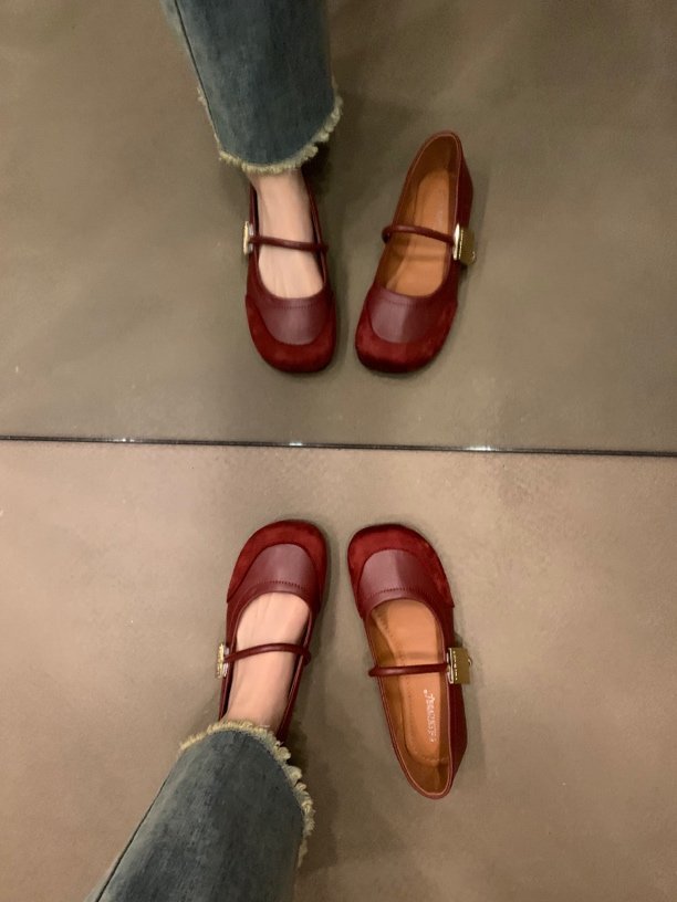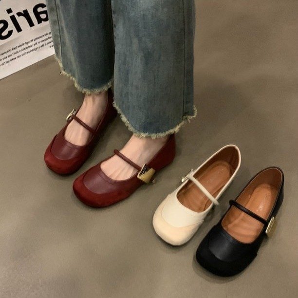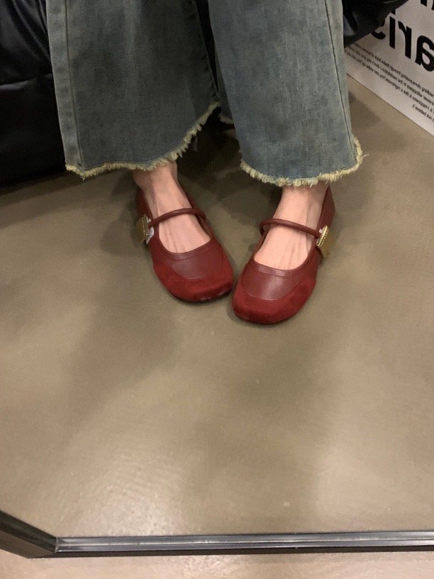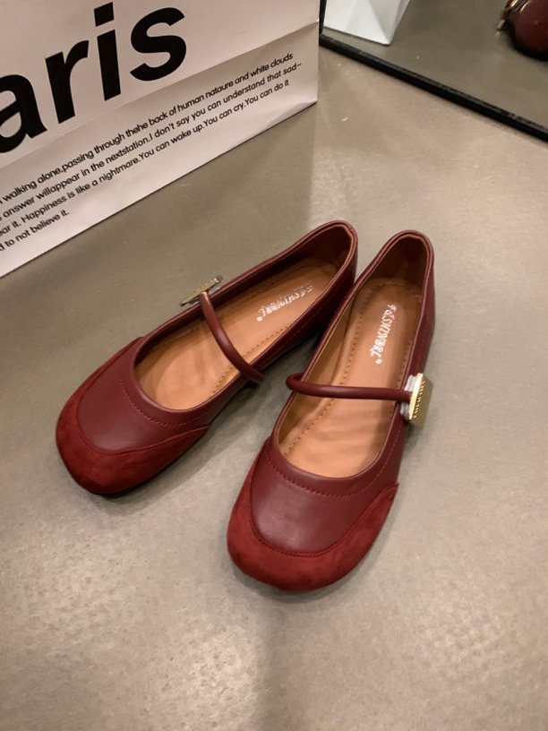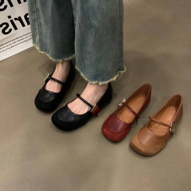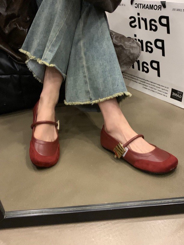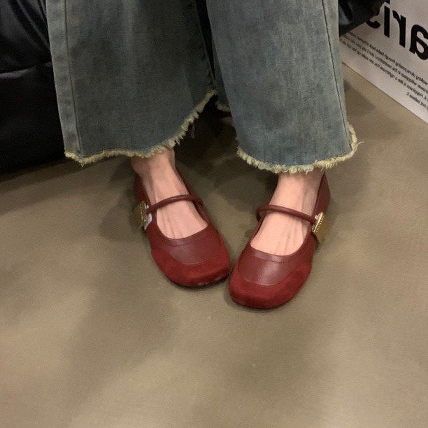 빨간 메리 제인 신발 여성 신발 2024 봄 새로운 둥근 발가락 부드러운 바닥 부드러운 표면 얕은 입 프렌치 신발스토어 가기