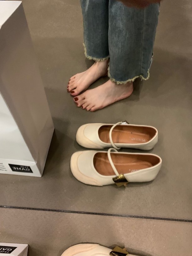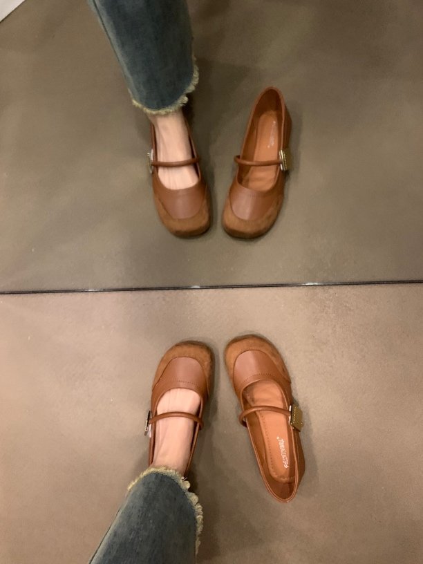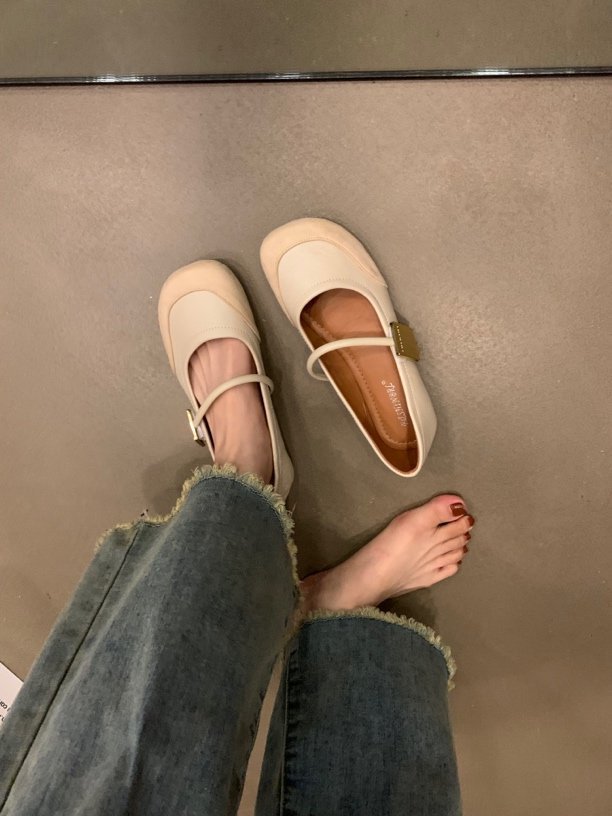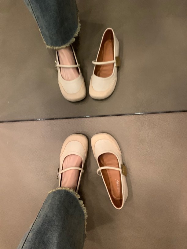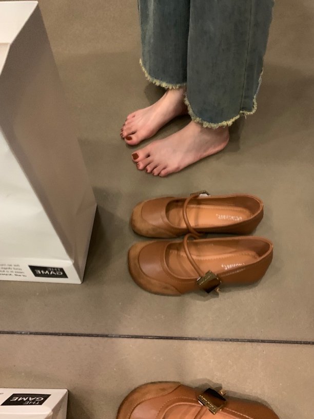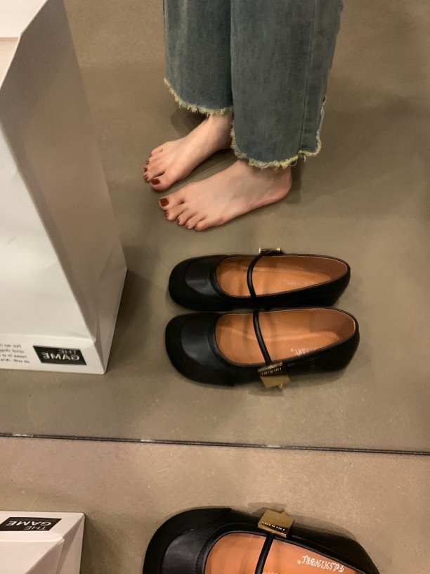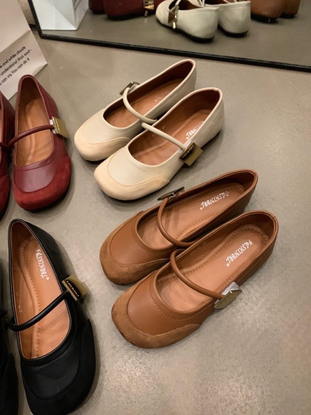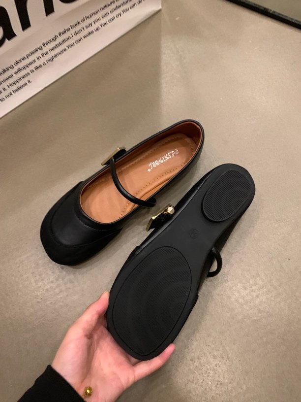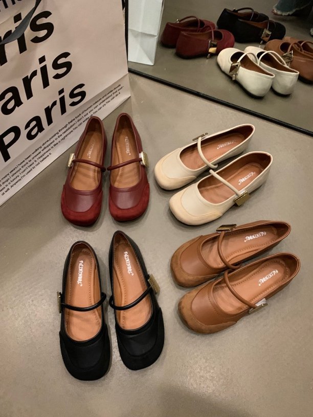 빨간 메리 제인 신발 여성 신발 2024 봄 새로운 둥근 발가락 부드러운 바닥 부드러운 표면 얕은 입 프렌치 신발스토어 가기