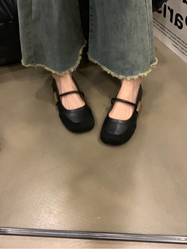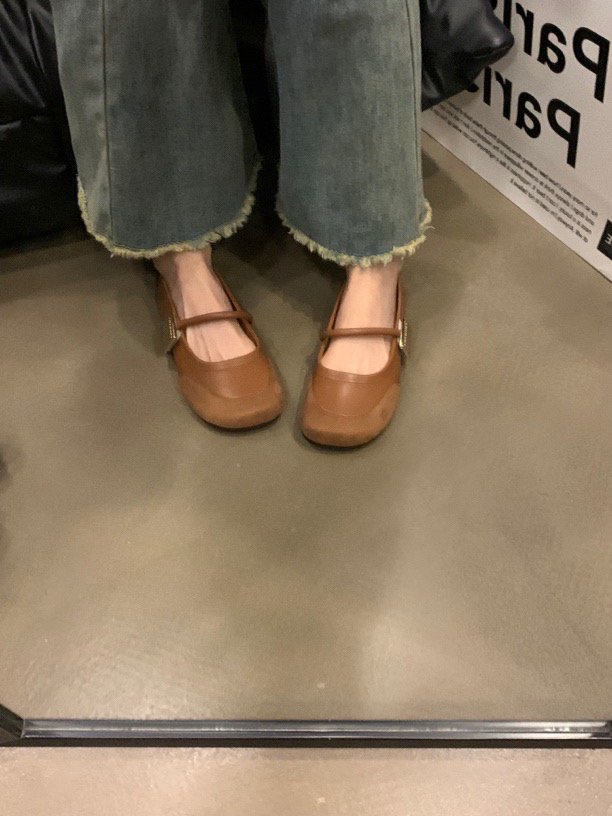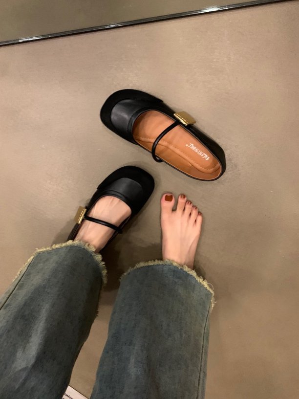 빨간 메리 제인 신발 여성 신발 2024 봄 새로운 둥근 발가락 부드러운 바닥 부드러운 표면 얕은 입 프렌치 신발