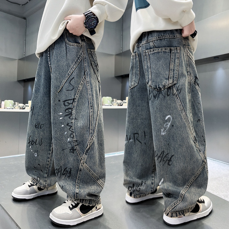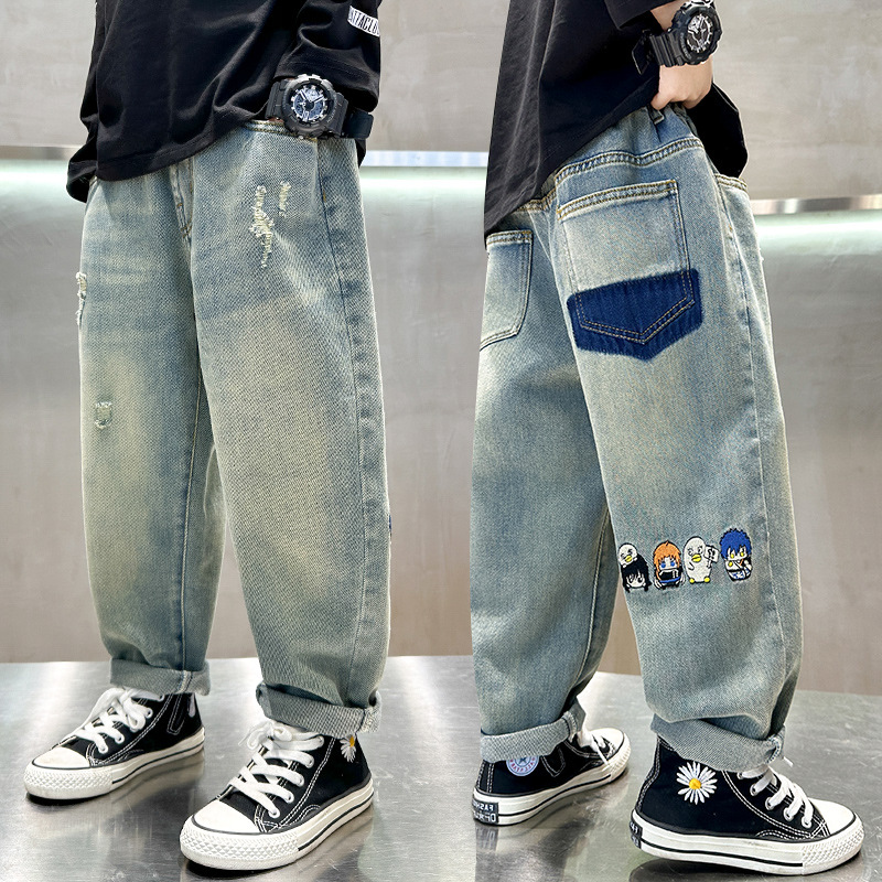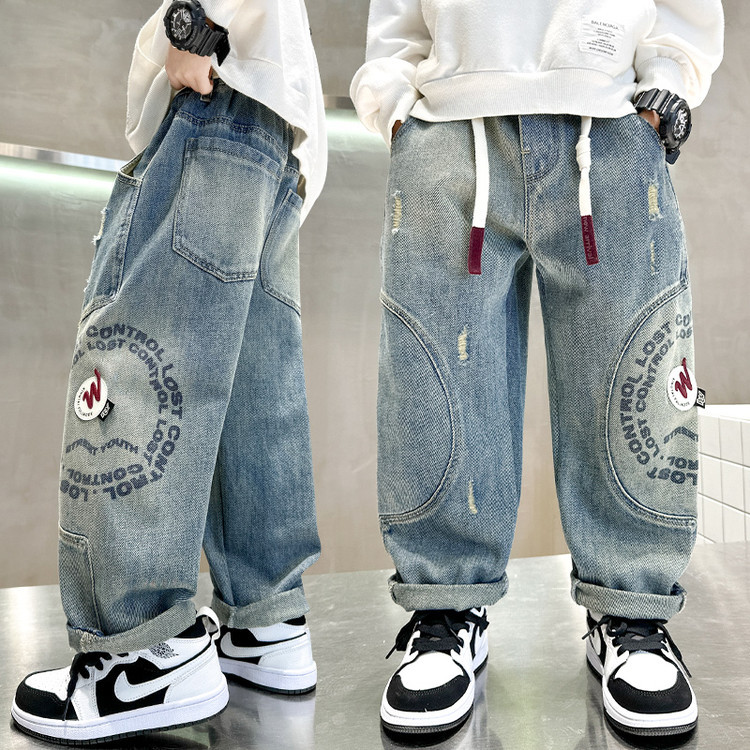 아동복 남아 가을 청바지 신상 스타일리시 긴바지 남자아이 봄 가을 멋진 루즈핏 바지 해외 도매 유행스토어 가기