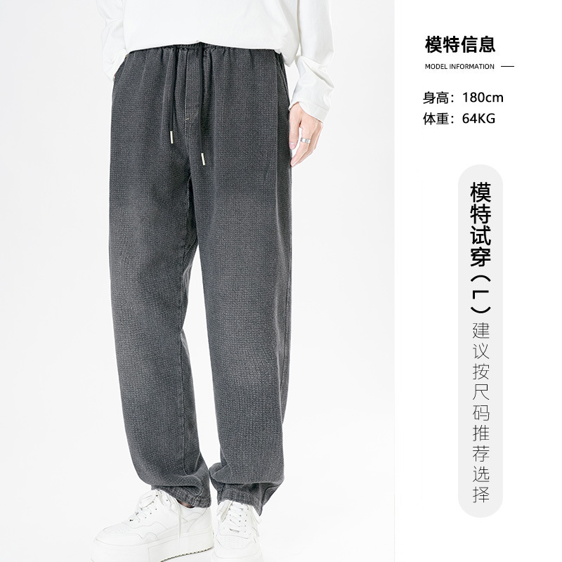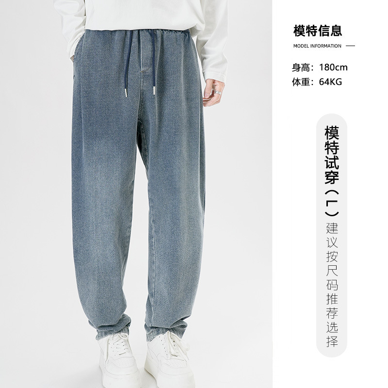 봄과 가을 유행 별이 빛나는 하늘 패턴 바지 다목적 남성 청바지 얇은 느슨한 복고풍 워싱 남성용 간단한 캐주얼 바지스토어 가기