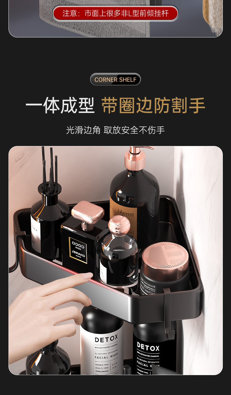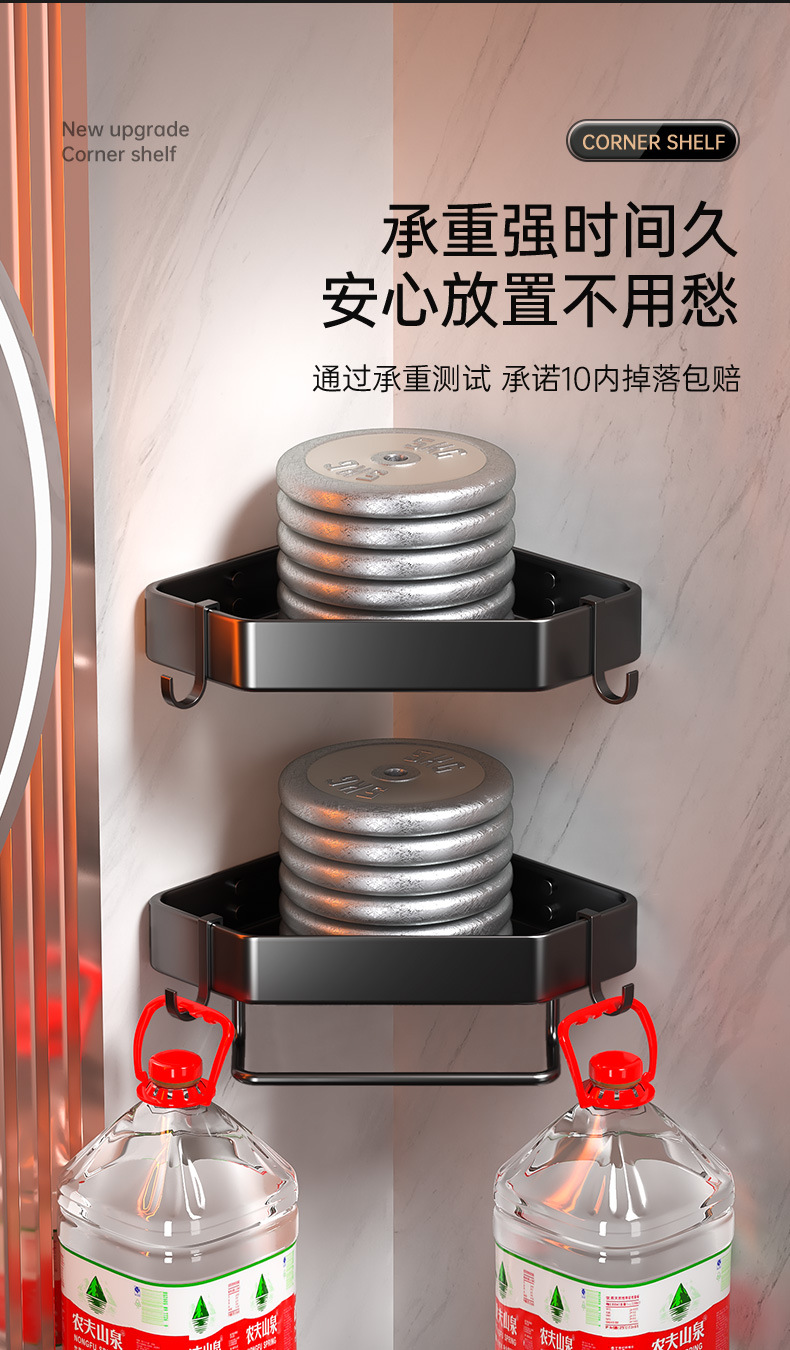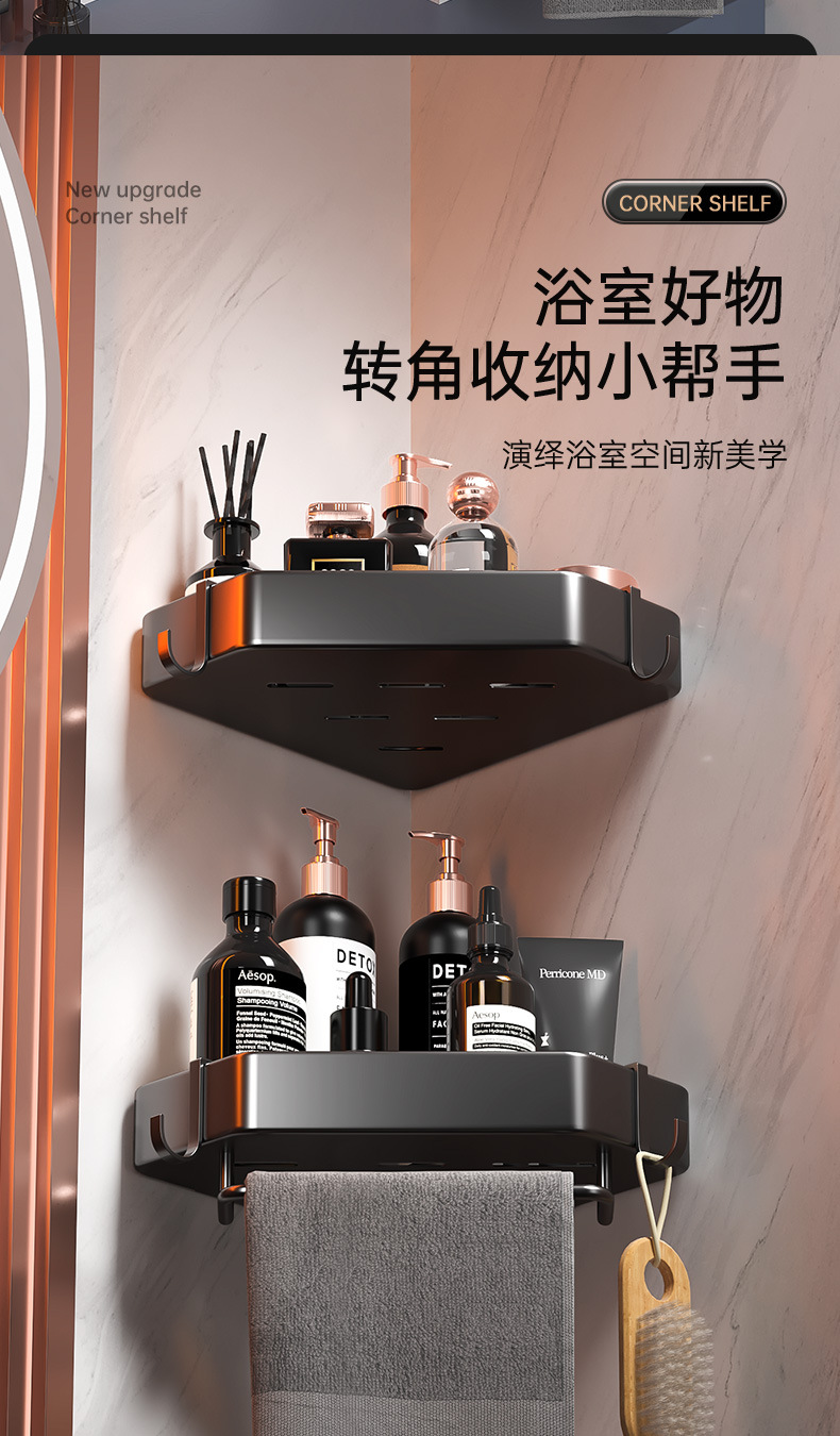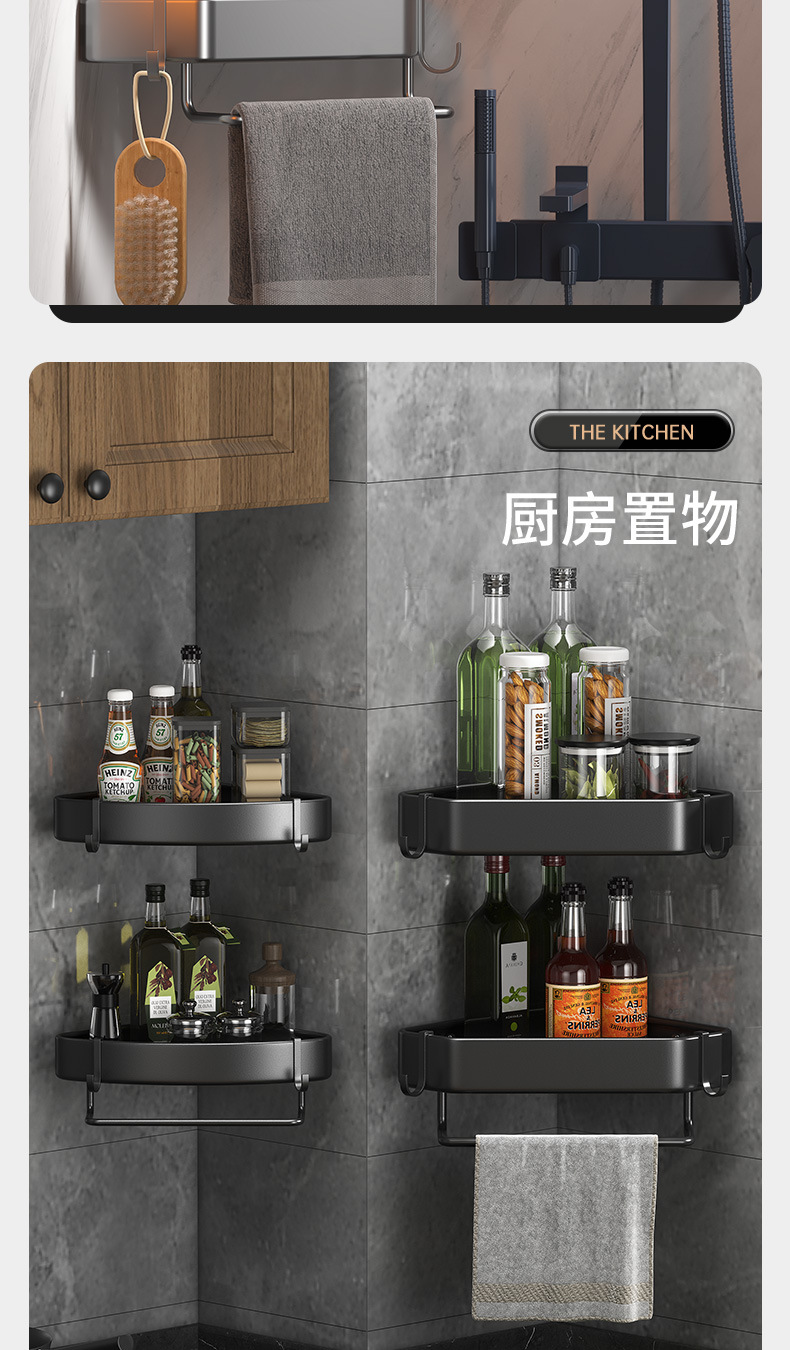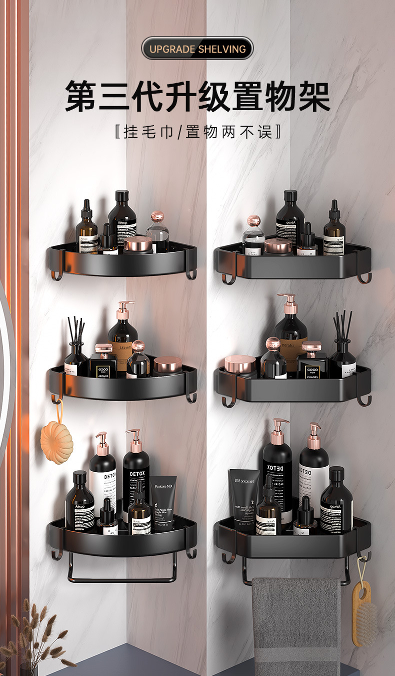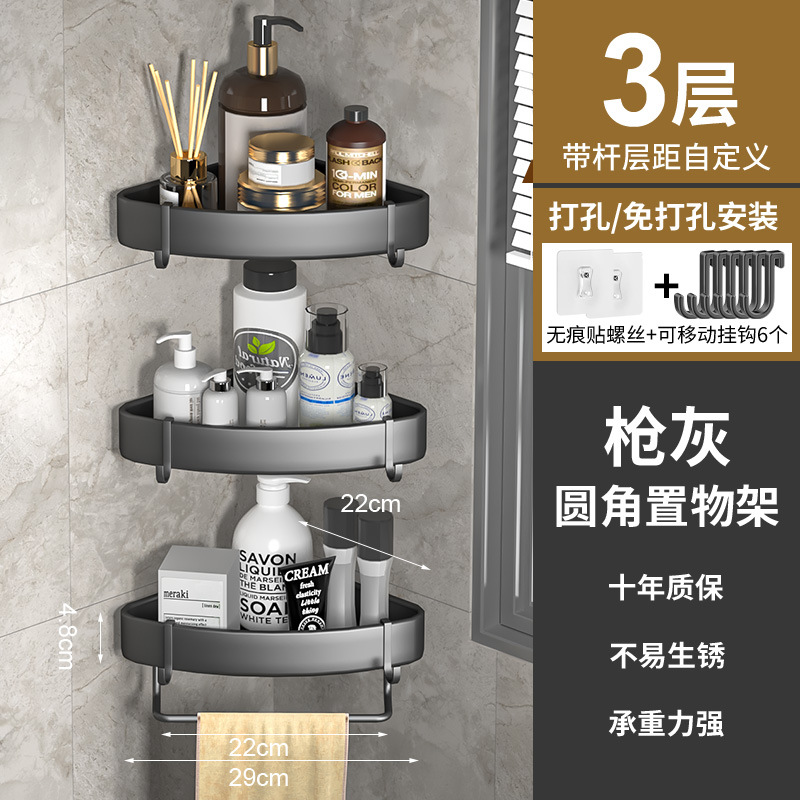 욕실 펀치없는 삼각형 보관 선반 주방 팬 모양의 코너 랙 욕실 화장실 벽 장착 다층 보관 랙