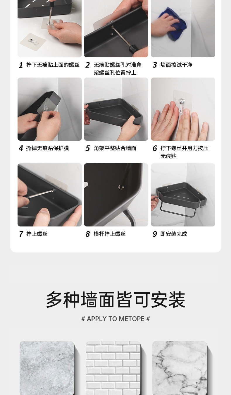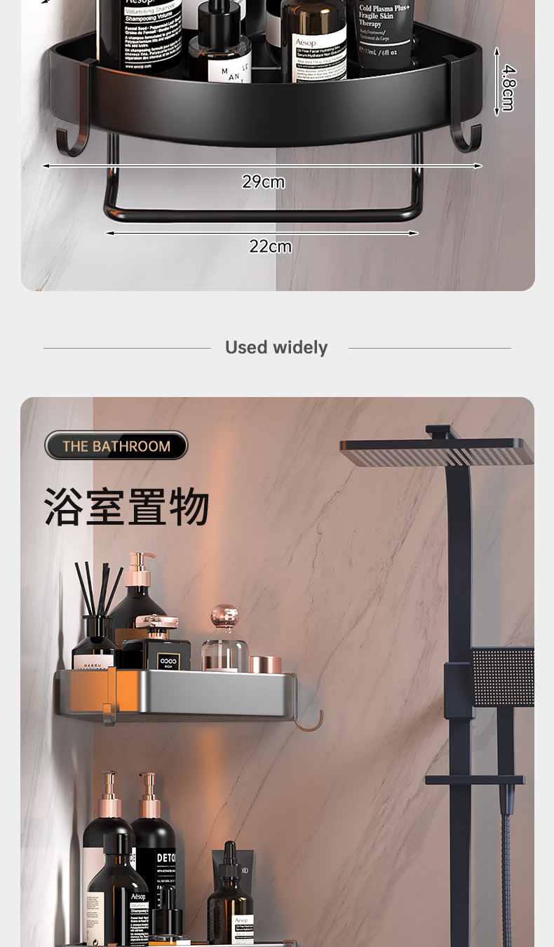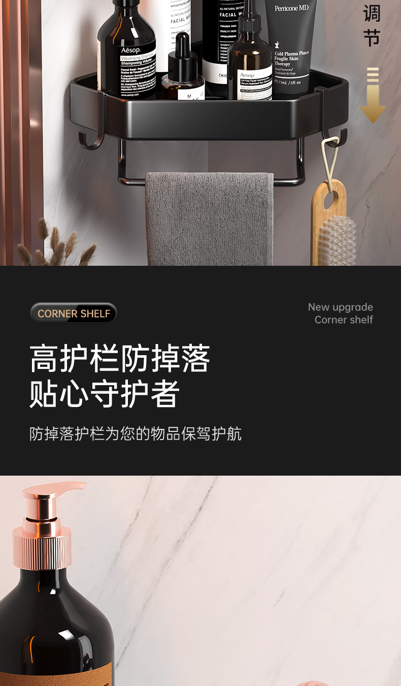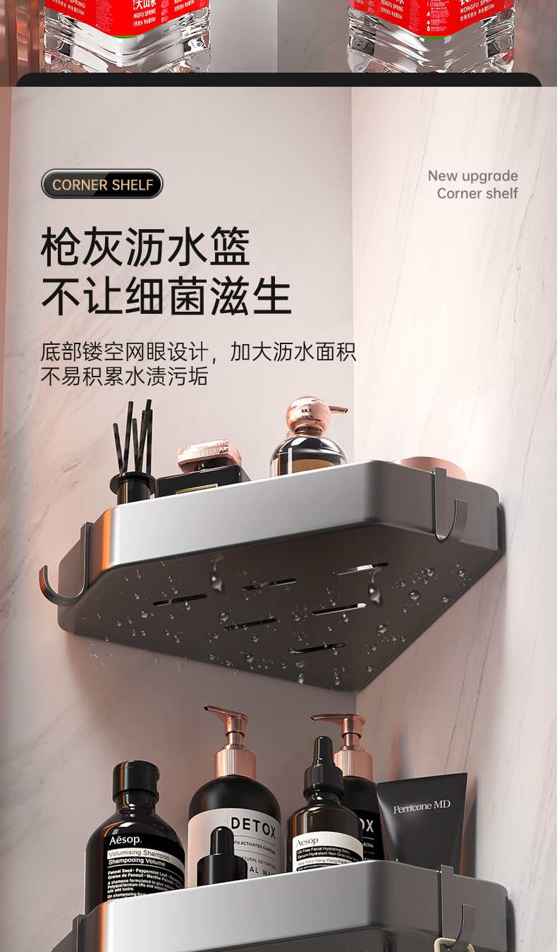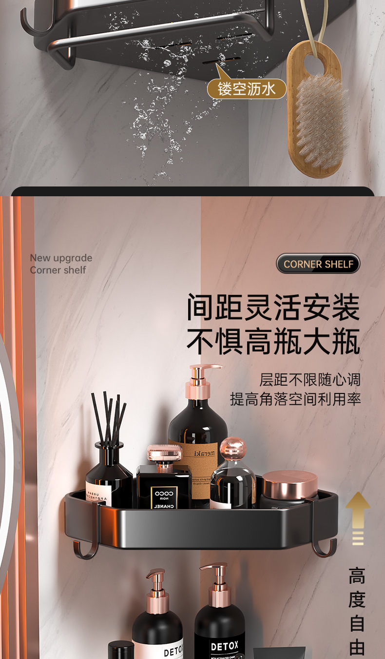 욕실 펀치없는 삼각형 보관 선반 주방 팬 모양의 코너 랙 욕실 화장실 벽 장착 다층 보관 랙