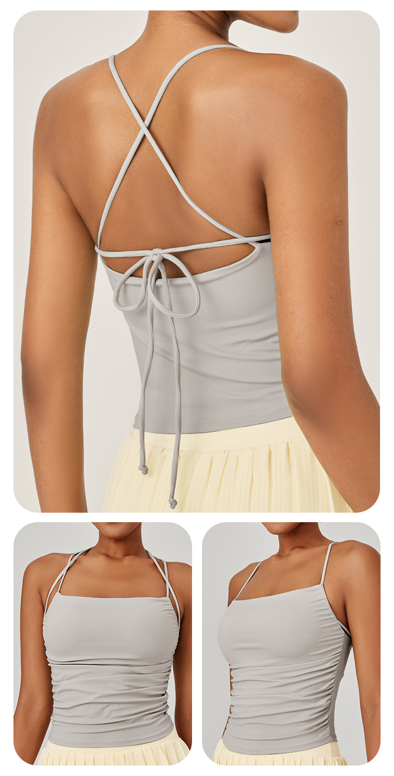 새로운 크로스 얇은 어깨 끈 스포츠 요가 조끼 고정 컵 슬리밍 작은 허리 브래지어 피트니스 달리기 속옷