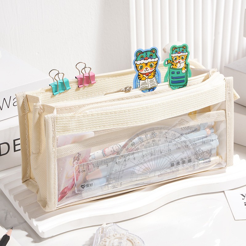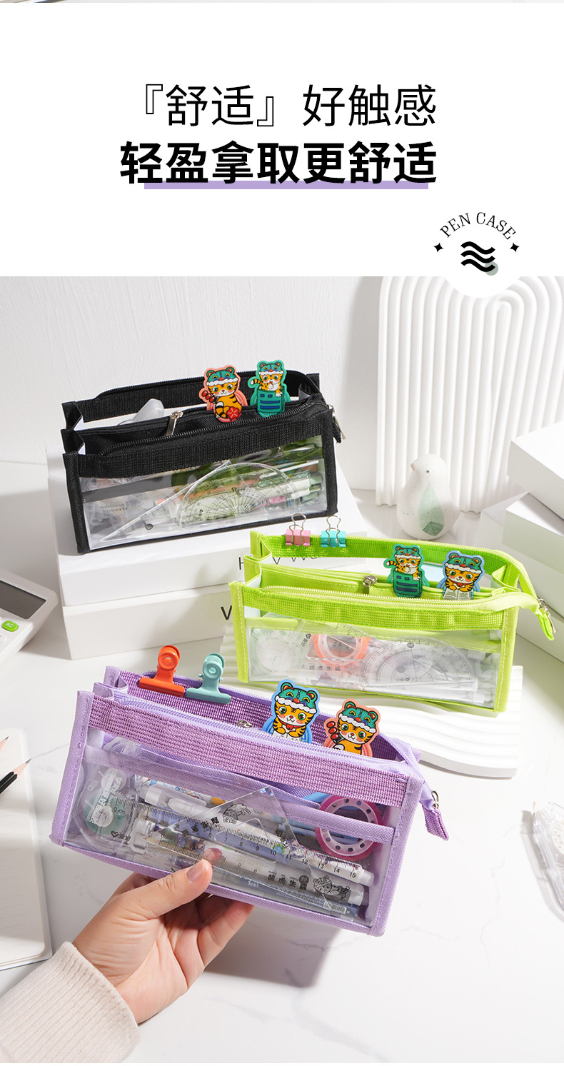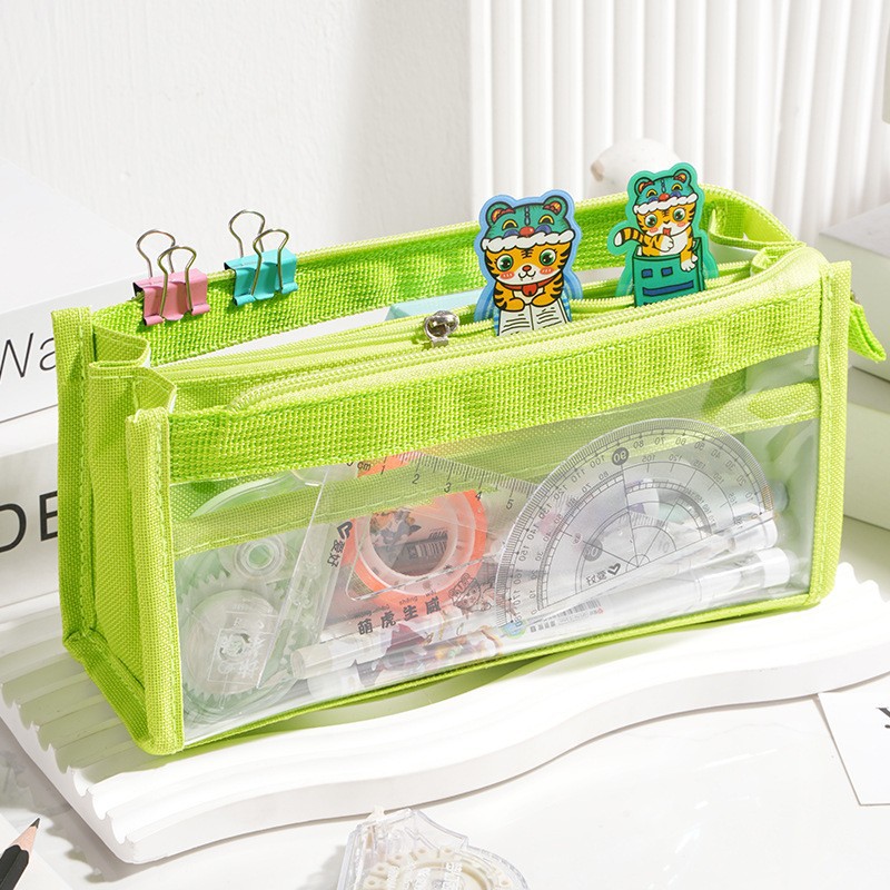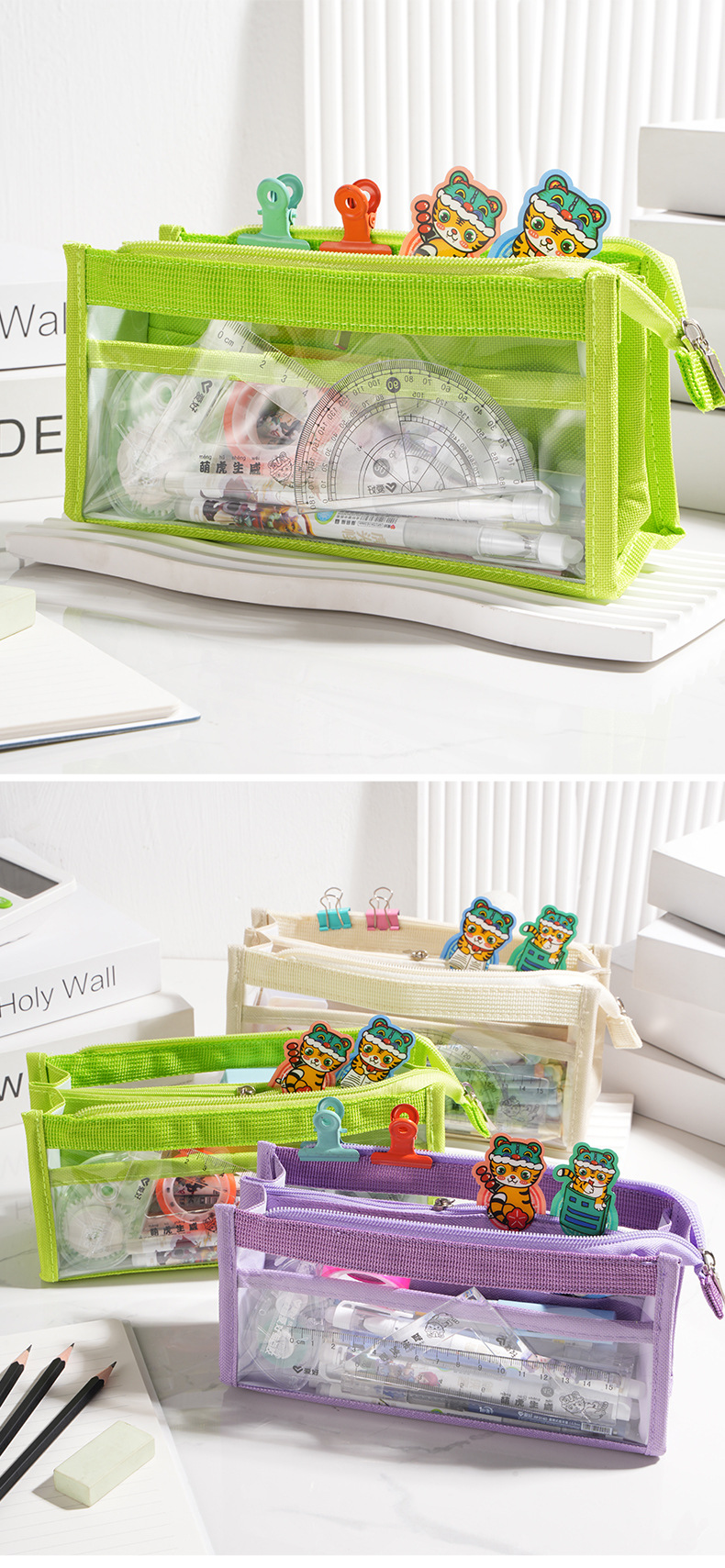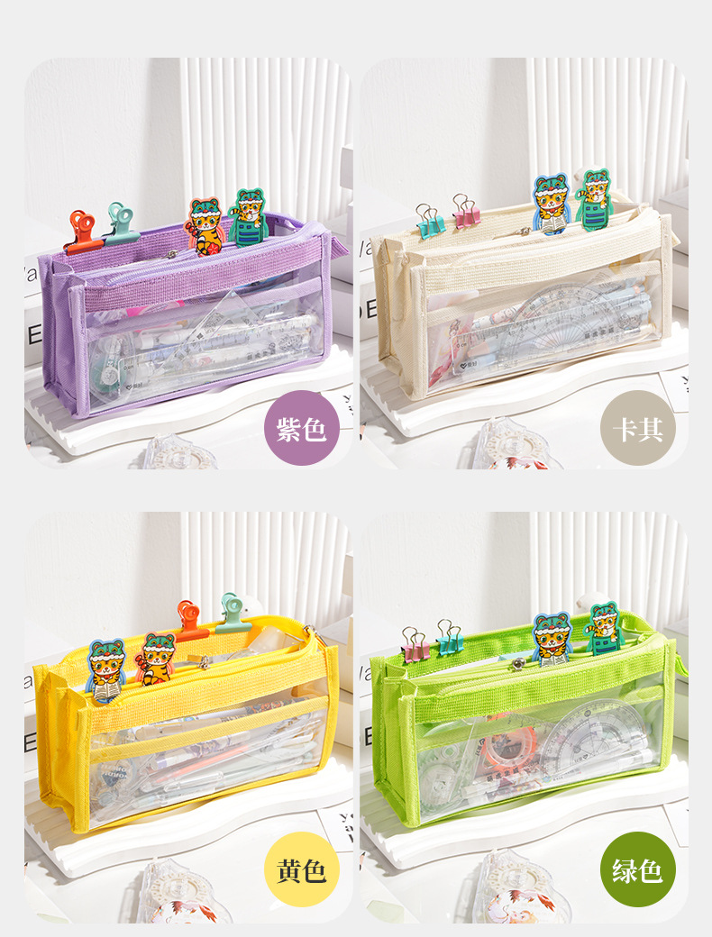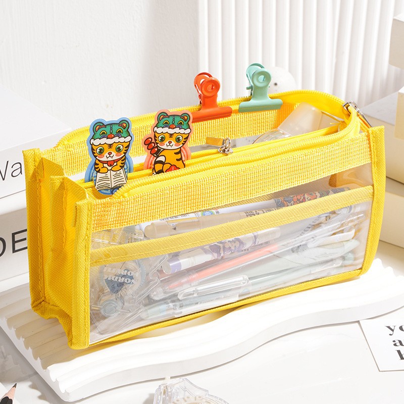 대용량 투명 pvc 연필 케이스 간단한 중학생 문구 상자 높은 모양의 소년 소녀 연필 가방 6 층 보관