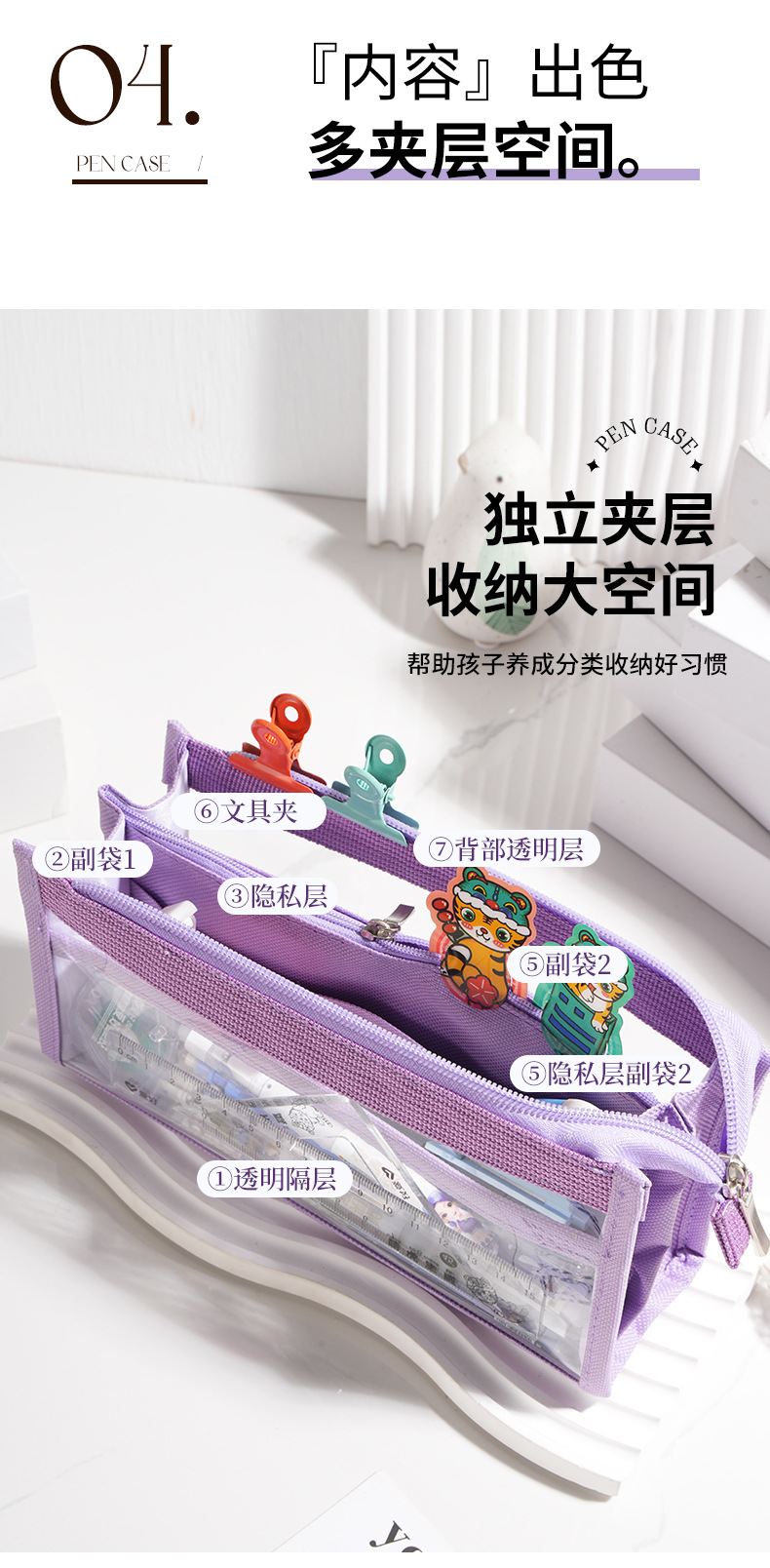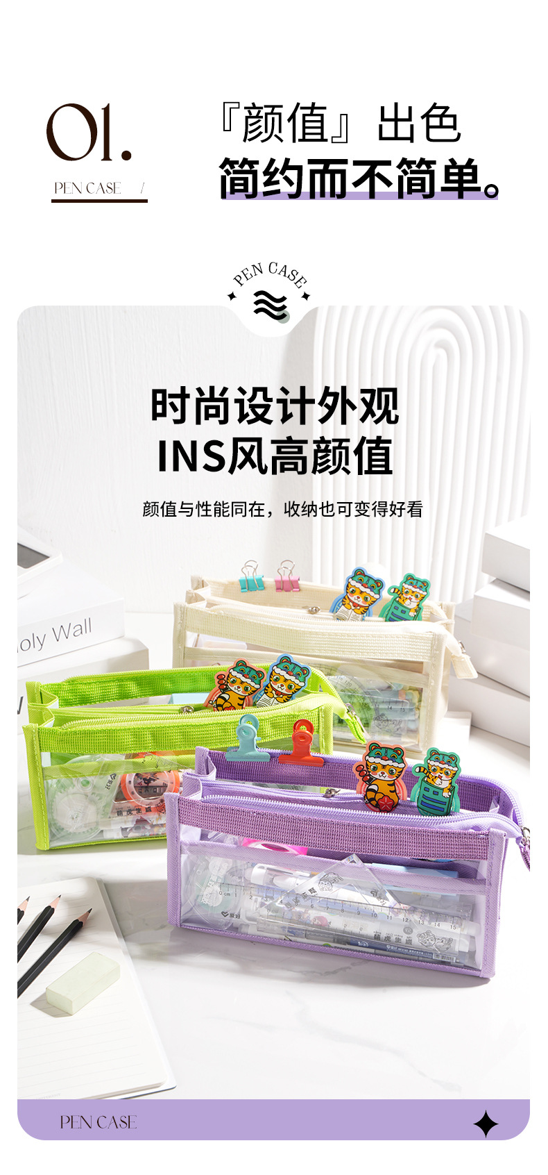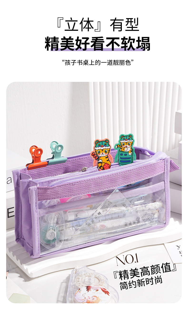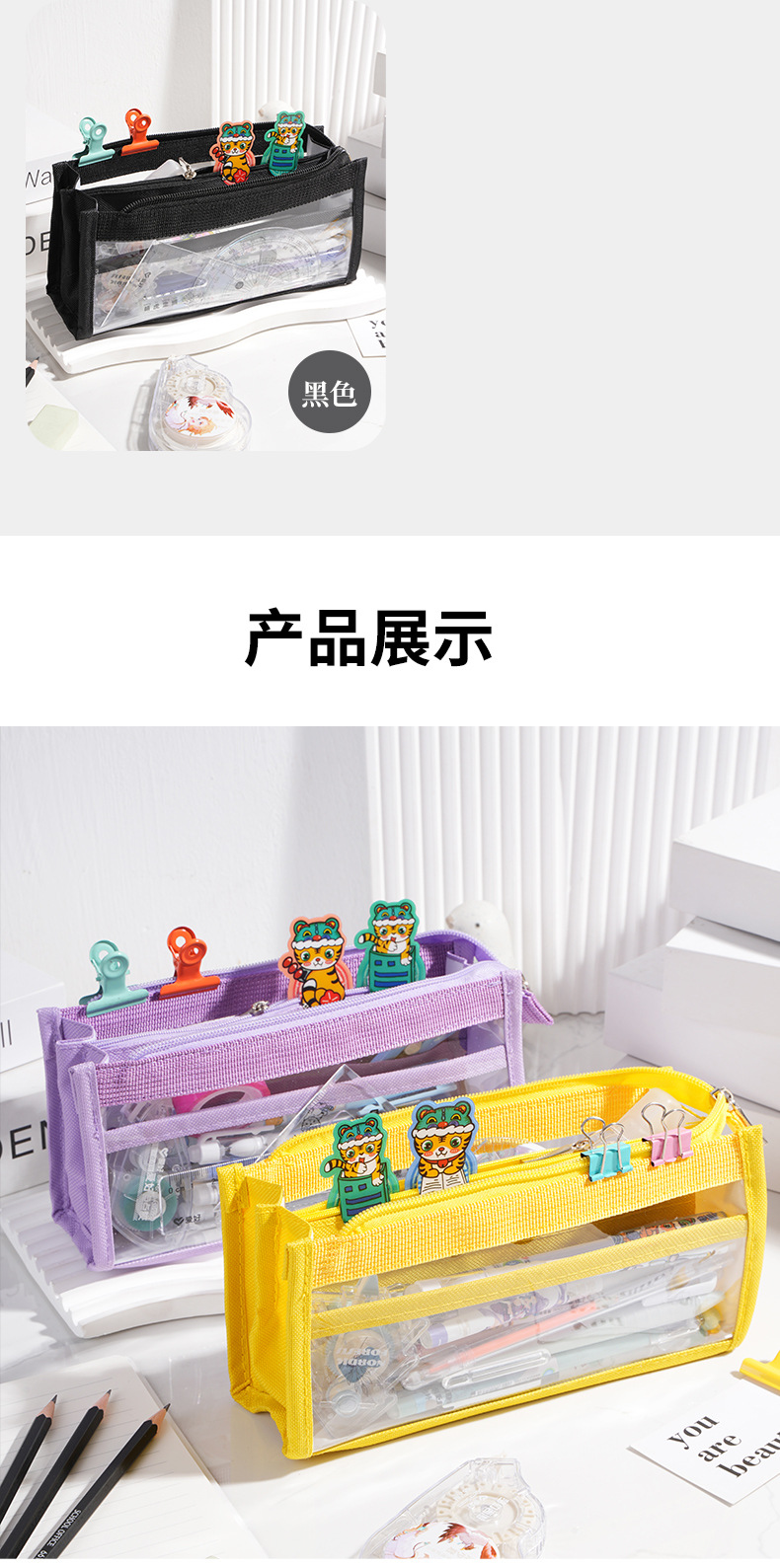 대용량 투명 pvc 연필 케이스 간단한 중학생 문구 상자 높은 모양의 소년 소녀 연필 가방 6 층 보관
