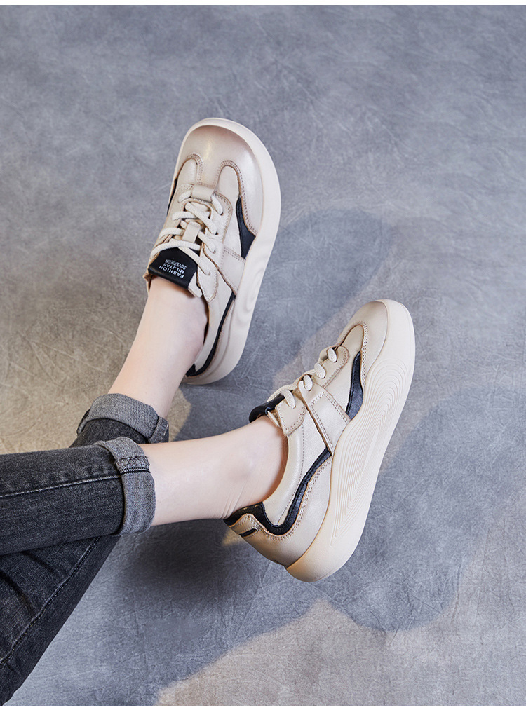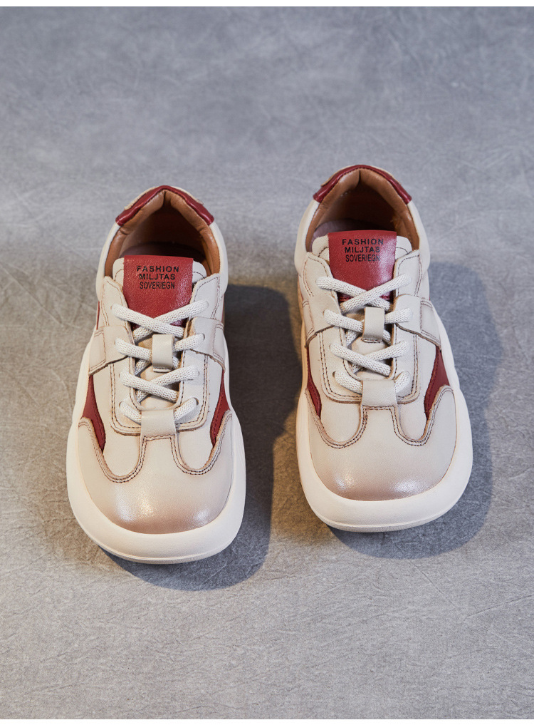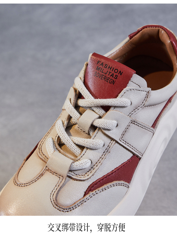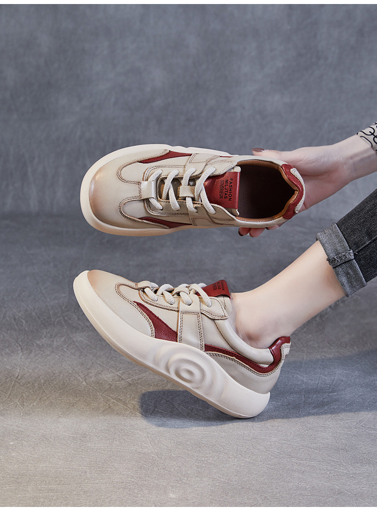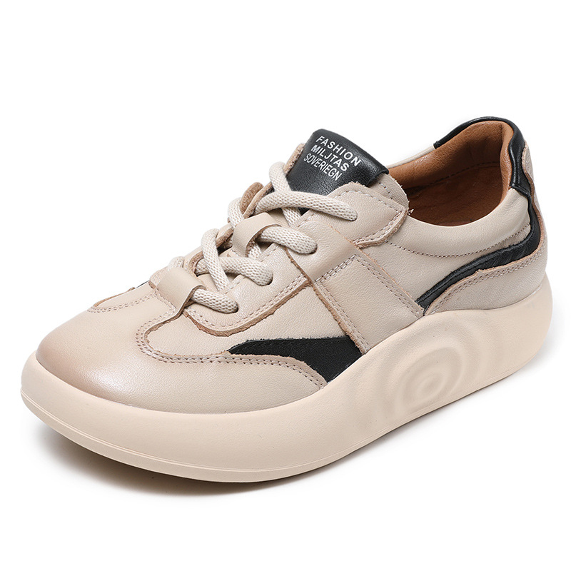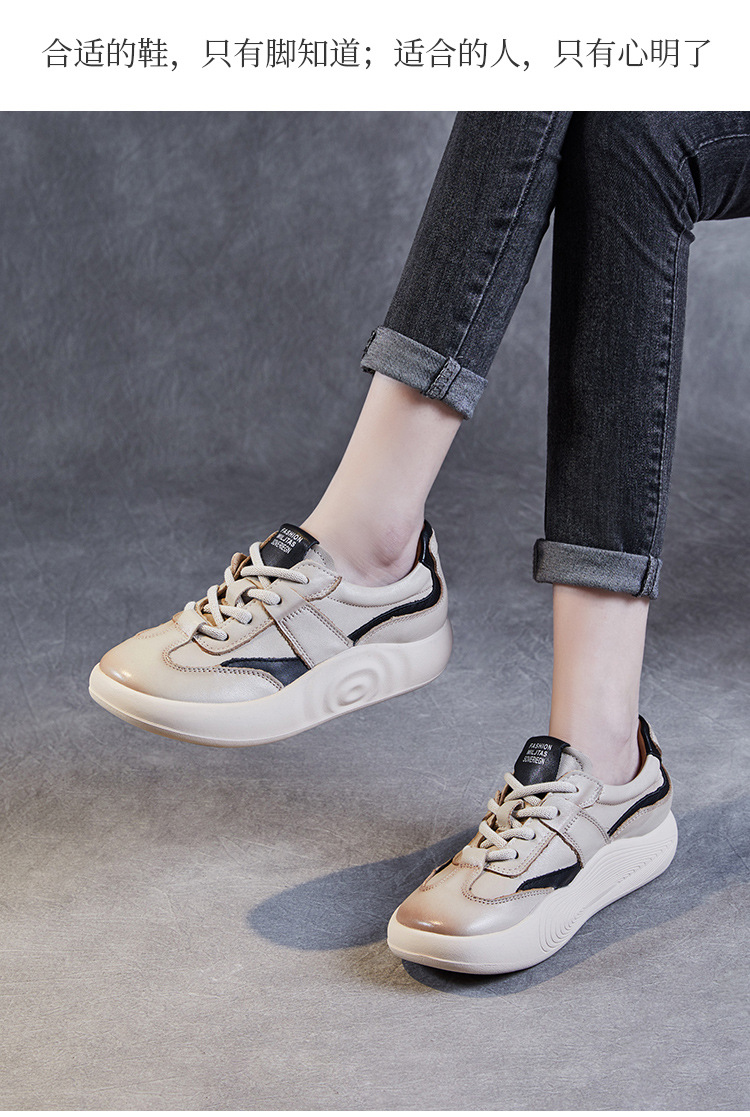 새로운 봄과 가을의 경량 레이스 업 머핀 싱글 레이어 신발 부드러운 밑창 스포츠 캐주얼 신발을 2024 여성을위한 정품 가죽 두꺼운 밑창 흰색 신발스토어 가기