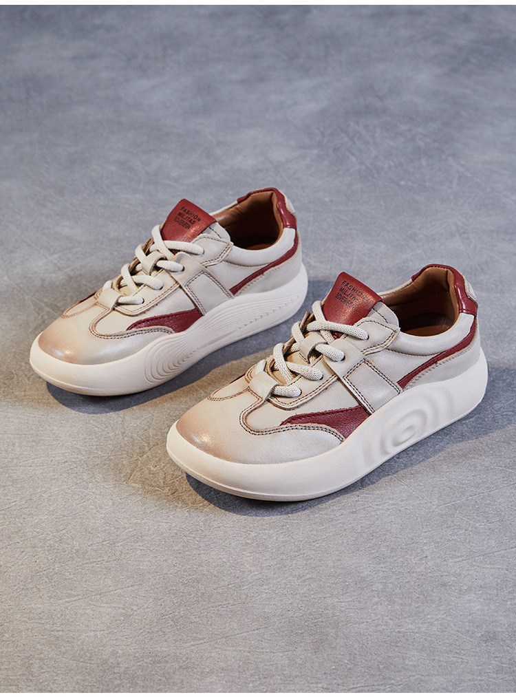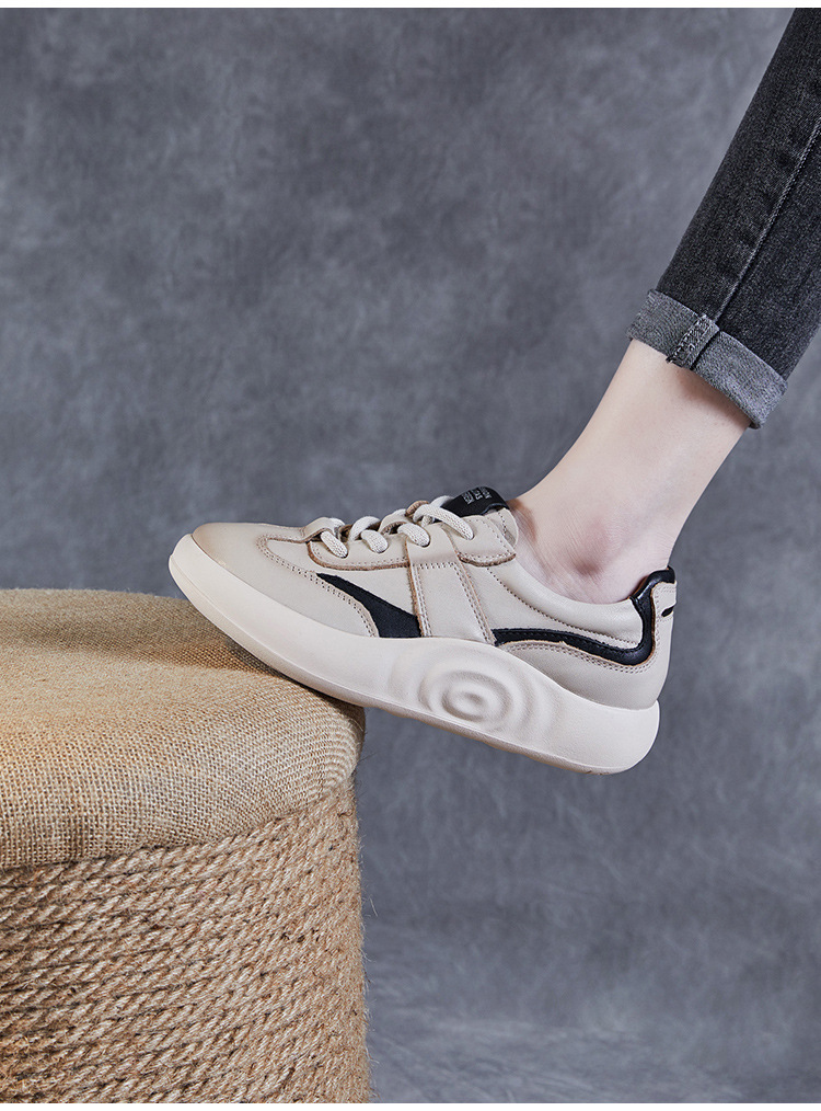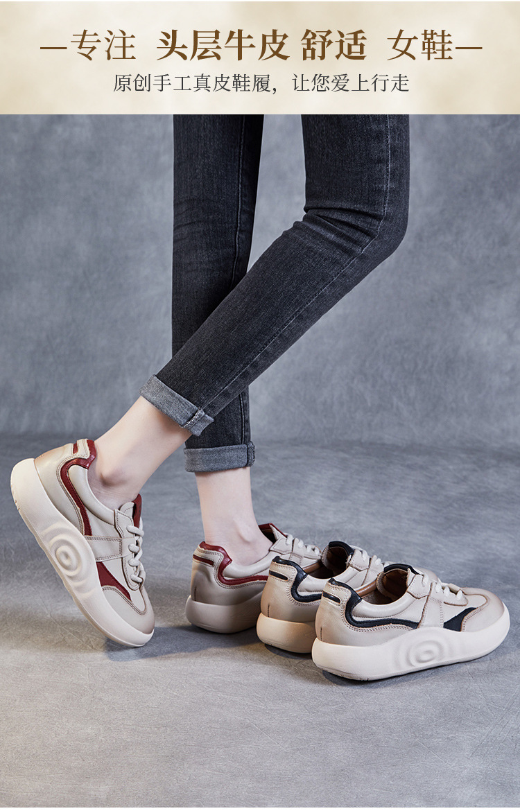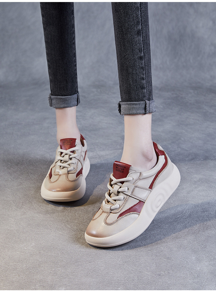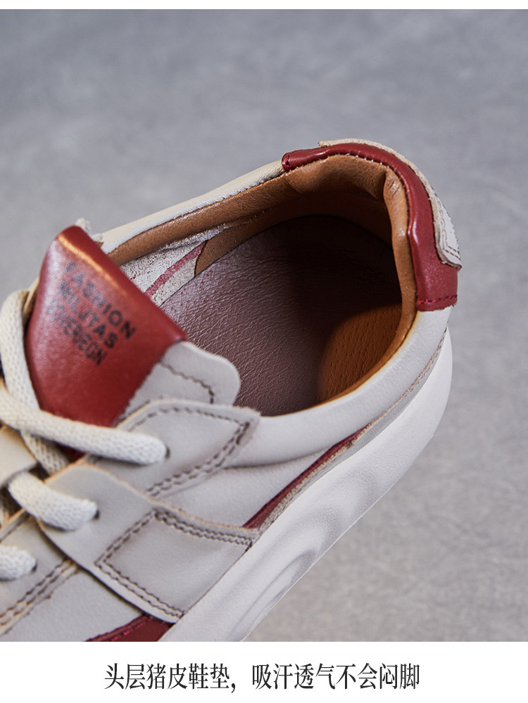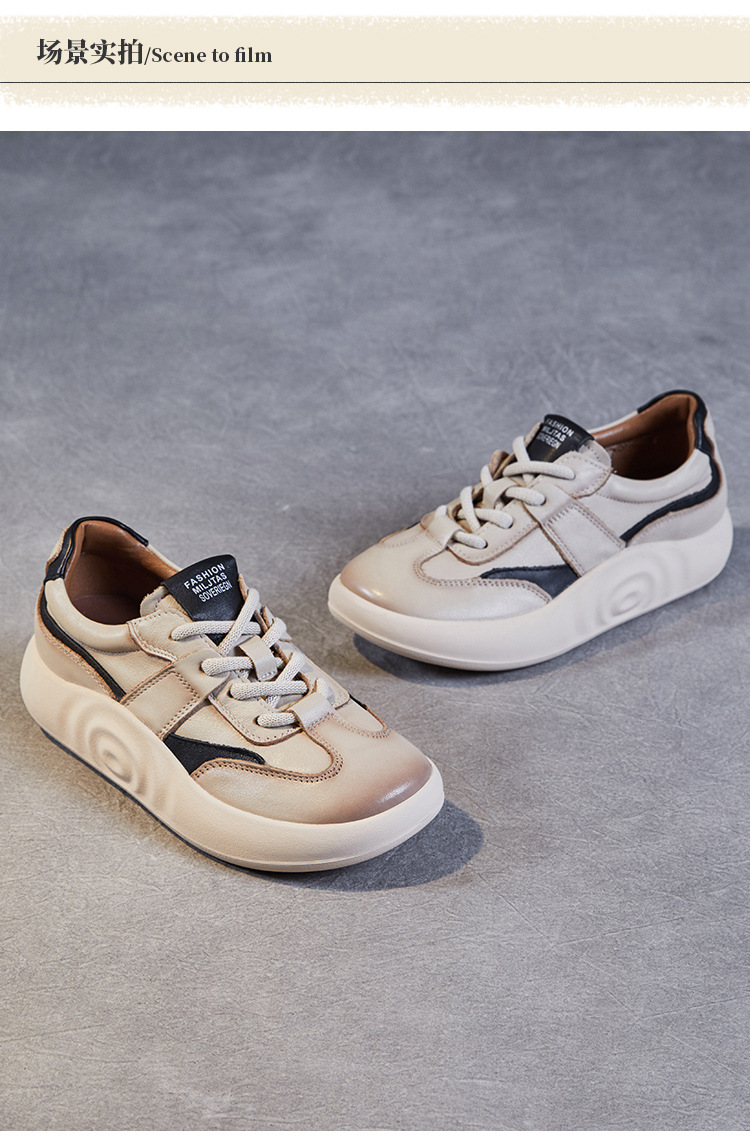 새로운 봄과 가을의 경량 레이스 업 머핀 싱글 레이어 신발 부드러운 밑창 스포츠 캐주얼 신발을 2024 여성을위한 정품 가죽 두꺼운 밑창 흰색 신발스토어 가기