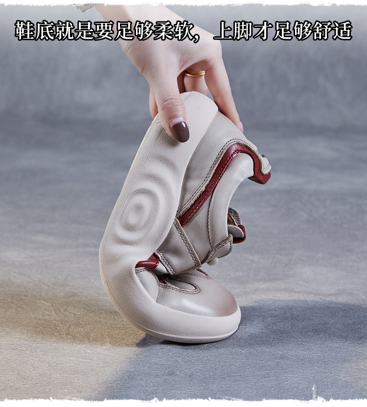 새로운 봄과 가을의 경량 레이스 업 머핀 싱글 레이어 신발 부드러운 밑창 스포츠 캐주얼 신발을 2024 여성을위한 정품 가죽 두꺼운 밑창 흰색 신발