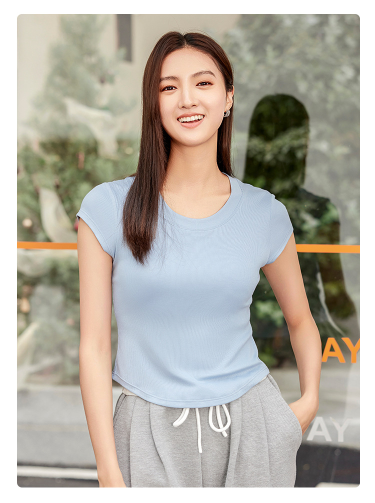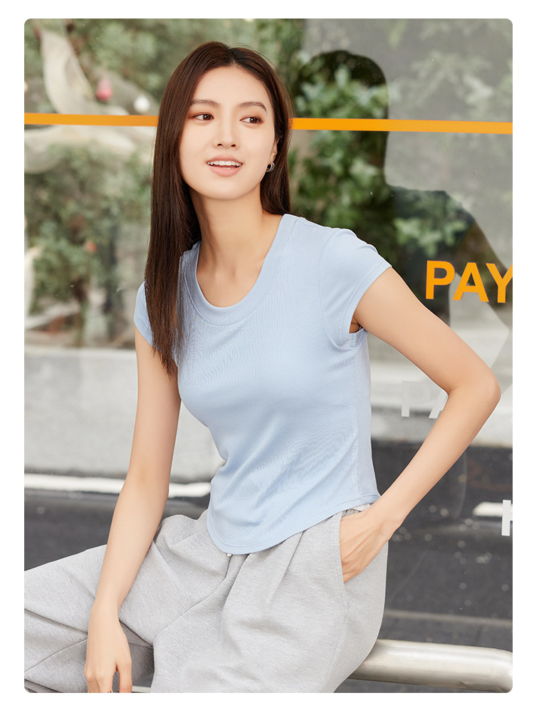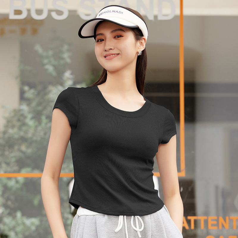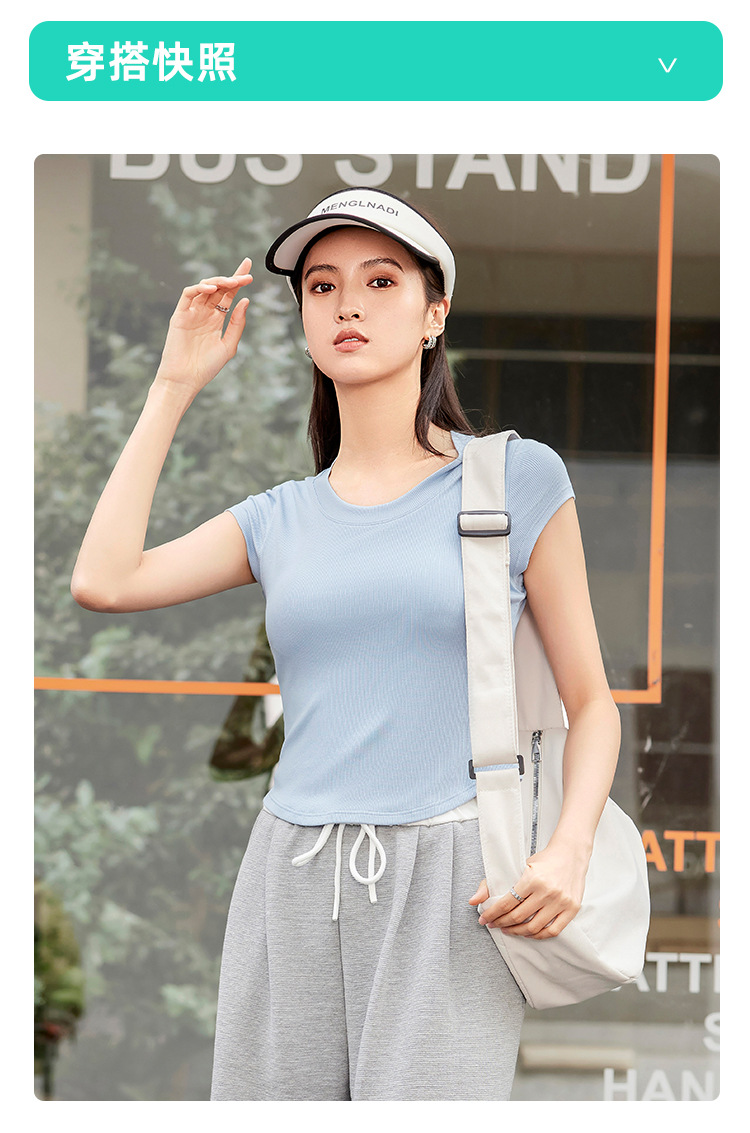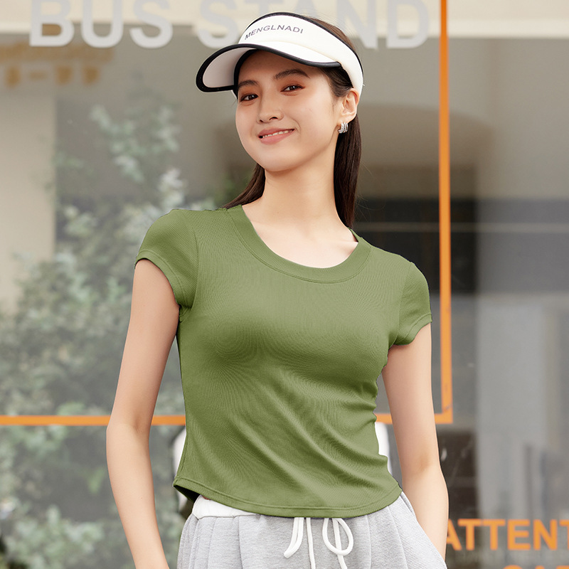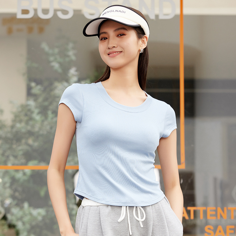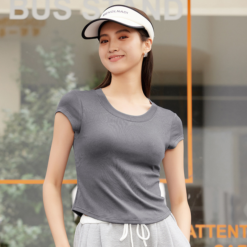 가슴 패드 요가 반팔 여성 티셔츠 브라와 여름 새로운 스타일 통합 스포츠 레저 허리 슬리밍 짧은 여성 탑스토어 가기