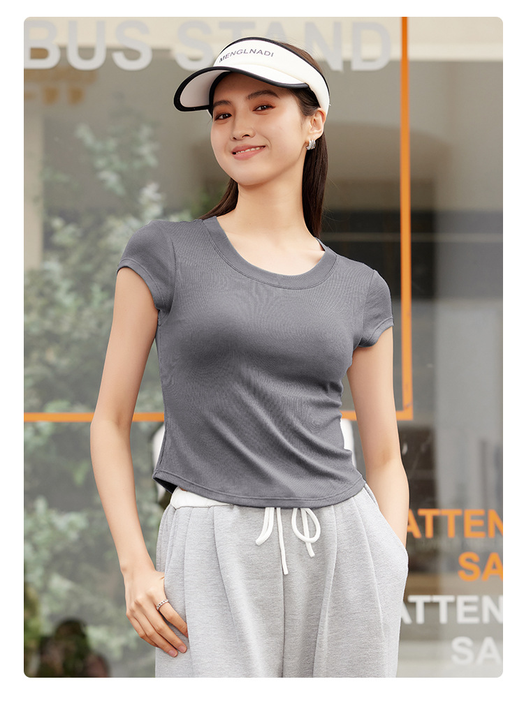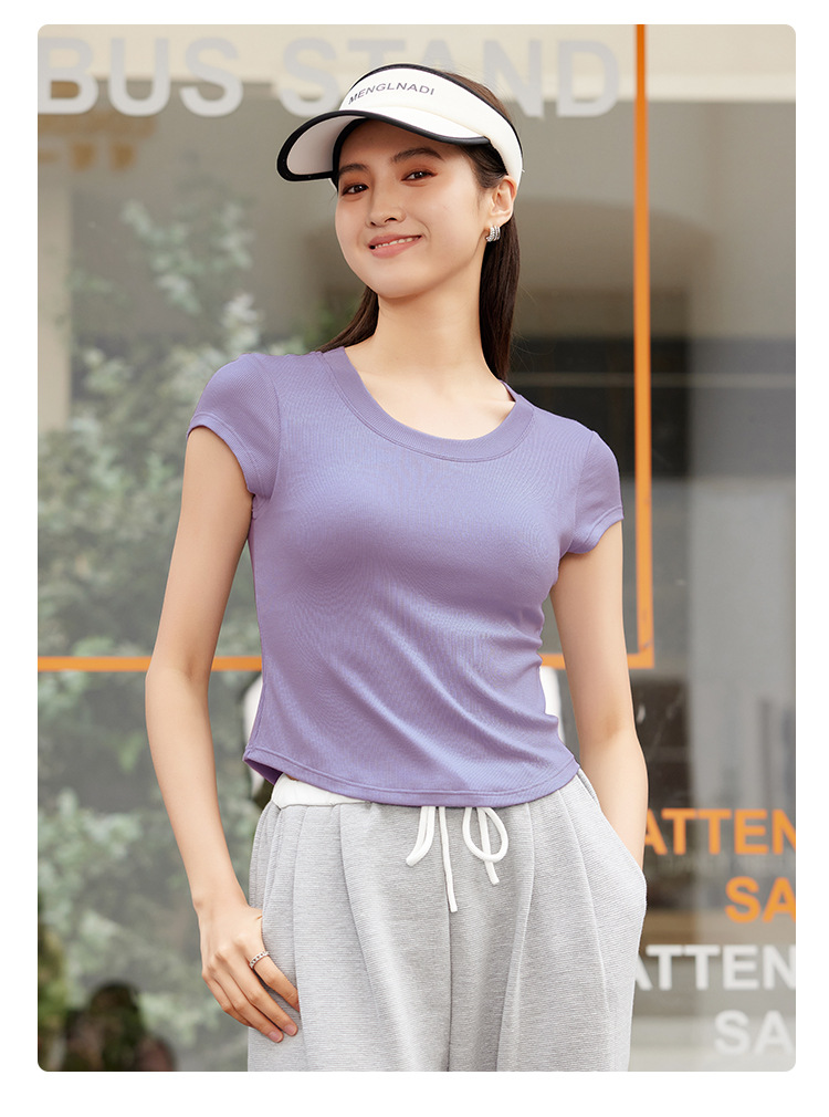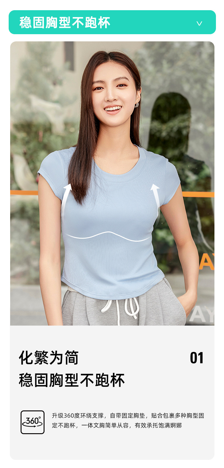 가슴 패드 요가 반팔 여성 티셔츠 브라와 여름 새로운 스타일 통합 스포츠 레저 허리 슬리밍 짧은 여성 탑